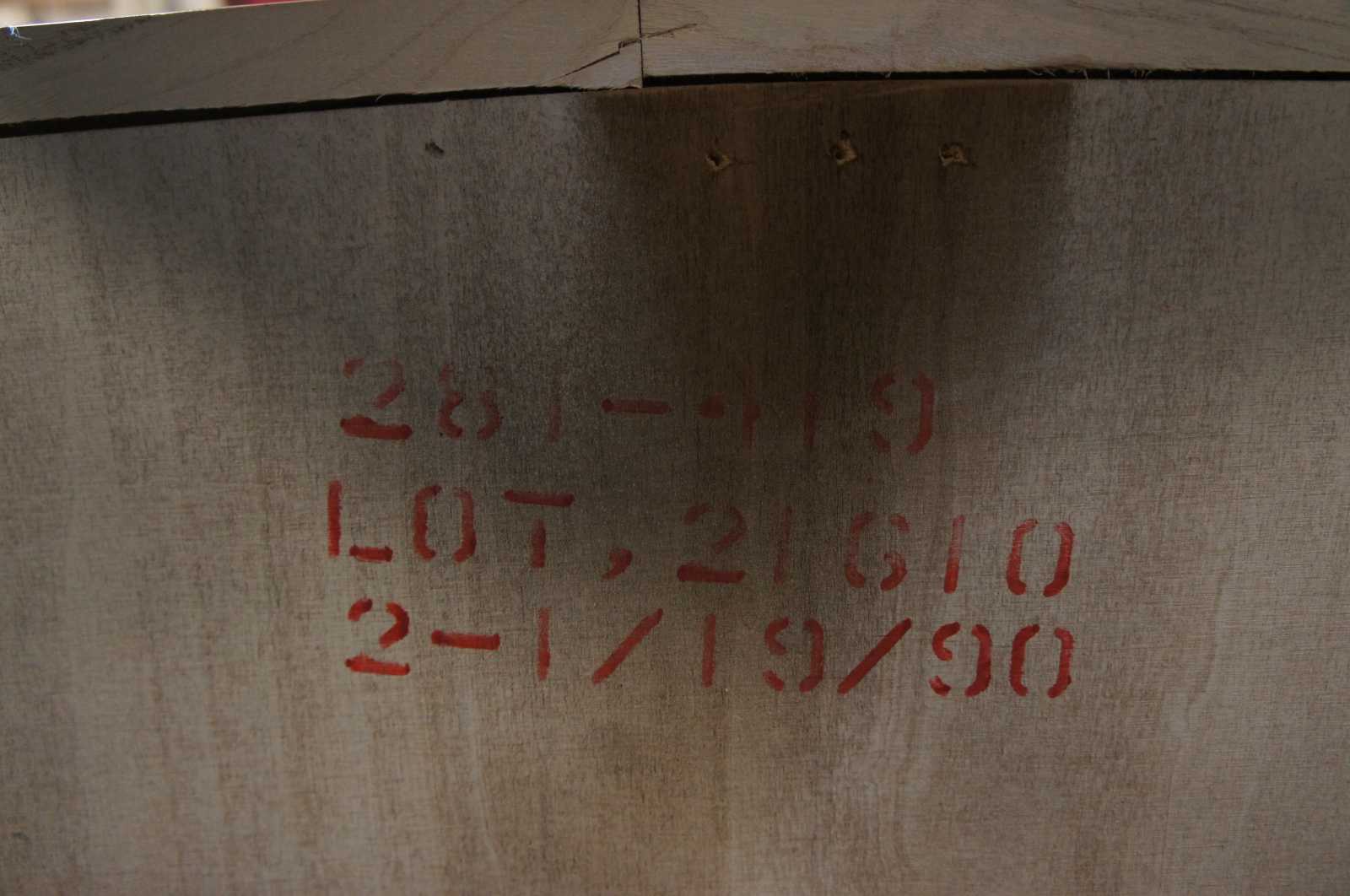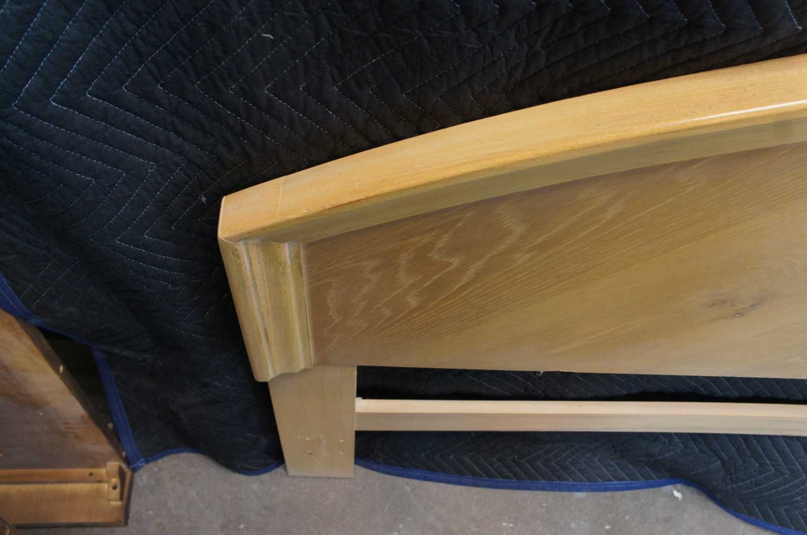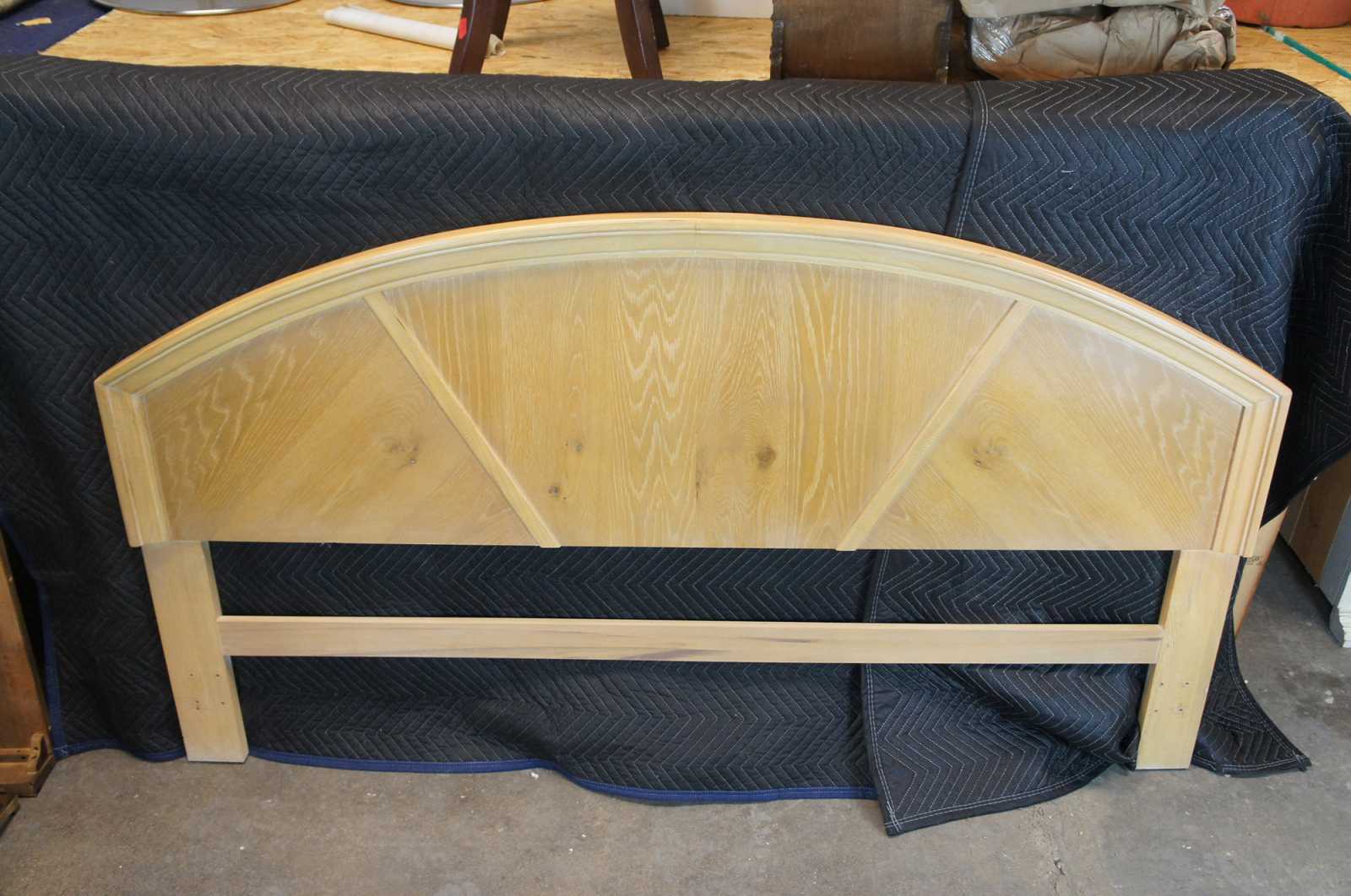 Vintage 1990s Bernhardt king or California king headboard. Made of oak featuring crescent / demilune paneled design. #281-419