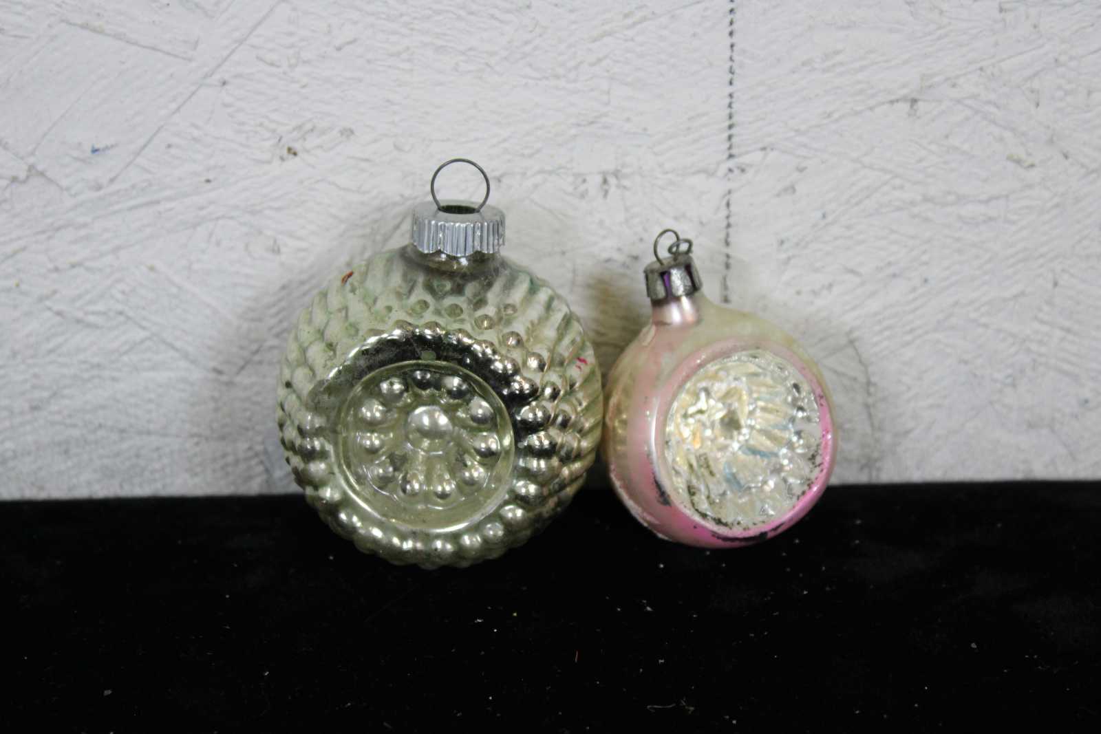 Lot of 31 rare assorted antique German mercury glass Christmas ornaments. Featuring Kugel or ball like ornaments in the shapes of fruit, tear drops, santa clauses, heart, pipe, birds, baskets, acorn, train, corn, bell, lanterns ect.