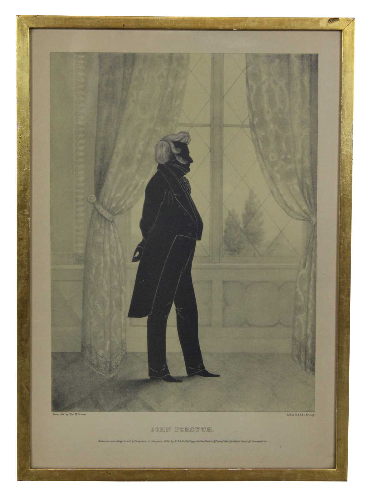 Two antique lithograph silhouettes of John Forsyth and Alexander Macomb taken from life by William Henry Brown and produced by E.B. & E.C. Kellogg.