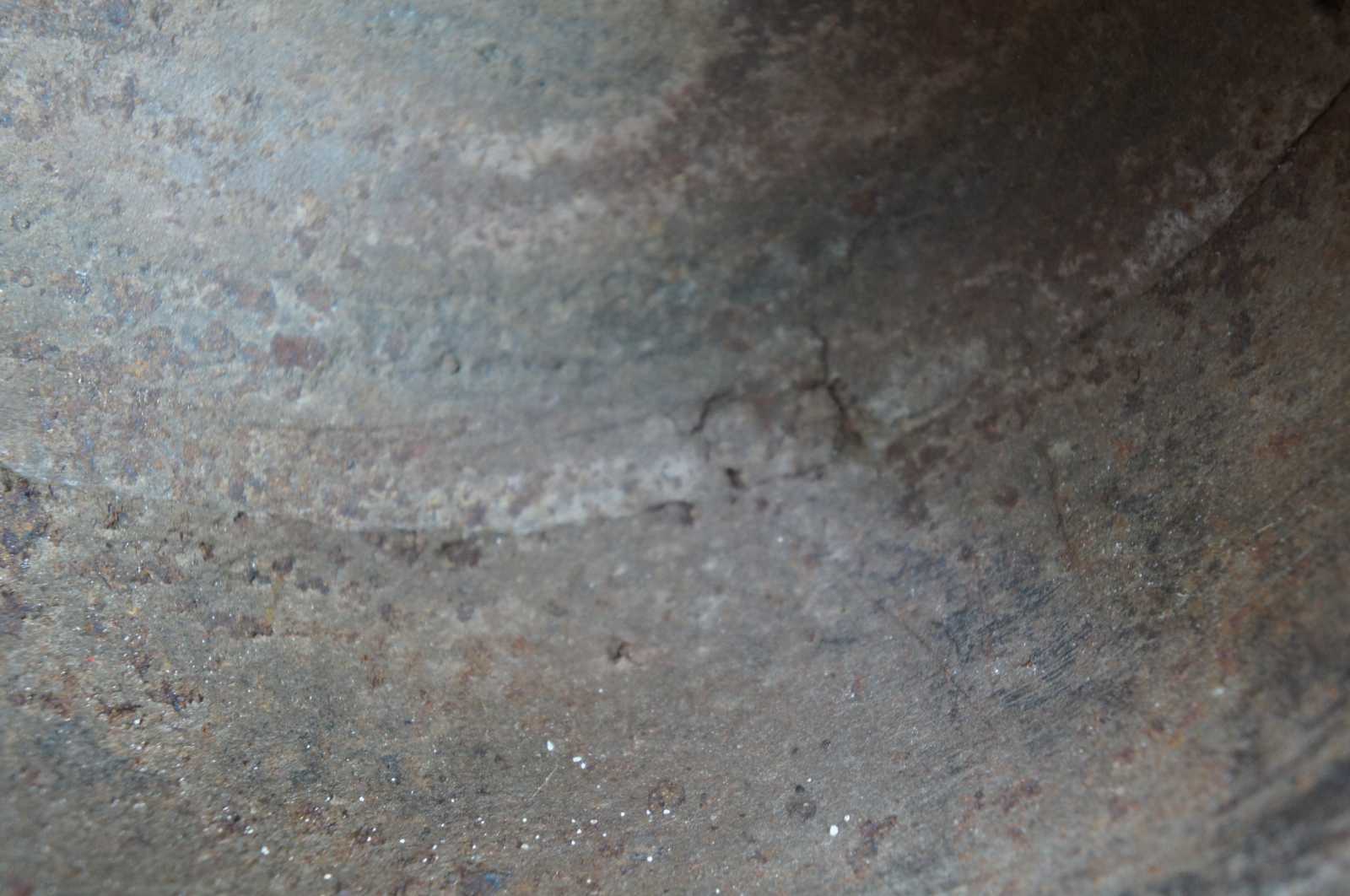 Good antique condition, wear and distressing from age and use, oxidation, warping.