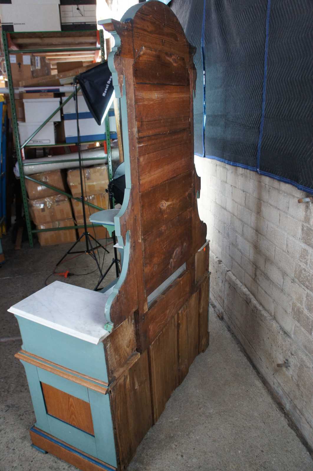 Fair condition, wear and distressing commensurate with age and use, cracking, splitting, marking, cracked marble, gap at back edge below mirror, streaking / scratching and silver loss to mirror.