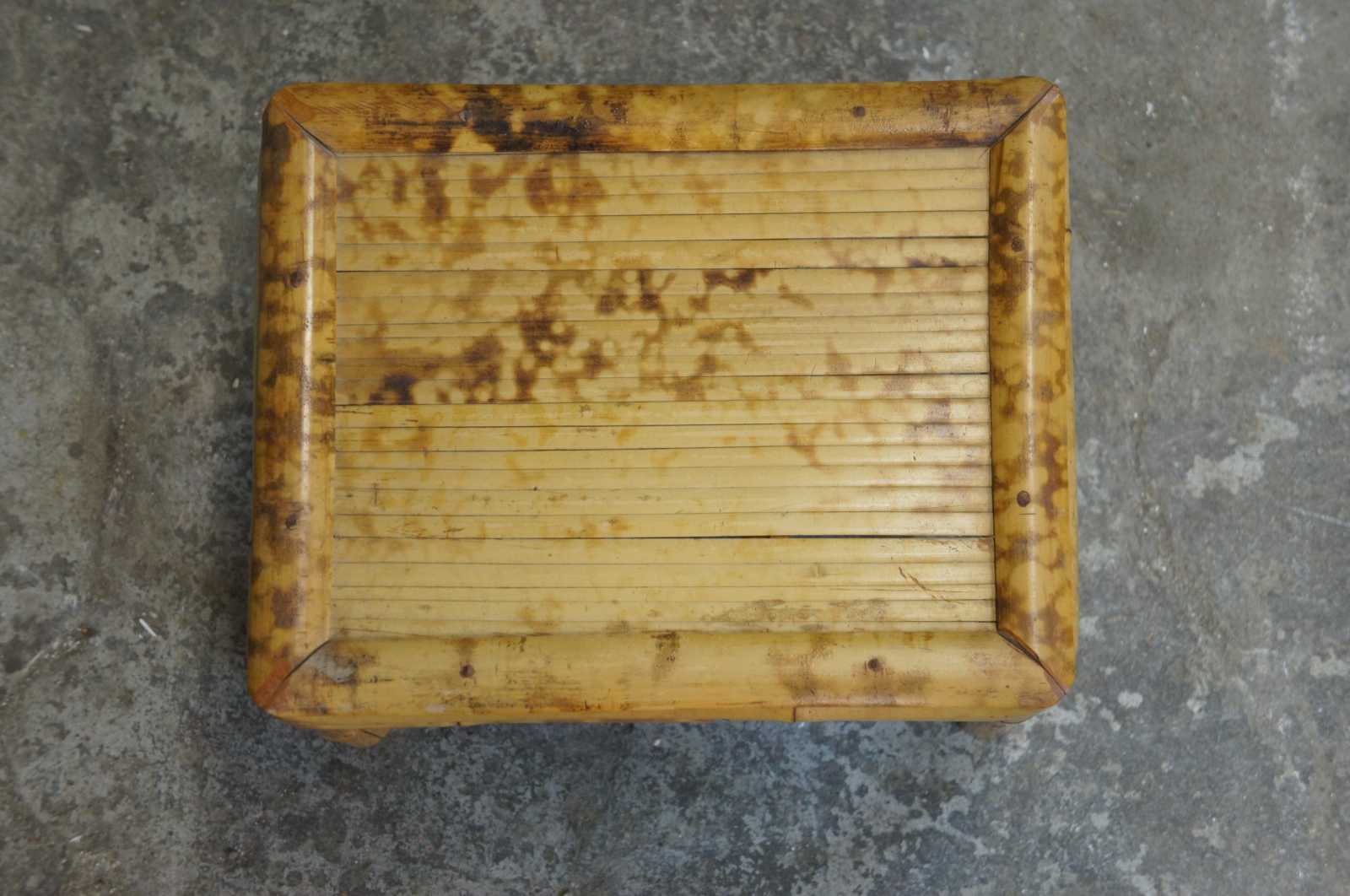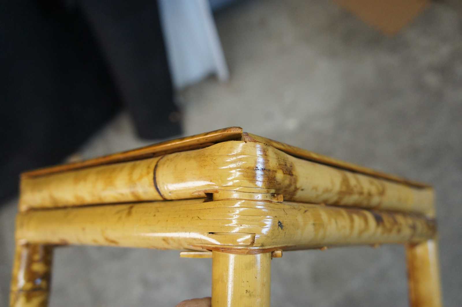Crica 1970s scorched bamboo plant stand. For those who are unfamiliar, scorched bamboo gives of the appearance of a tortoise design.