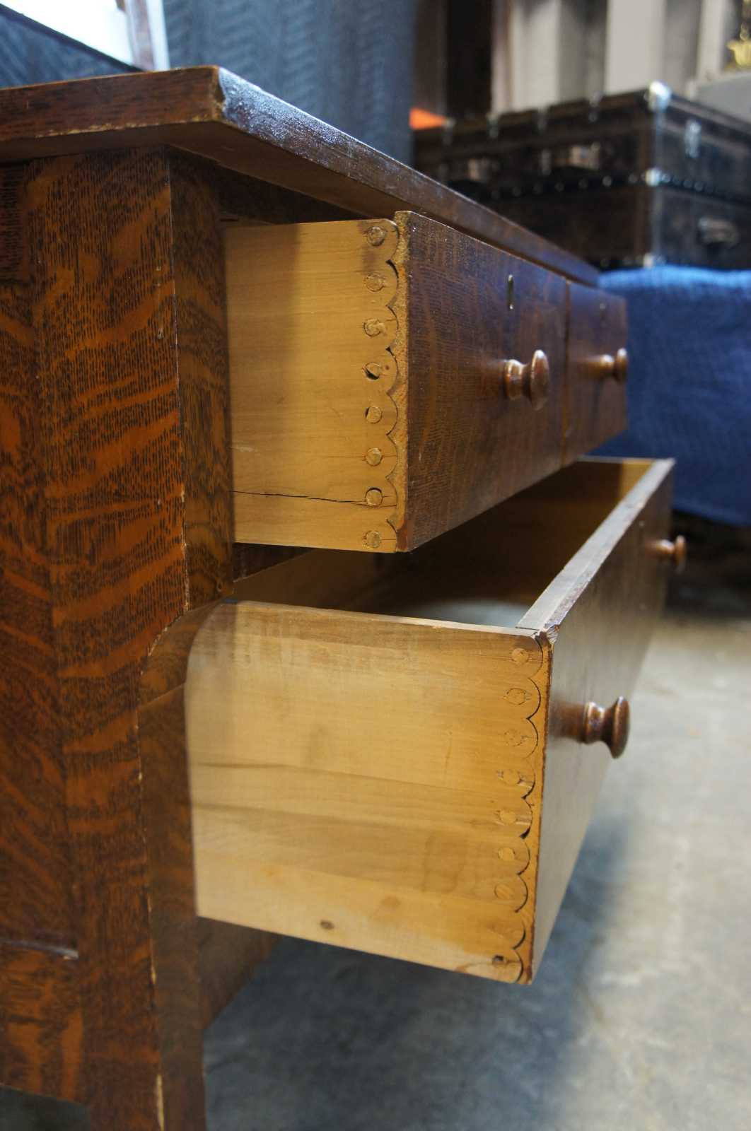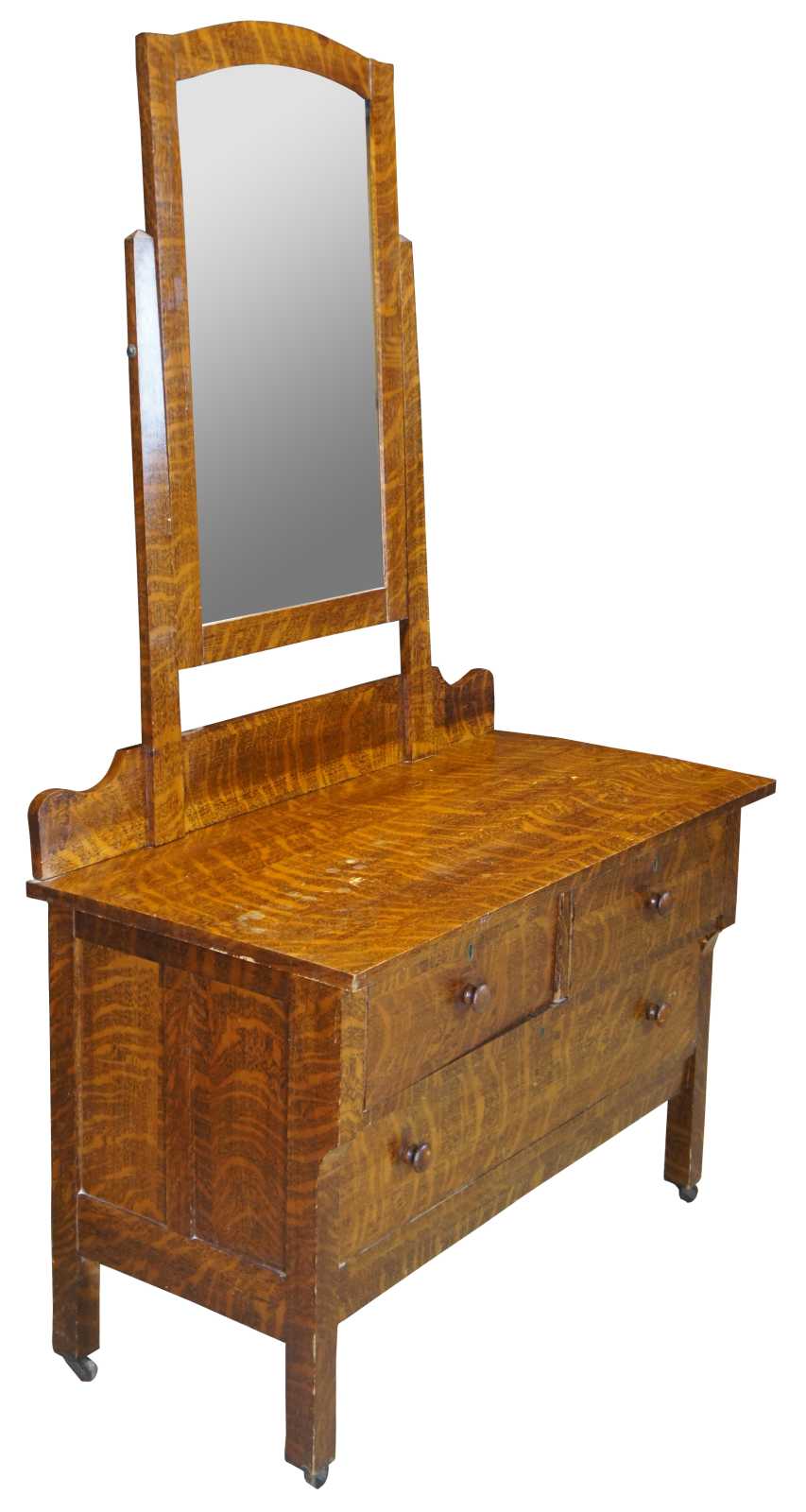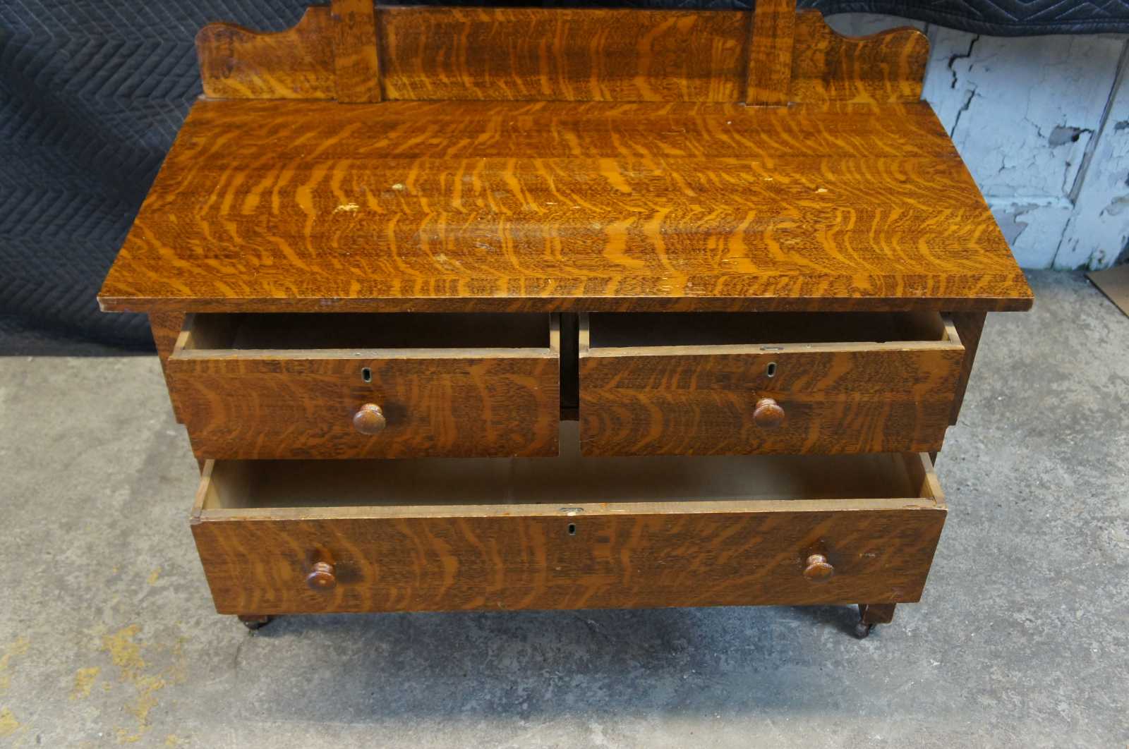 Circa 1880s quartersawn oak dresser with adjustable mirror. Features 3 drawers with pin and cove/knapp joint construction.