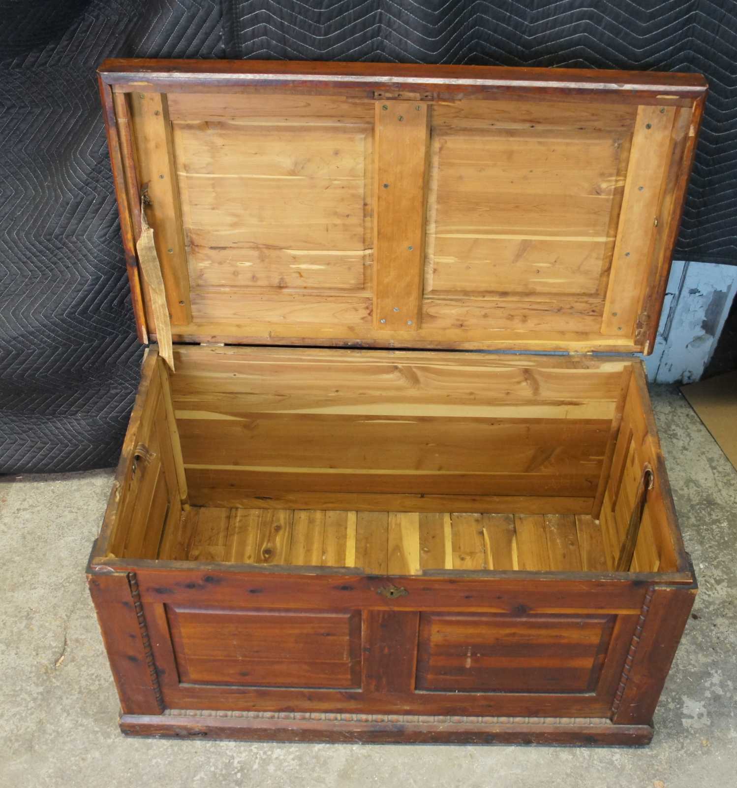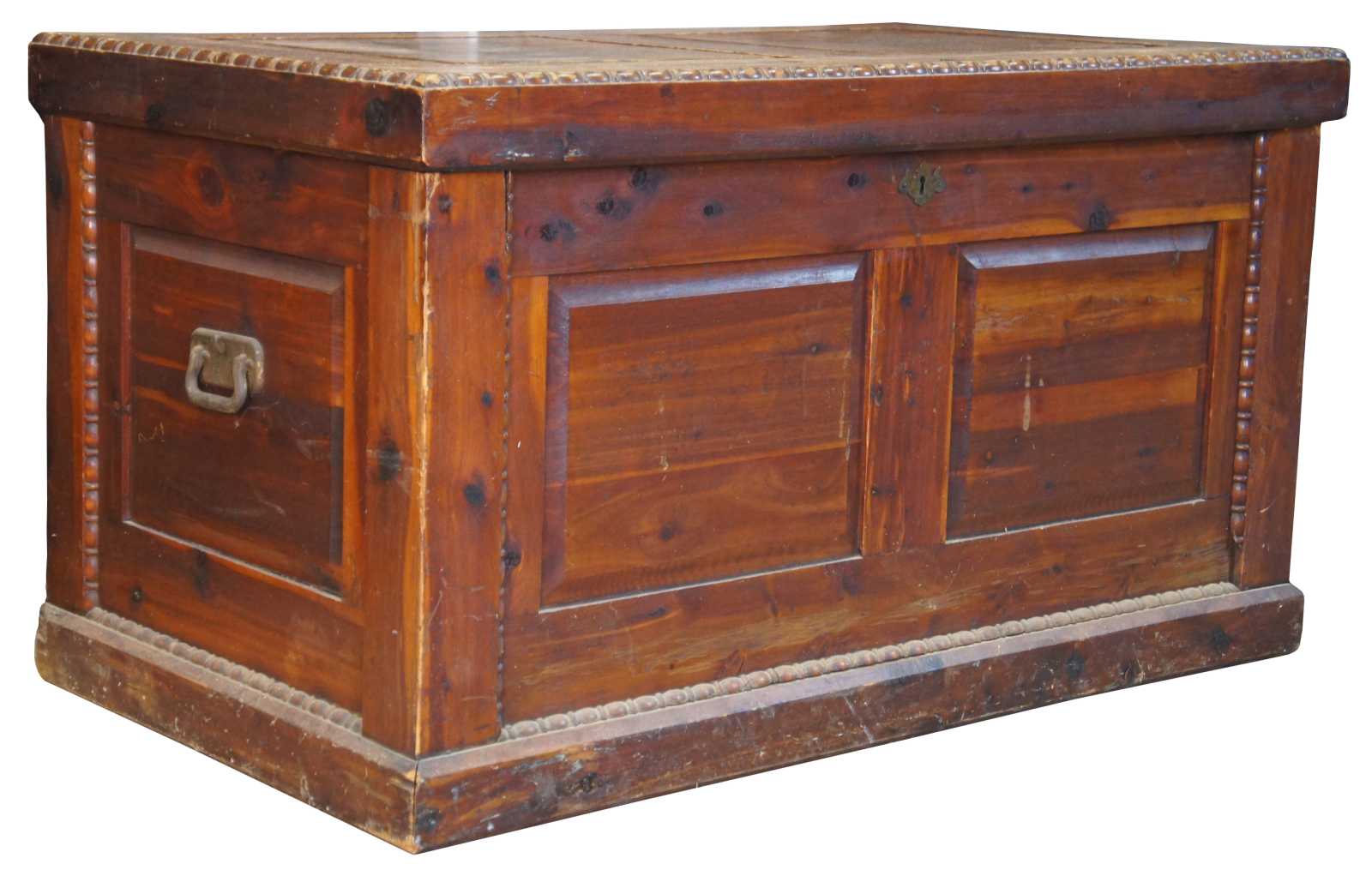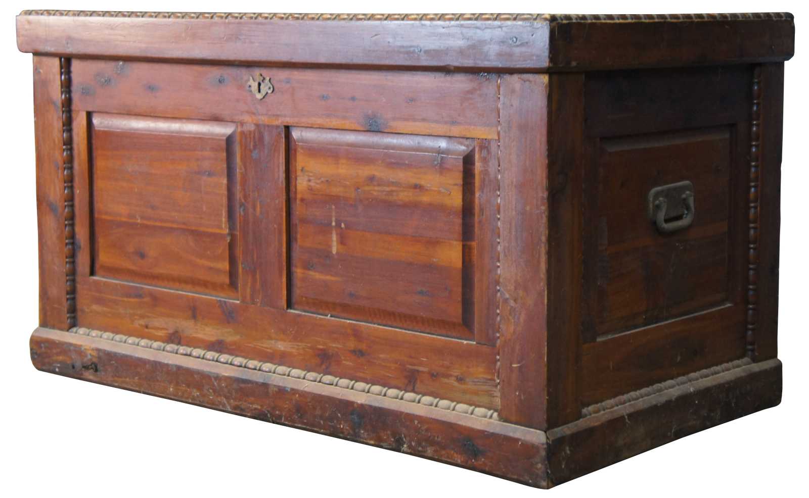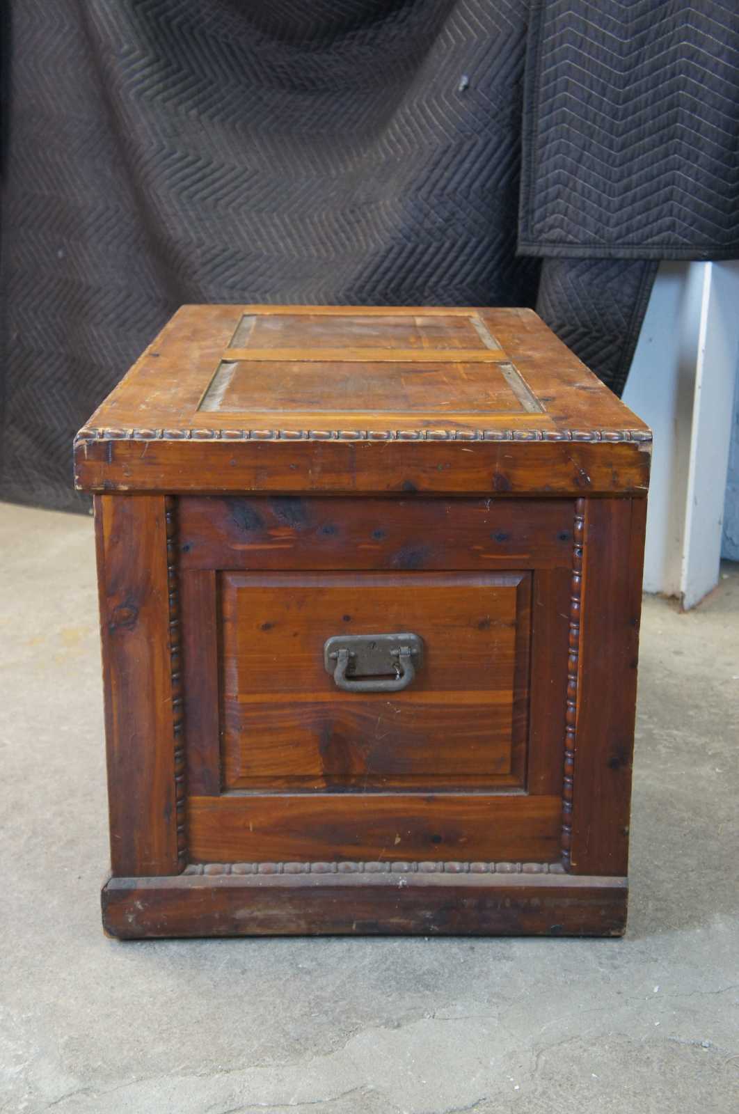 Early 20th century cedar chest. Feature a paneled case with ornately beaded trim and brass handles. Great for use to store blanket or as a table.