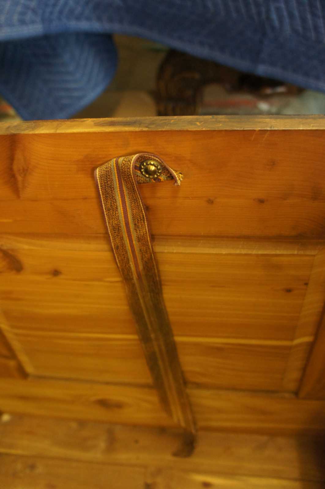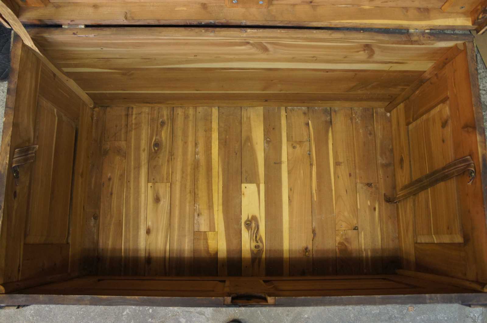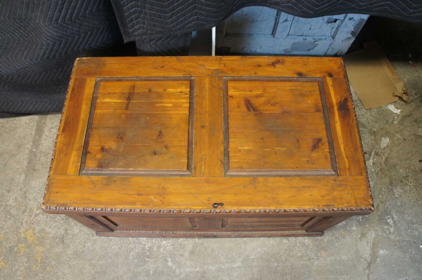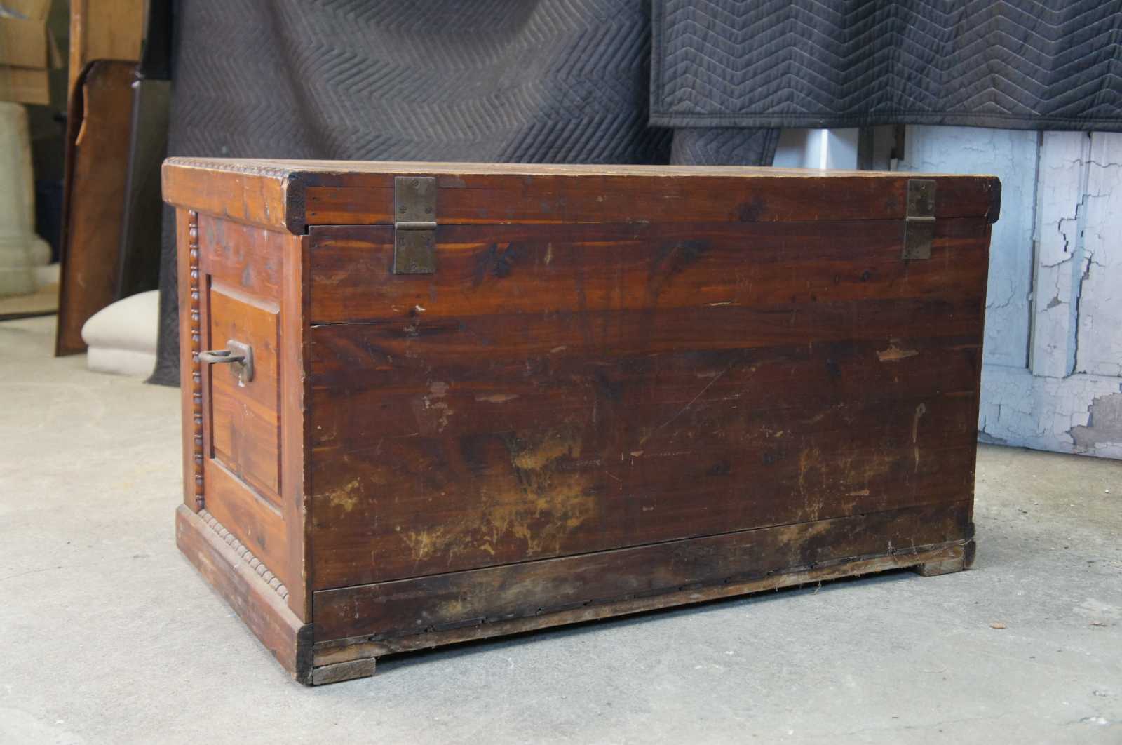 Early 20th century cedar chest. Feature a paneled case with ornately beaded trim and brass handles. Great for use to store blanket or as a table.