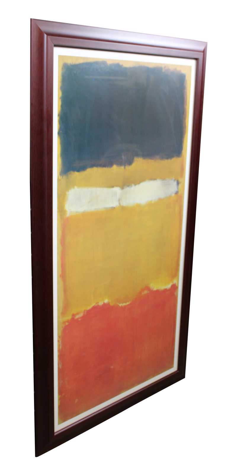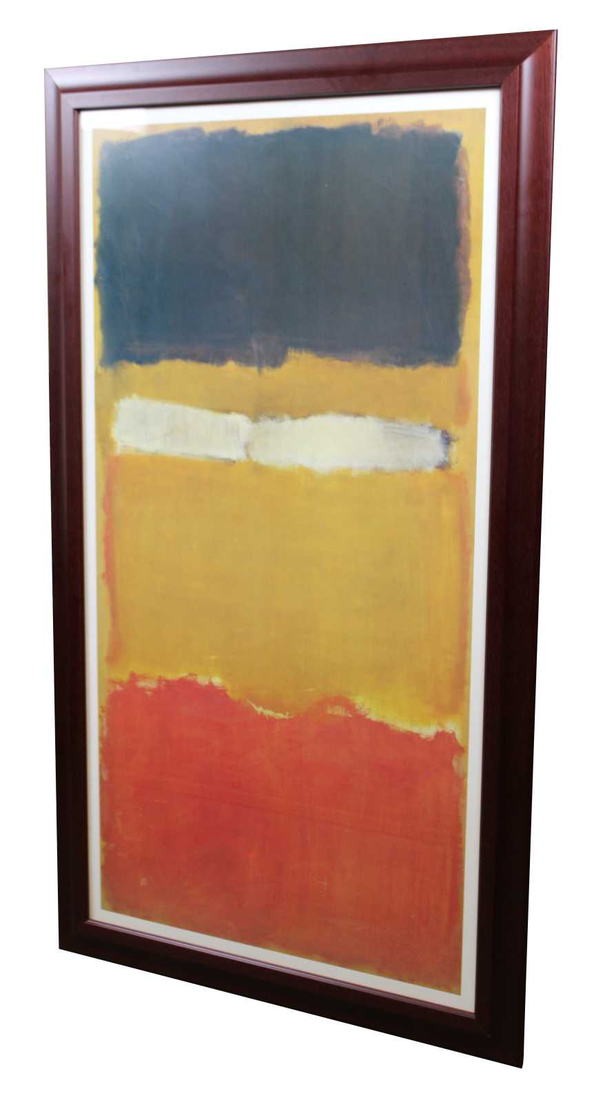 Mid century abstract expressionist print by Mark Rothko, No 24 , Tel Aviv, 1951. “Mark Rothko was born Marcus Rothkowitz in 1903 in Dvinsk, Russia. His father was a pharmacist. As a child he spoke Hebrew and Russian until he was ten years old; in 1913 he and his two sisters, Anna and Sonia, came to Portland, Oregon, where their parents had preceded them. They wore labels explaining that they did not speak English; he enrolled in Immigrant School. In 1921 he won a scholarship to Yale University; he was one of three immigrant seniors to get into Yale. He planned on becoming a labor leader. In 1923 he left Yale, moving to New York to work as a bookkeeper for an uncle. Somewhere along the way he disavowed his faith, struggling with a cultural identity developed against a hostile backdrop of anti-Semitism.