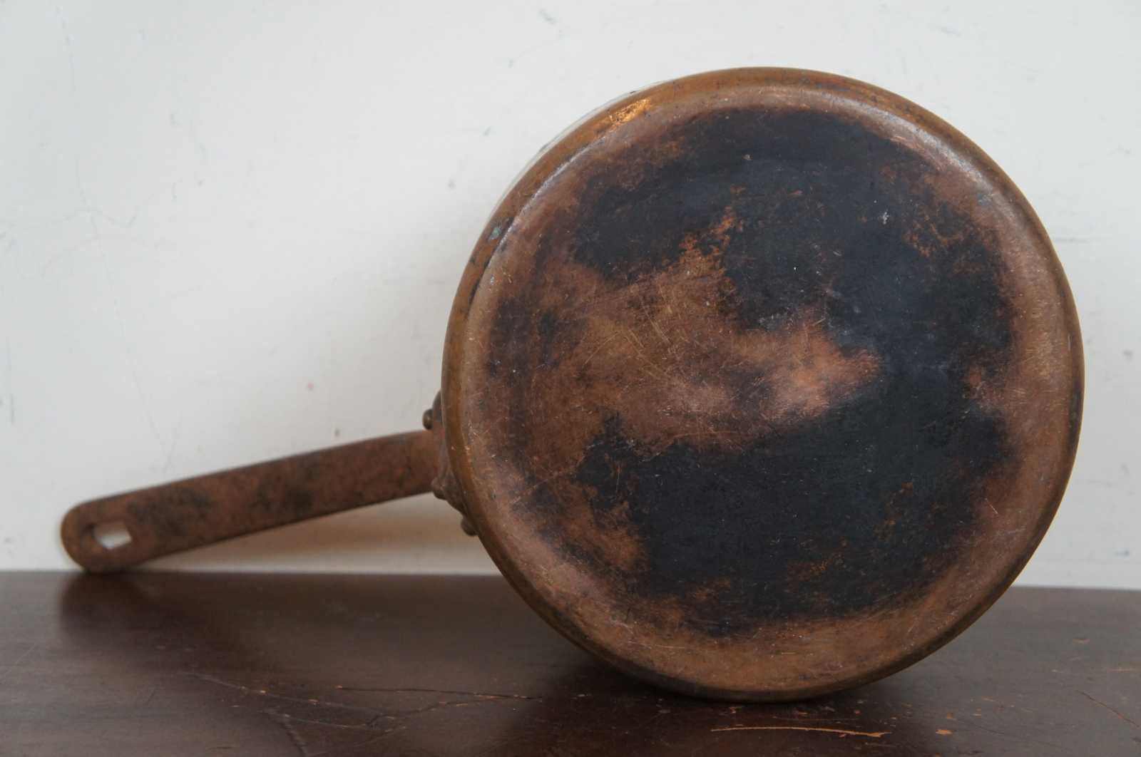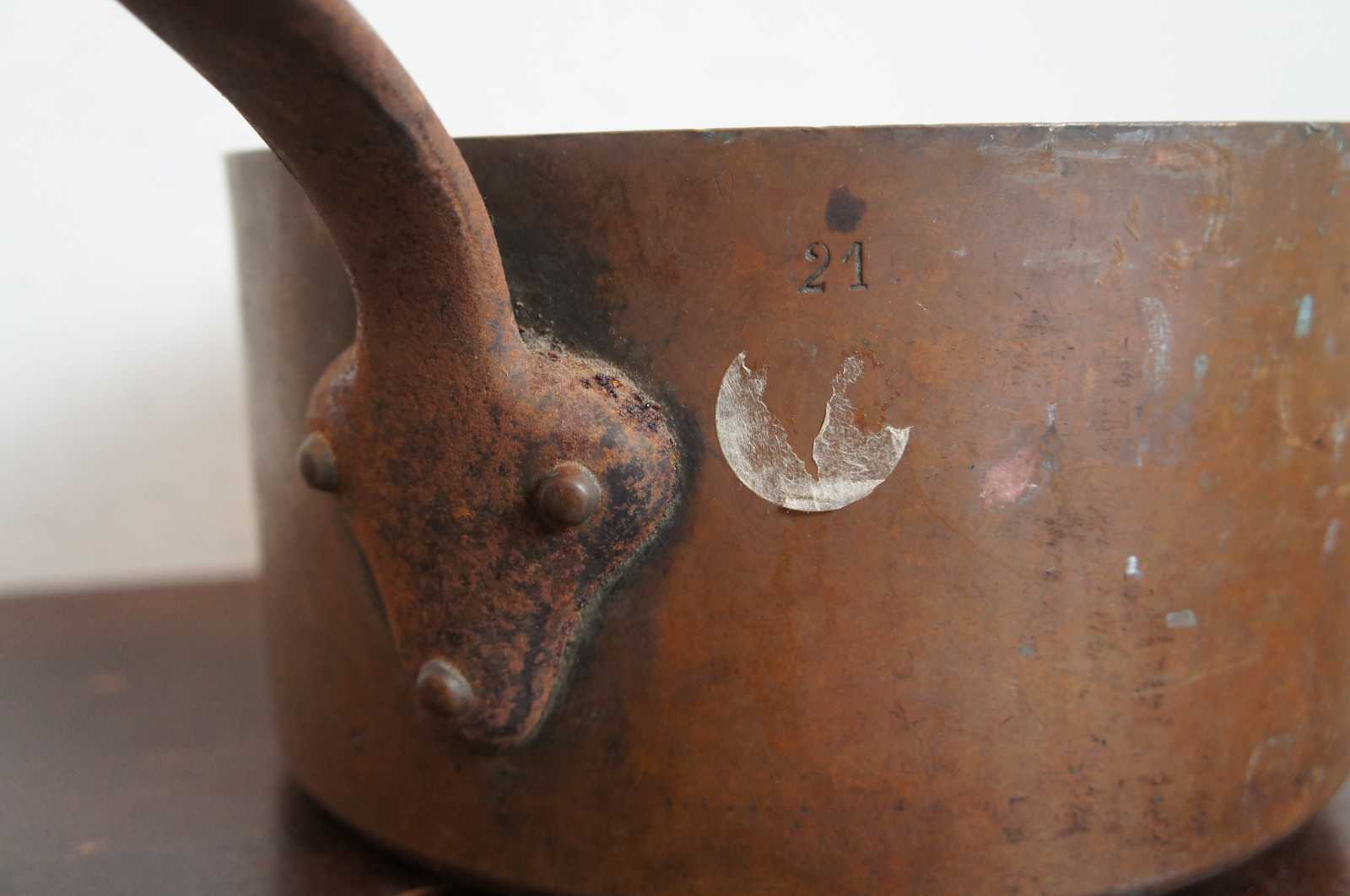 Antique 19th century copper saute pan or pot by A La Menagere of Paris France. Marked along handle, marked 21.