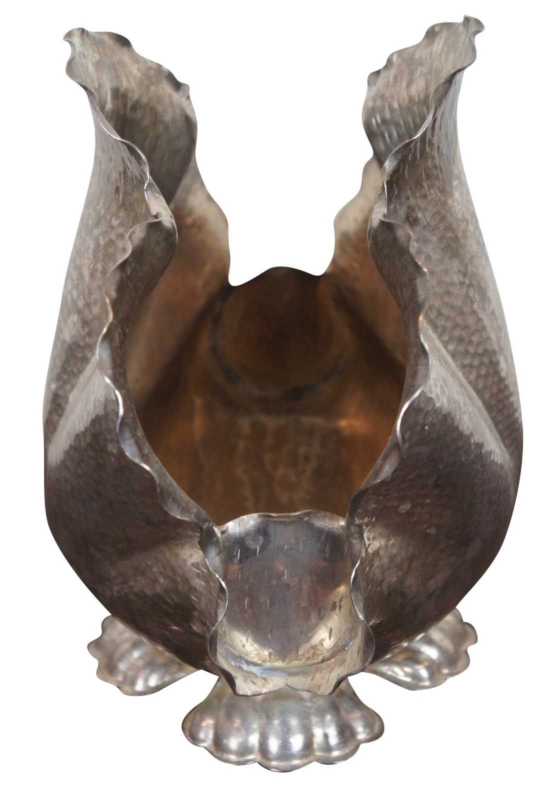 Vintage hammered serpentine silver plate scalloped clam shell wine cooler or footed centerpiece vase. Made after and in the form of the original by Christian Dior.