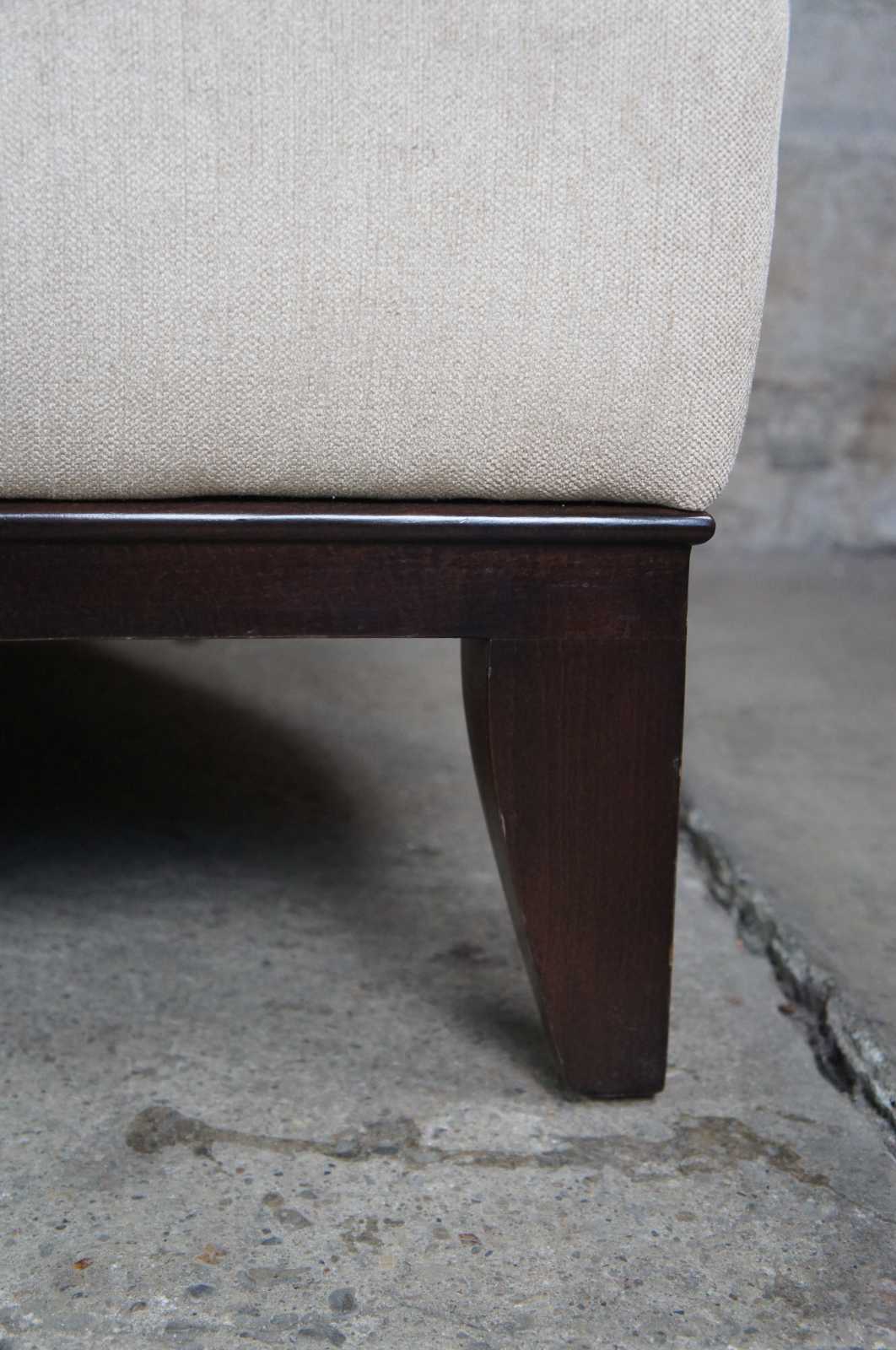 Famed designer Barbara Barry brings her signature blend of accessible elegance to her collection for fine furniture brand Henredon. It features a tight seat and back, along with a sleek wood base. The tapered legs and curved front bring subtle shape to the piece.