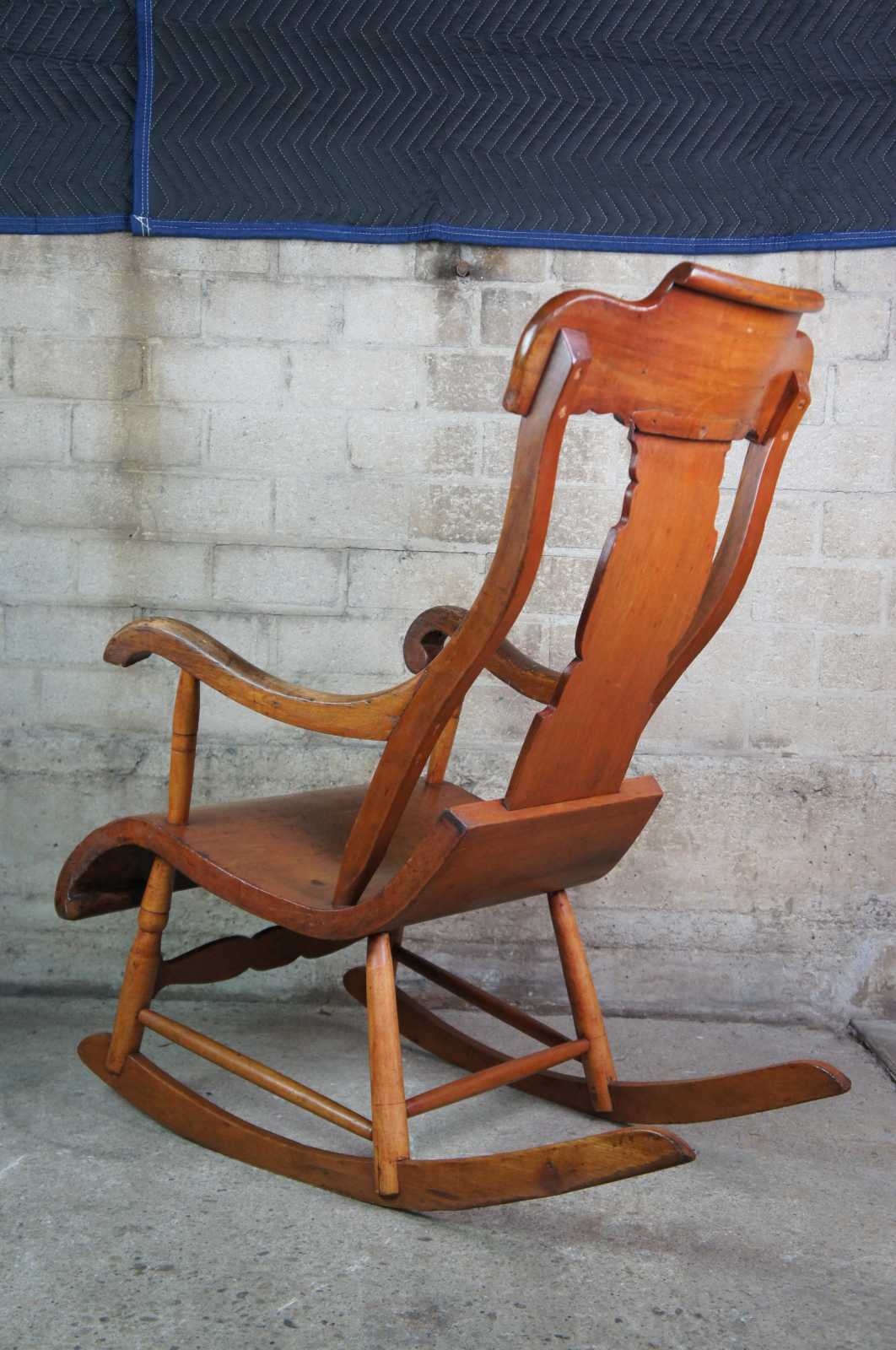 Antique Boston rocker, circa 1850s. Despite the name, Boston rockers were actually made in Connecticut. They have a scrolled seat, spindled back, and a rolling headpiece. The Boston rocker was most popular from 1830 to 1890.