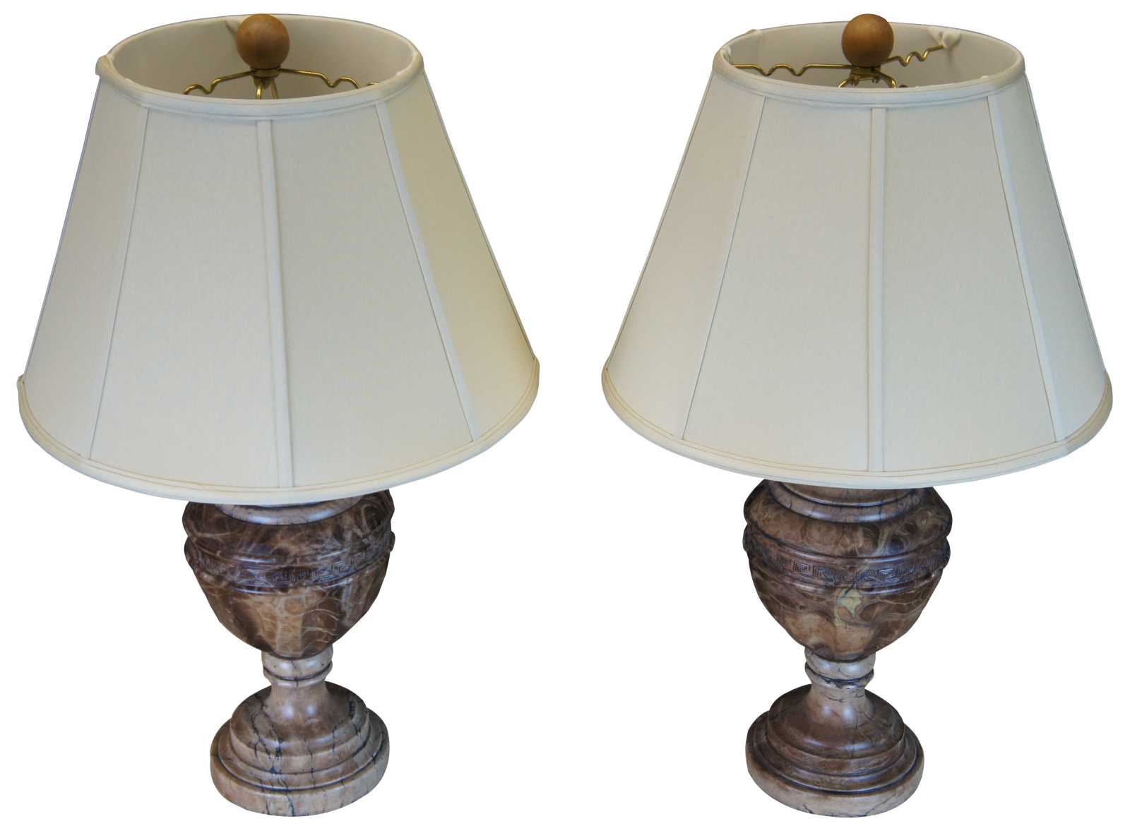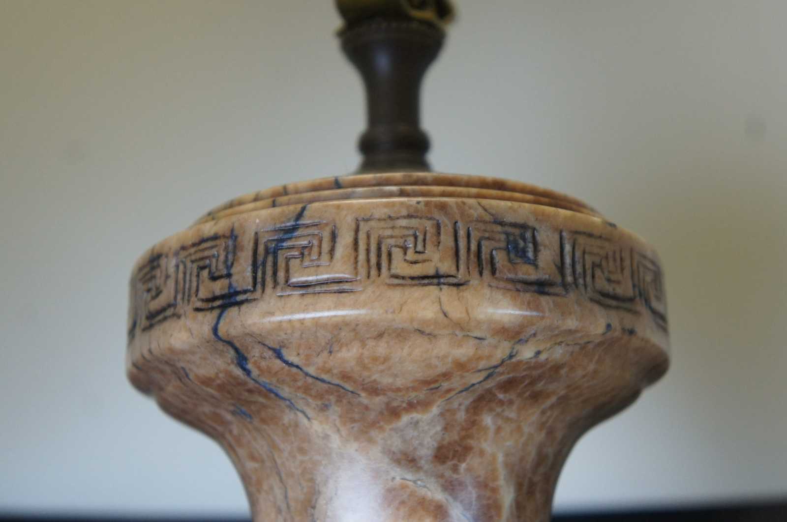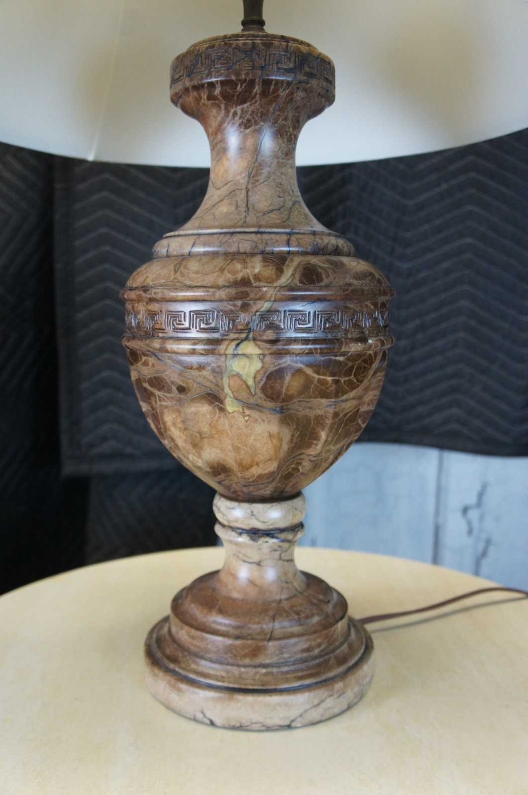 Kreiss Luxury solid marble table lamps. Traditional form with a modern touch. Features a trophy urn shape with fluting and Greek key.