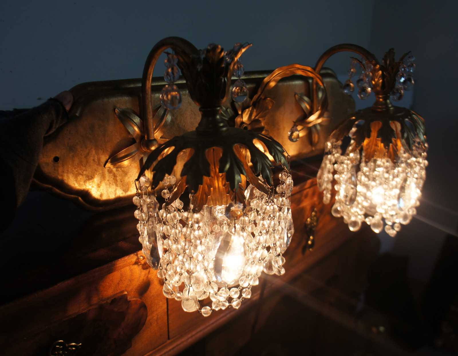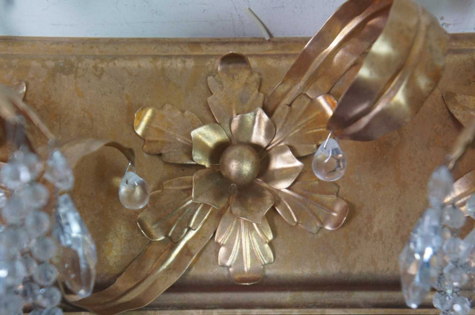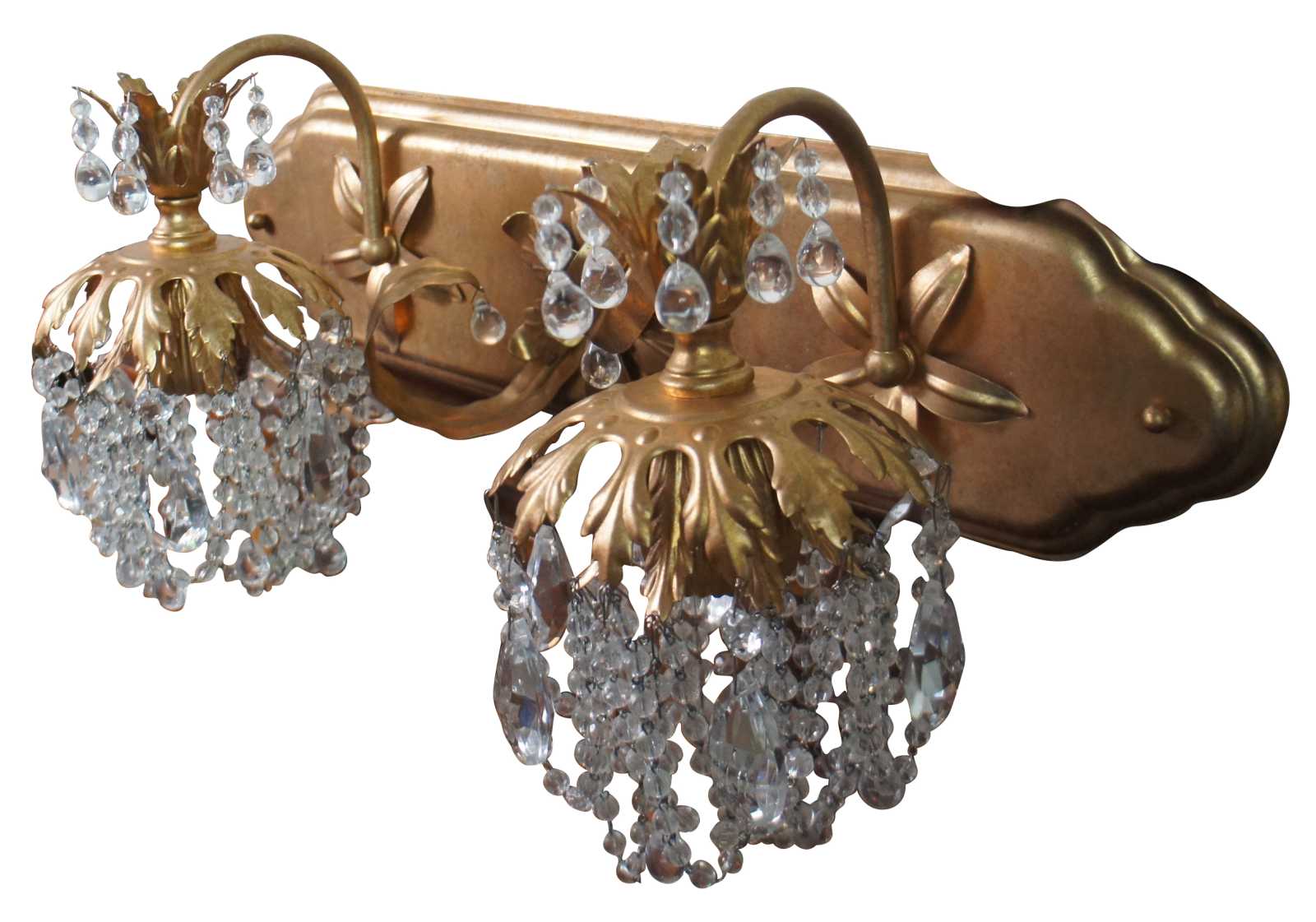 Vintage Schonbek Rondelle two light wall sconce with clear Swarovski vintage crystals, model 1255-26F, French Gold finish.