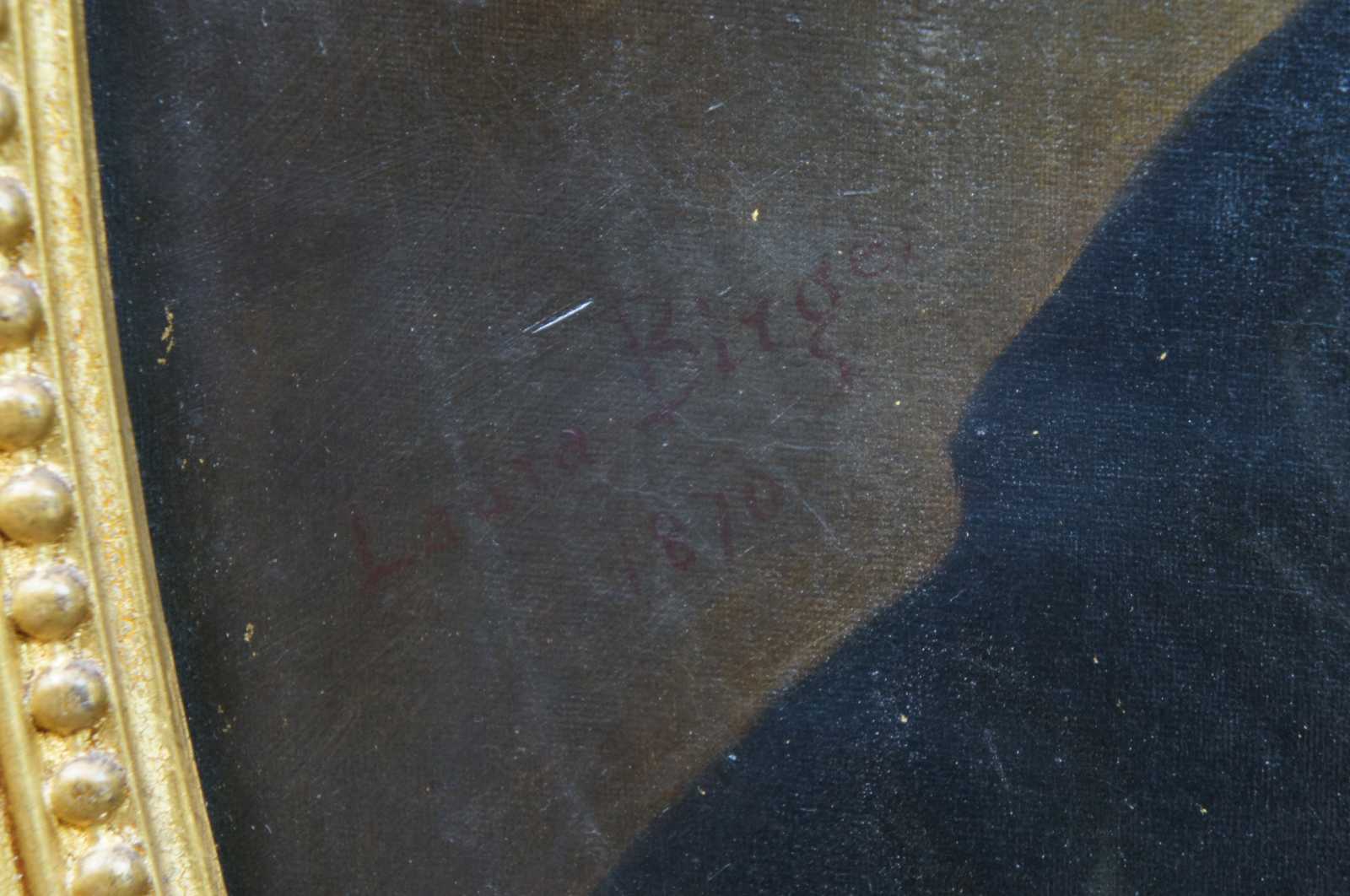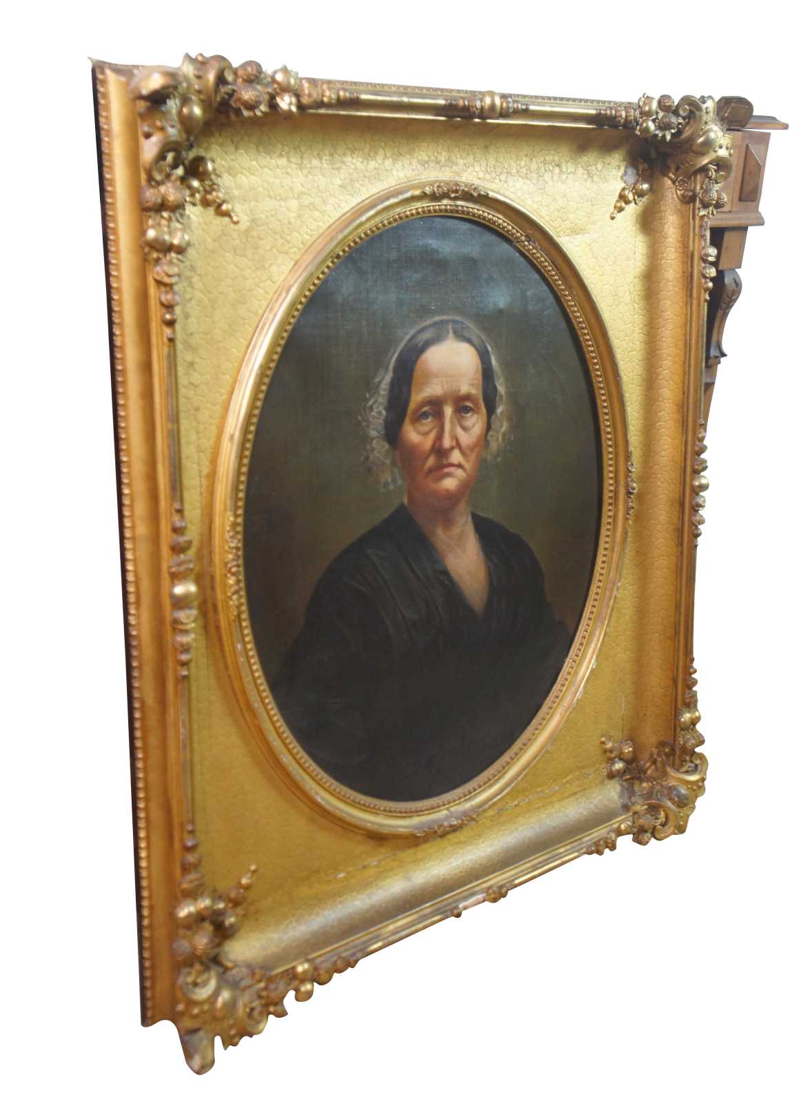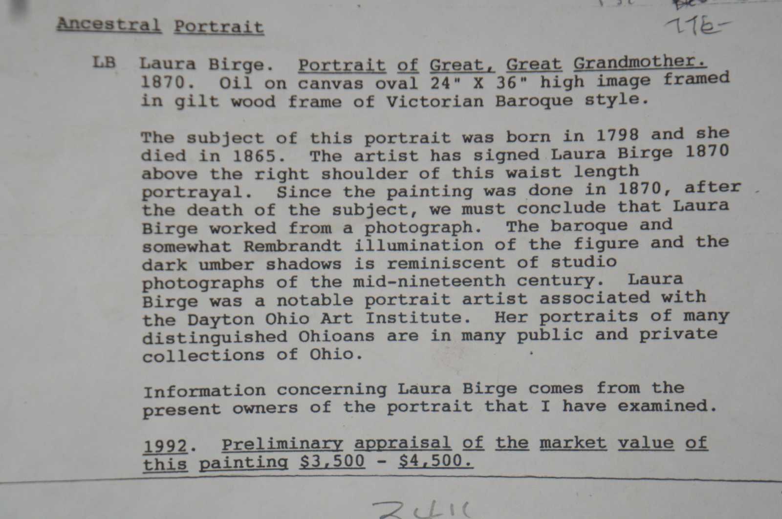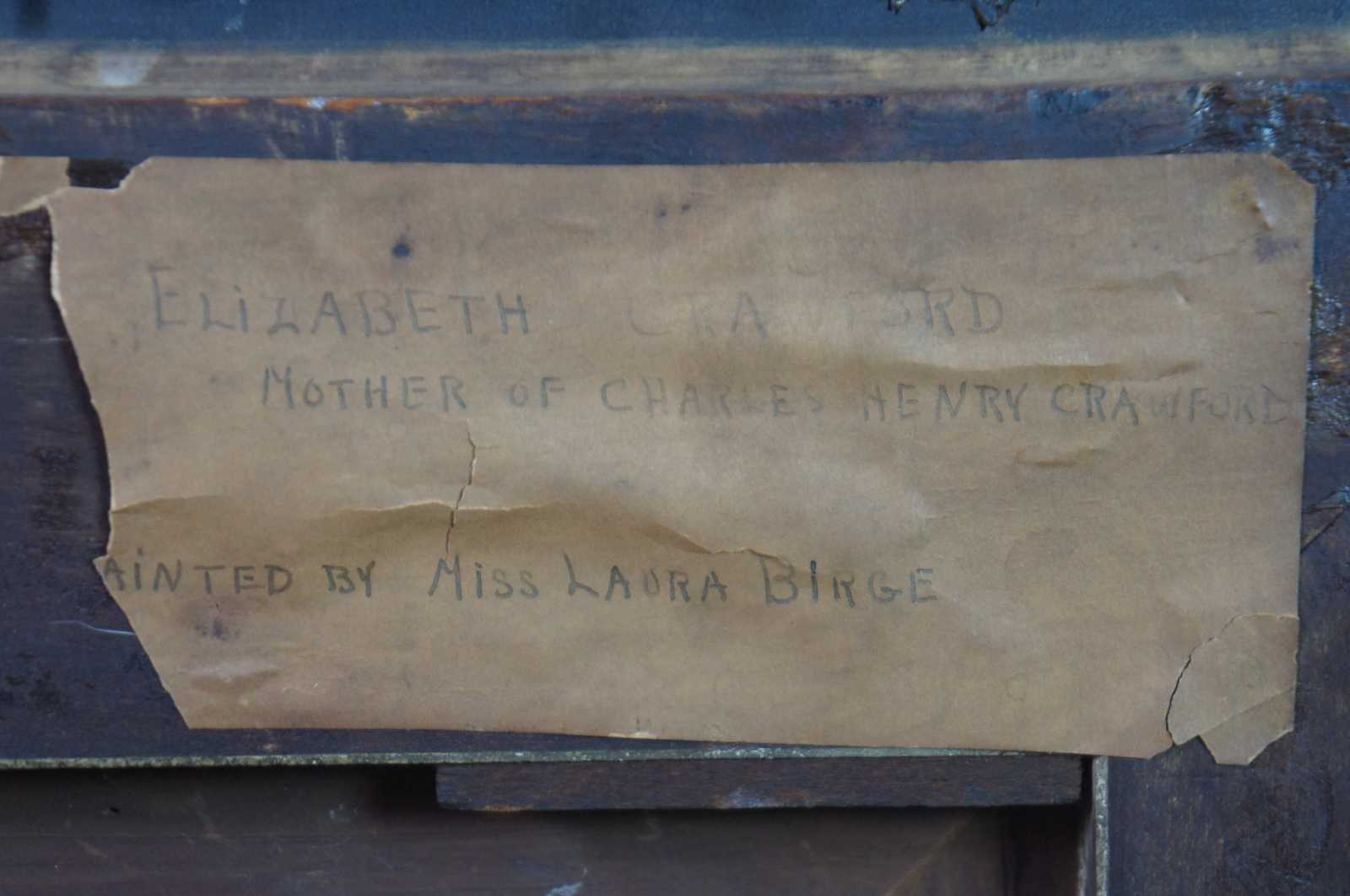 19th century Victorian oil on canvas portrait painting of Great, Great Grandmother (Elizabeth Craford 1798-1865) by Laura Birge, circa 1870, signed middle left.