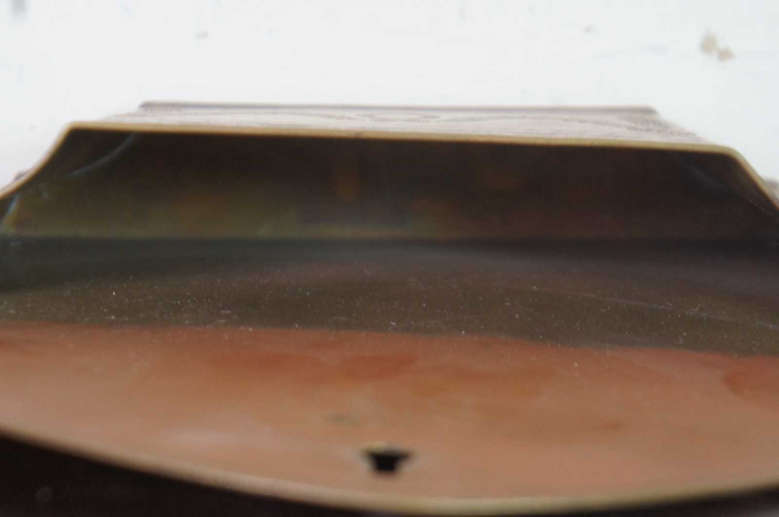 Vintage Neoclassical stamped brass wall hanging letter holder with neoclassical details and subtly monogrammed DBW.