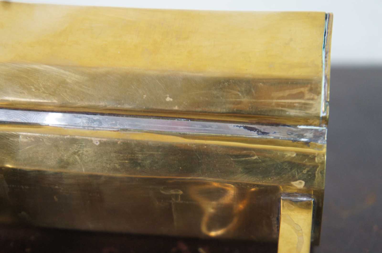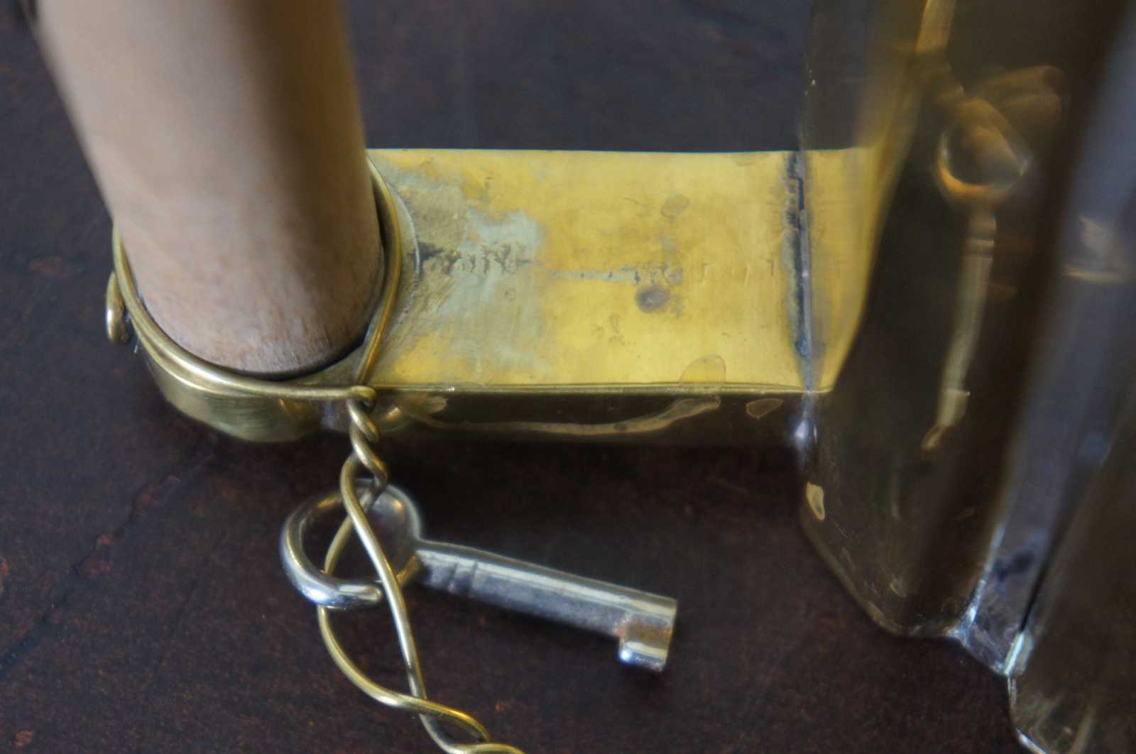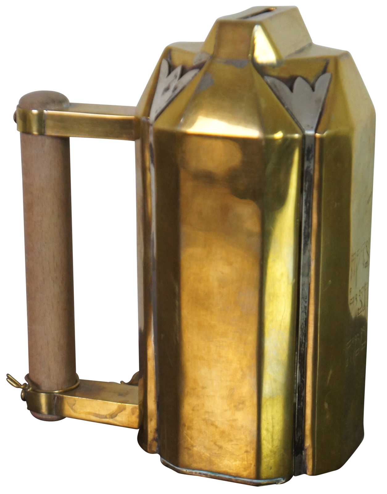 Rare Dudik Swed Masters Jerusalem brass charity Tzedakah box with silver accents, wooden handle and key. 1 of 1, commissioned by the Schottensteins.