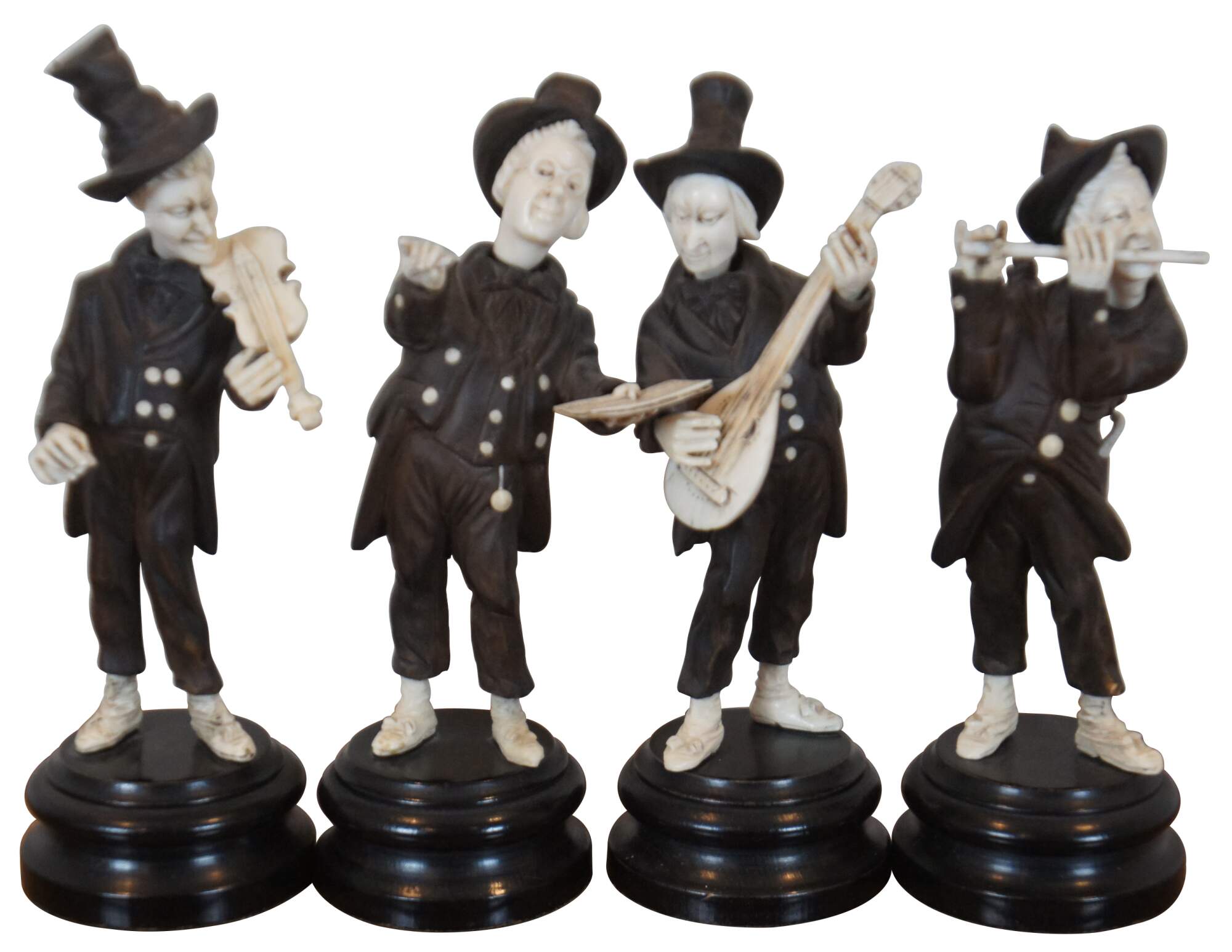 Fair condition, wear and distressing commensurate with age and use, conductor broken baton, horn player missing arm, few loose heads/hats, cello and fiddle missing bows.