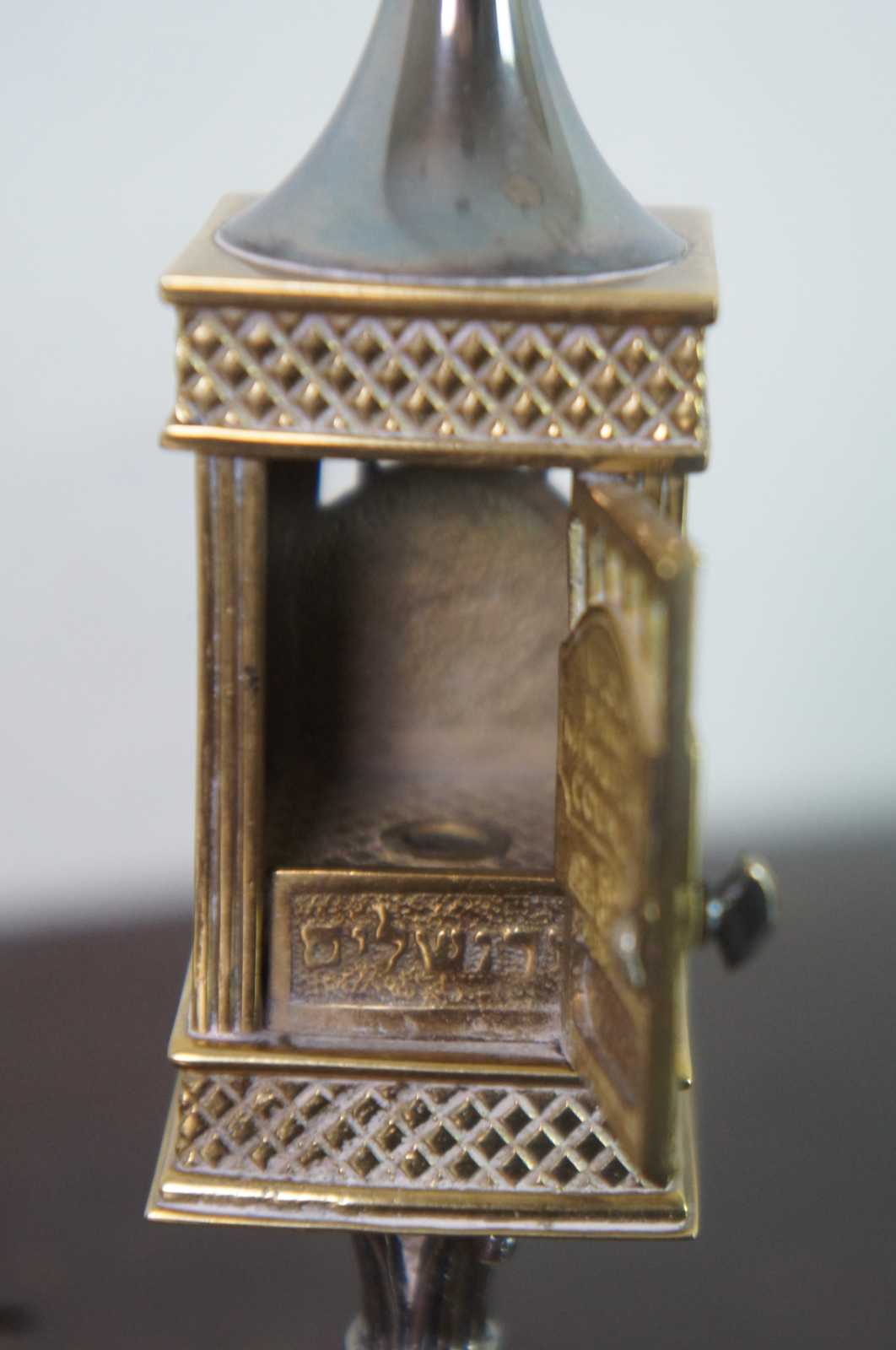 Vintage sterling silver and gilded brass havdalah set by Dudik Swed Masters, featuring a spice tower and kiddish goblet, the bases of which are removable for use as candle holders / candlesticks. Made for the UJA Prime Ministers Council, numbered 286/600.