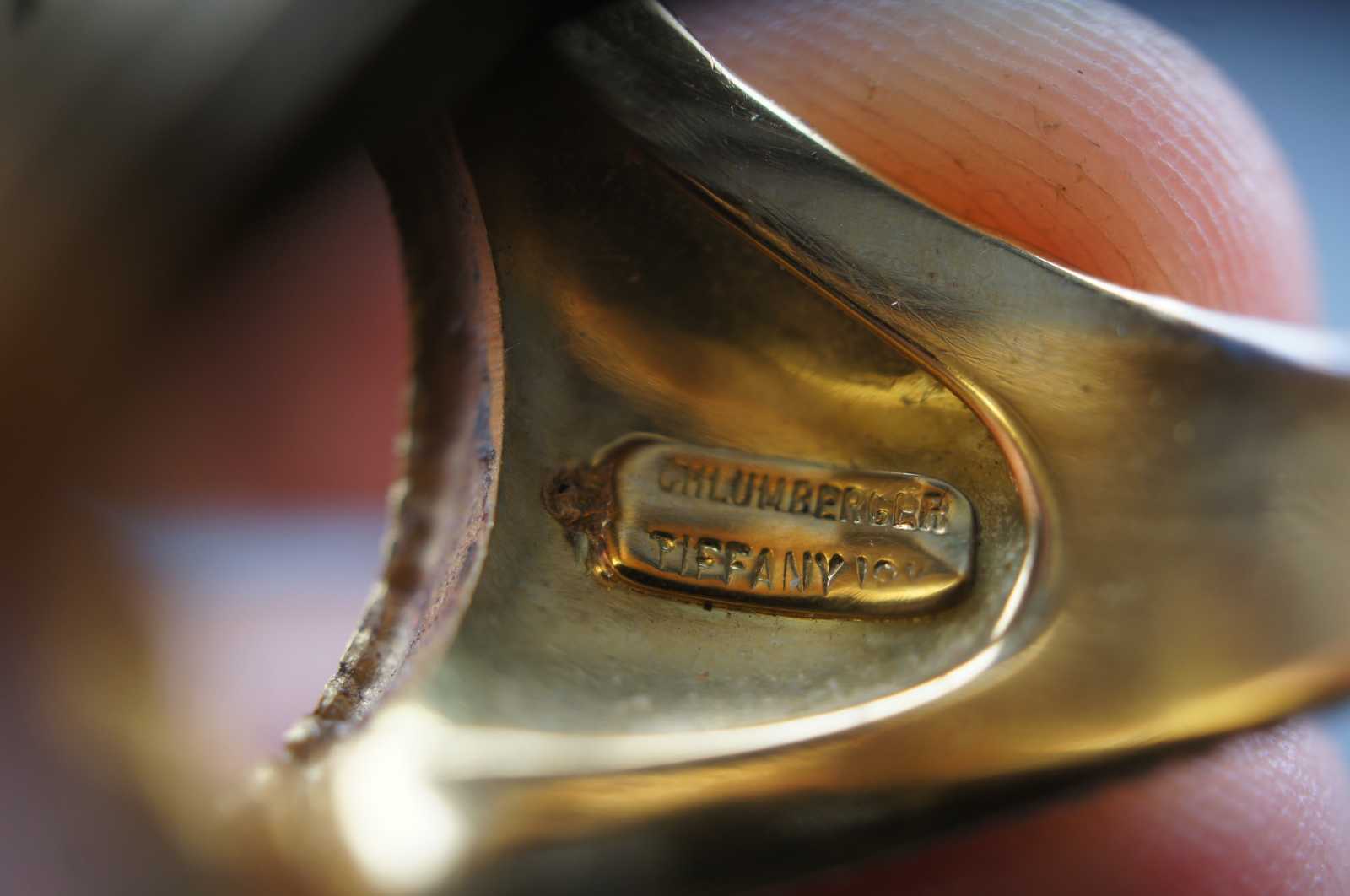 Vintage Tiffany & Co and Jean Schlumberger 18k yellow gold gold signet ring with a ridged rope twist design. Missing the original setting.