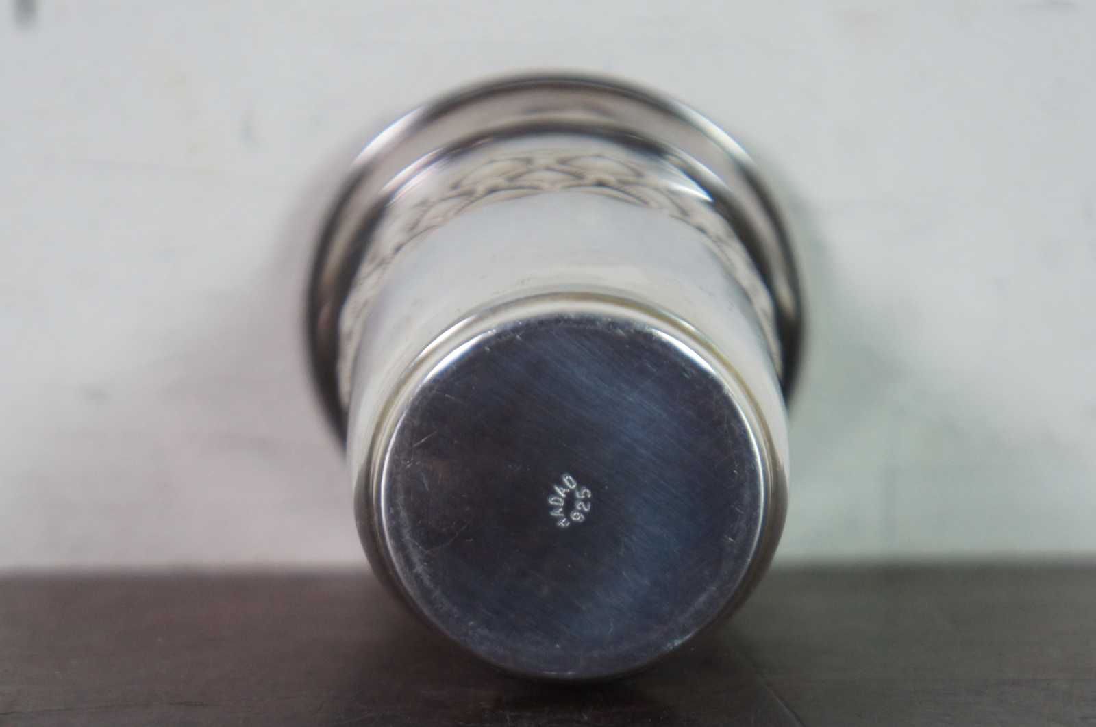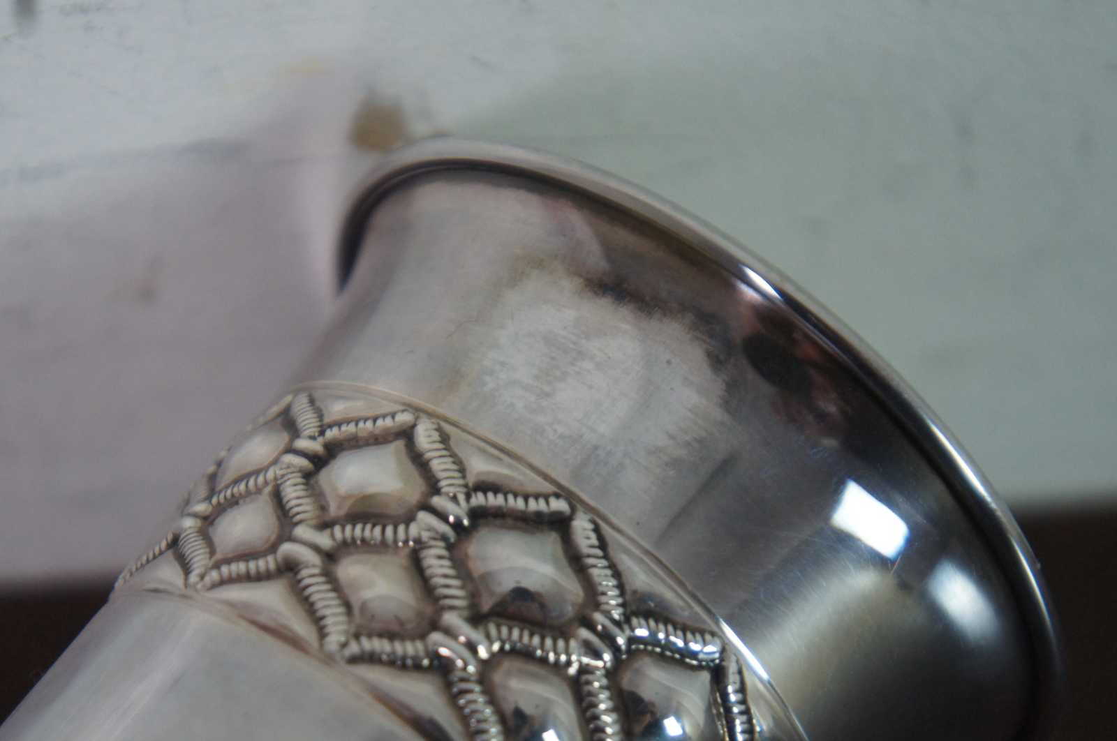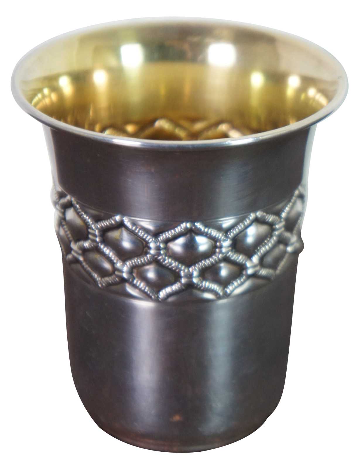 Vintage Hadad Brothers of Israel 925 sterling silver kiddush cup with gilt interior and decorative band around the outside.