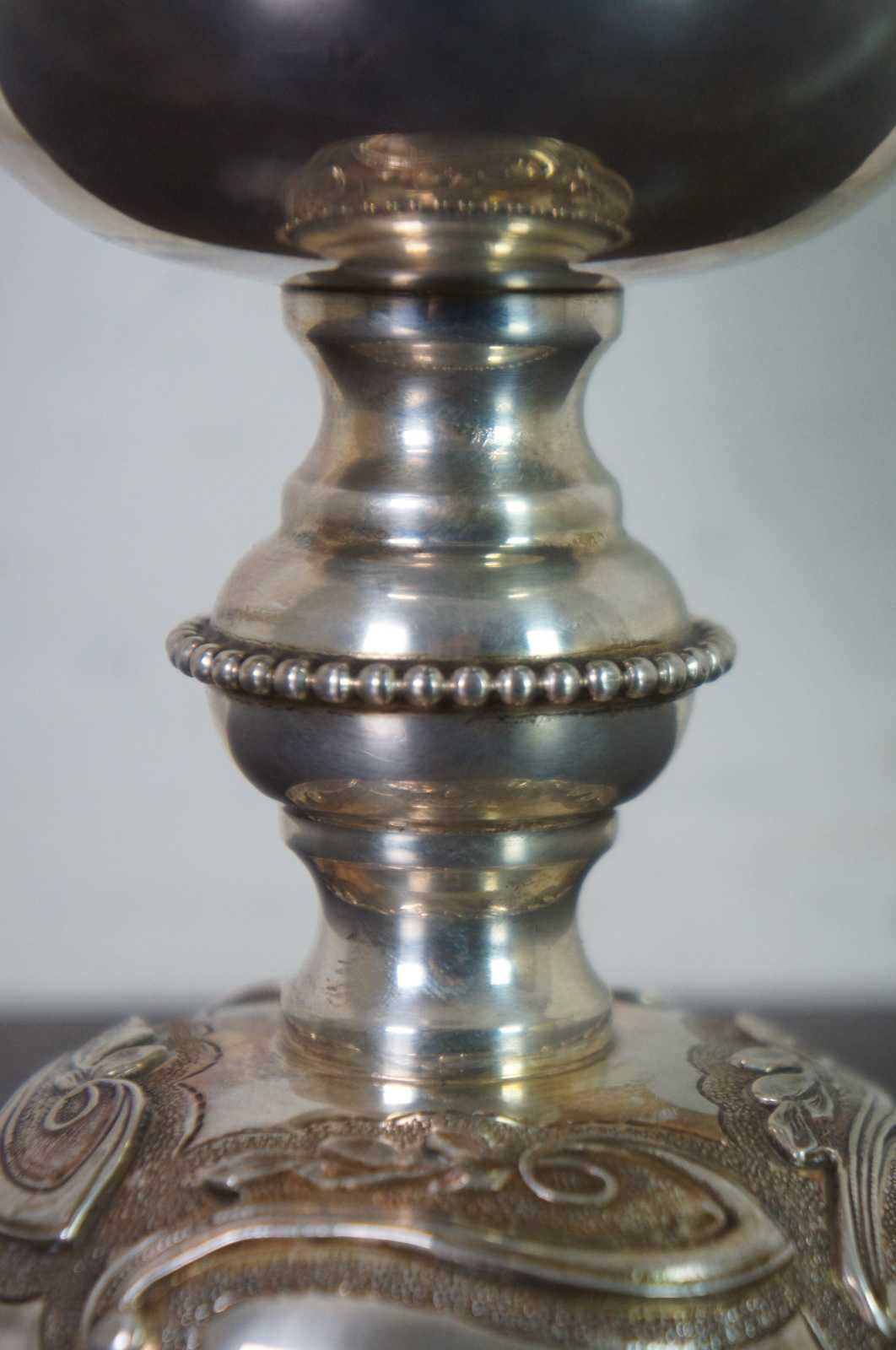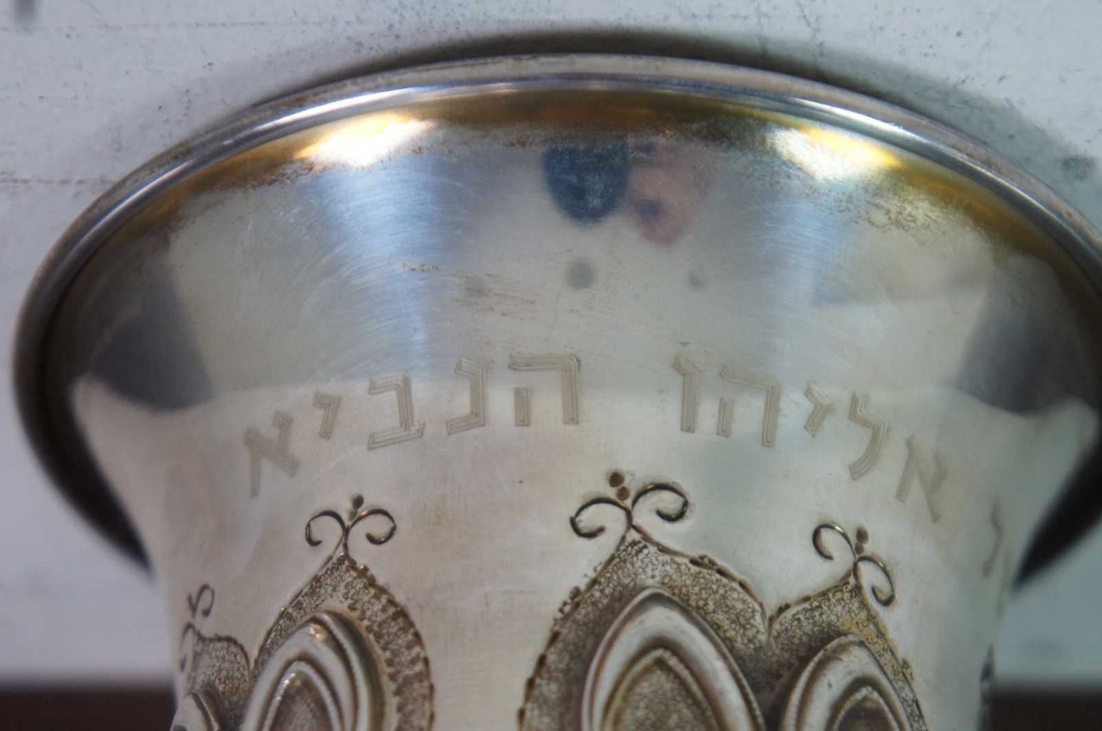 Heavy antique sterling silver 925 kiddush / Passover cup / goblet with elegant repousse design and inscribed The Profit Elijah or אליהו הנביא.