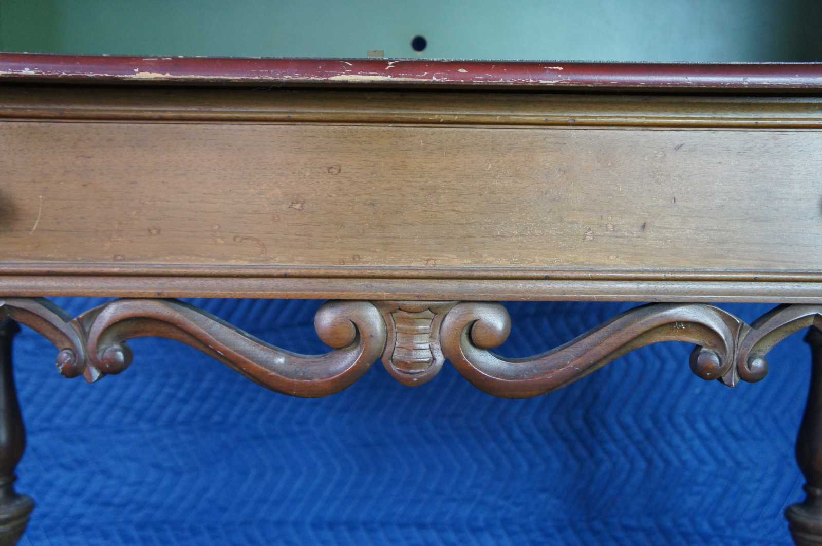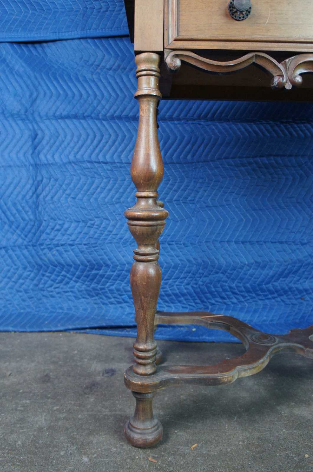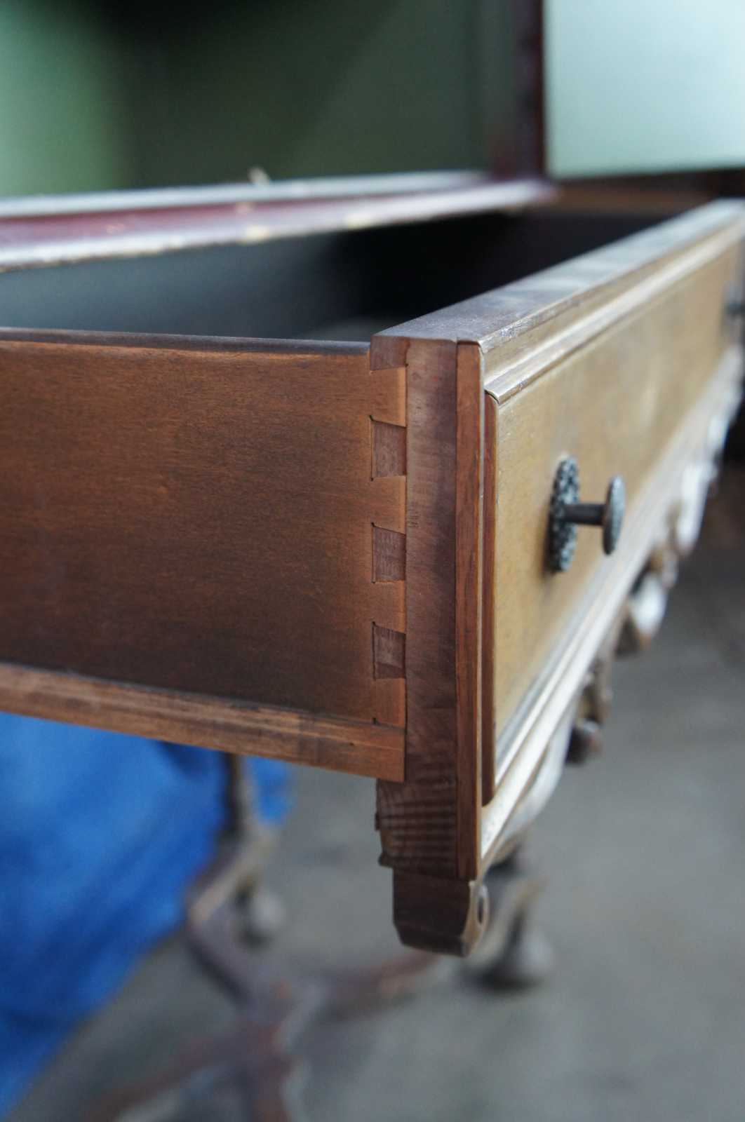 Fair condition, wear and distressing, paint loss / chipping / scratching / edge wear, right door doesnt align perfect, veneer splitting to base.