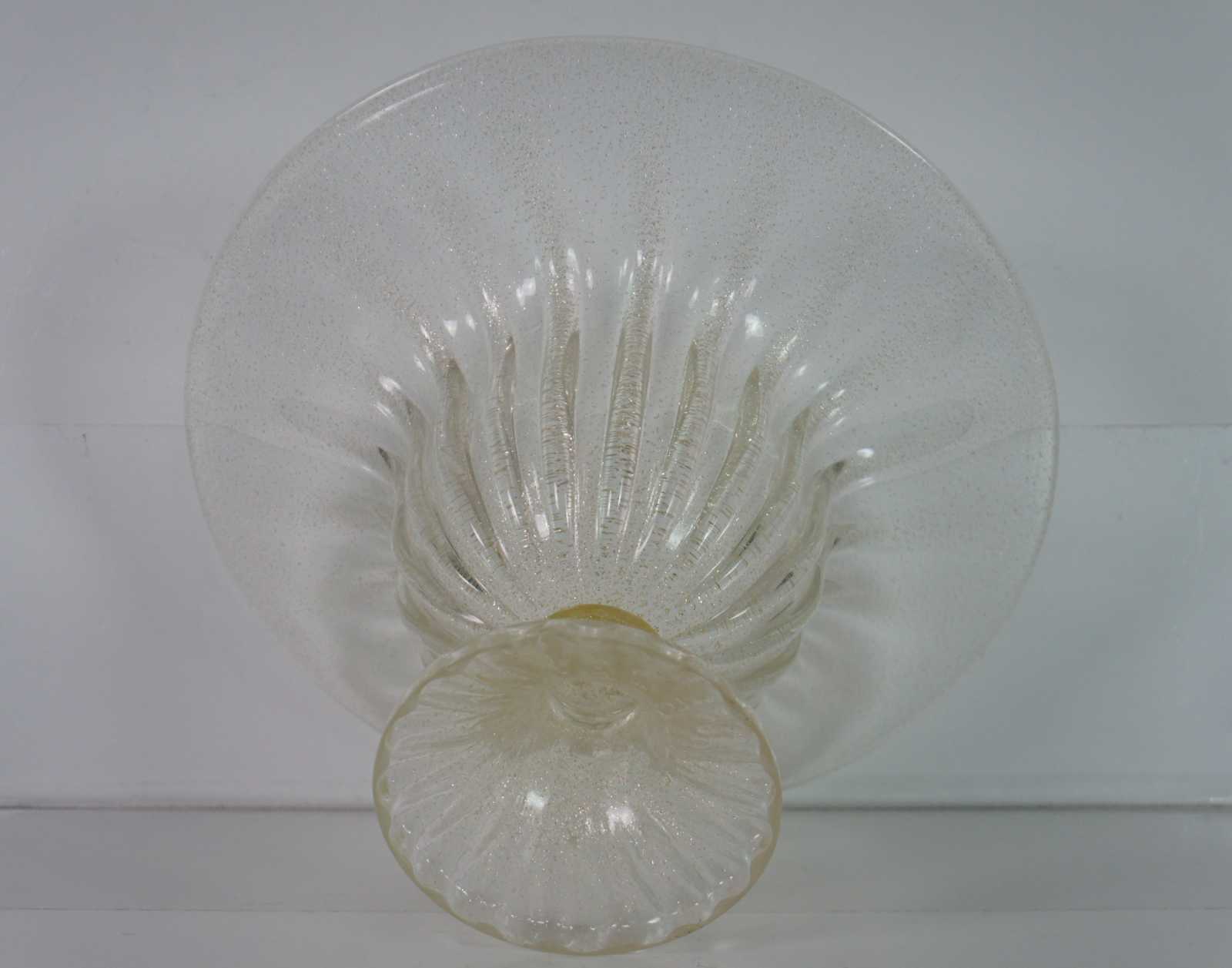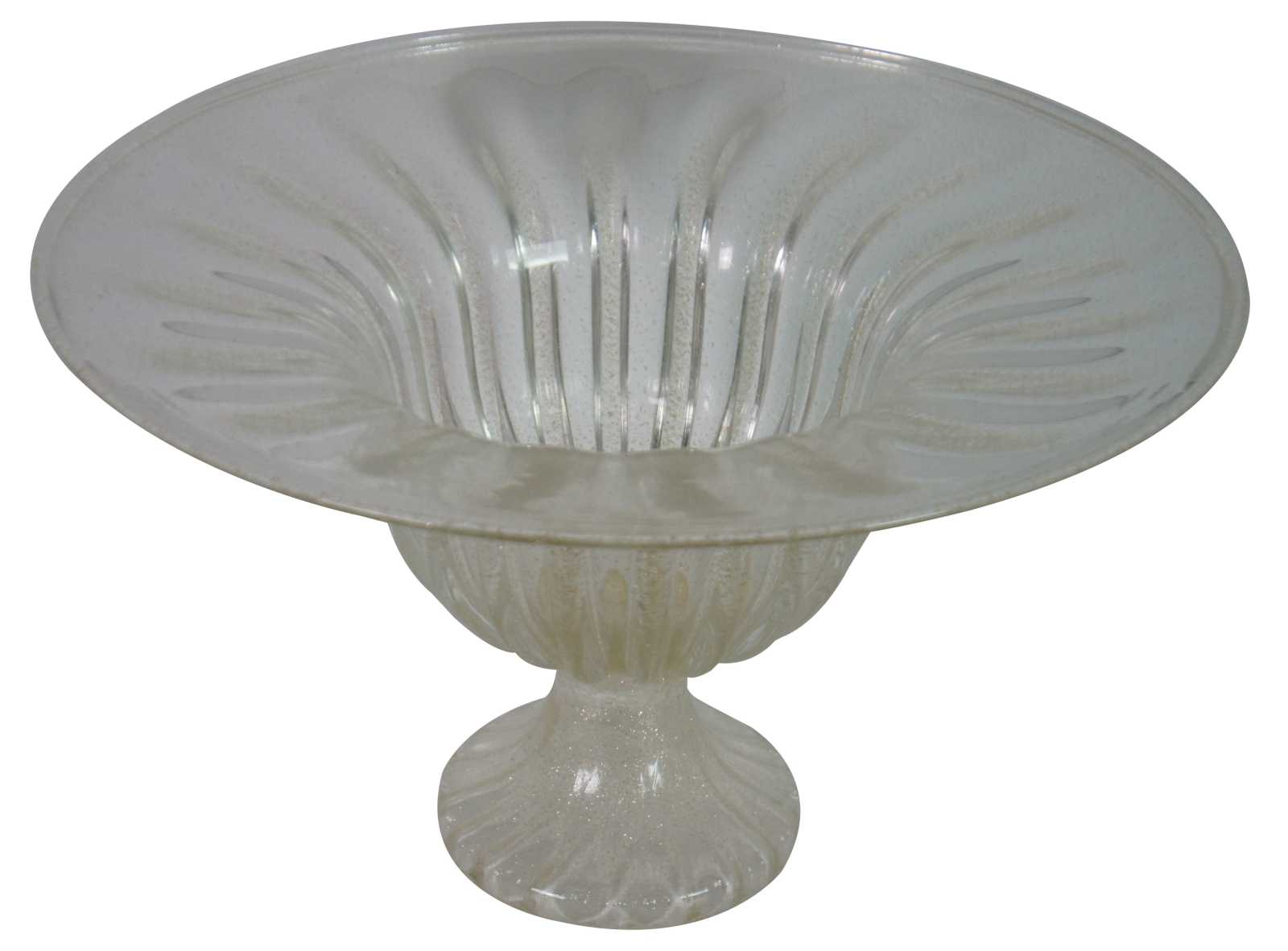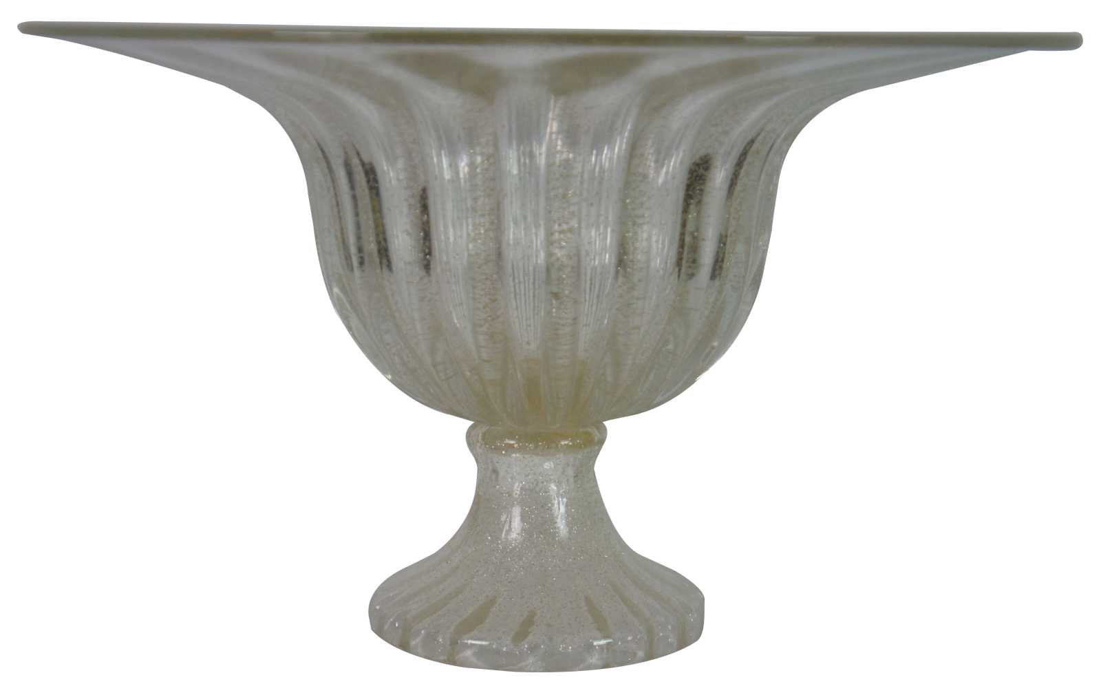 Early 20th century Murano glass footed pedestal centerpiece bowl infused with 24K gold flakes, from Baker Furniture’s Barbara Barry Collection.