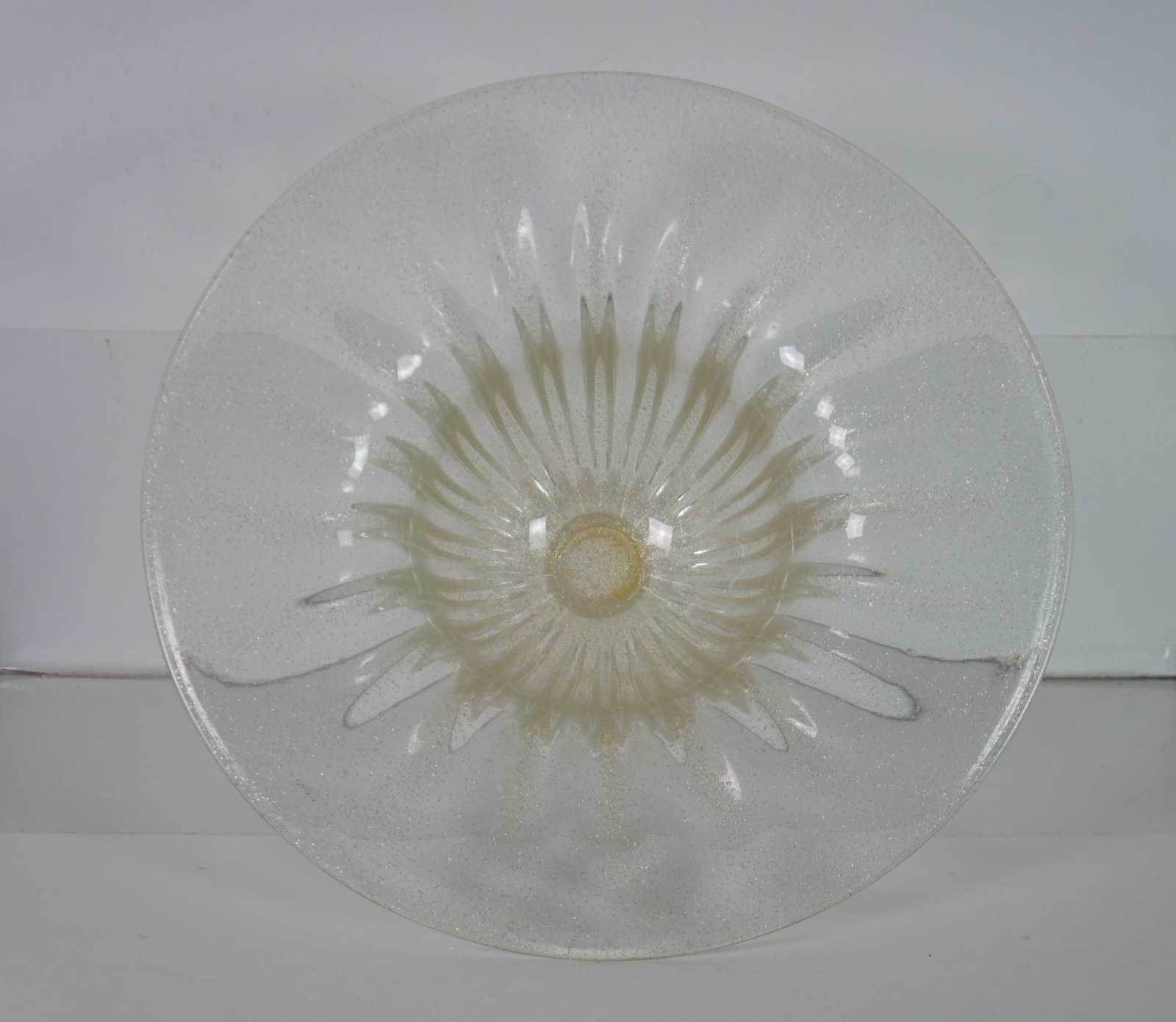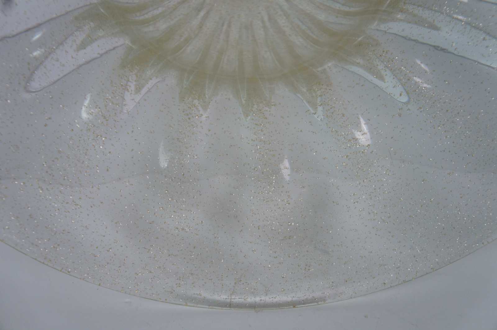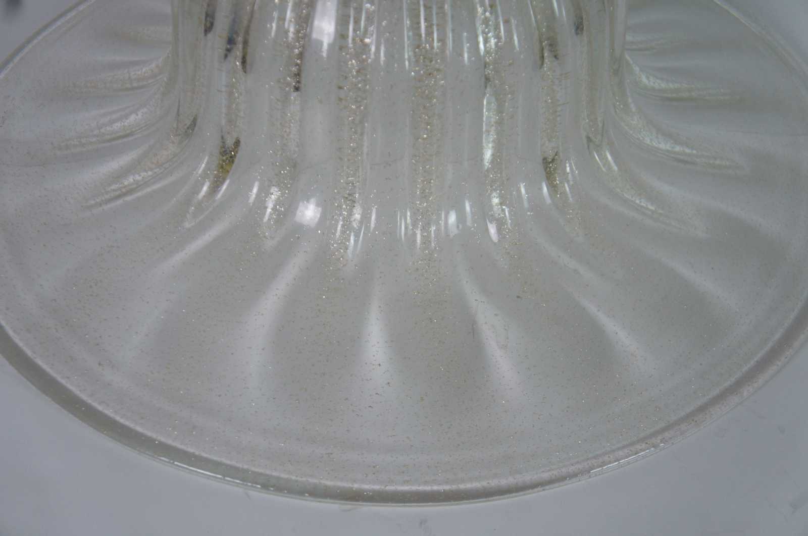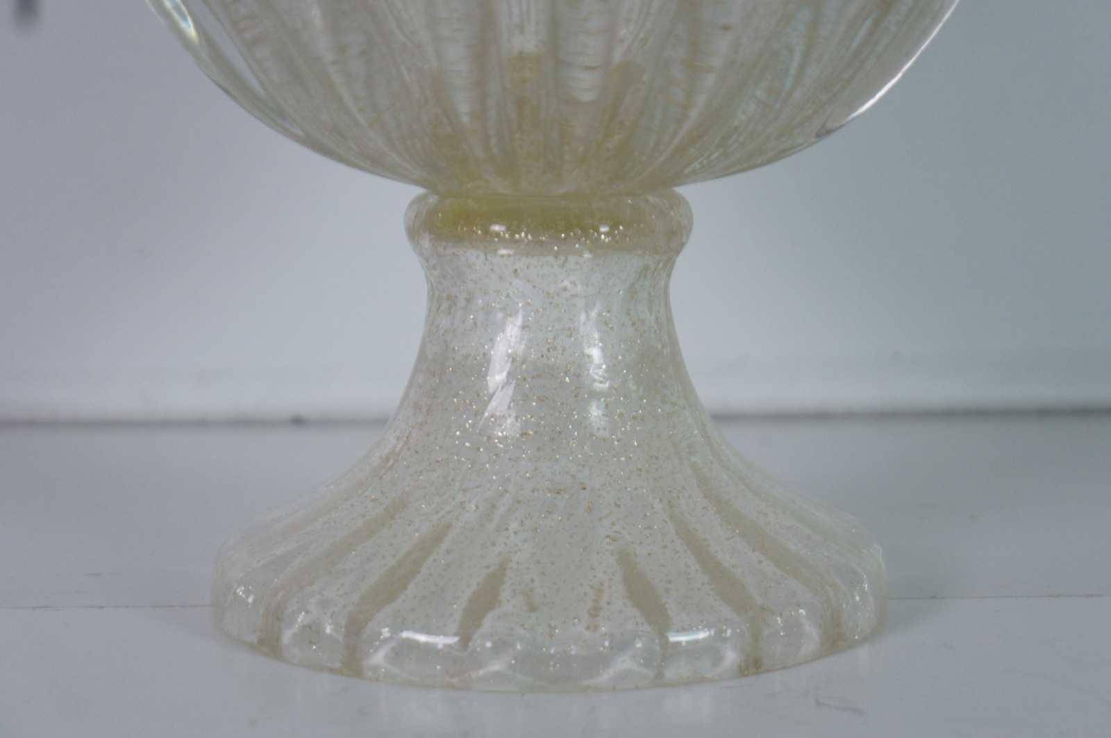 Early 20th century Murano glass footed pedestal centerpiece bowl infused with 24K gold flakes, from Baker Furniture’s Barbara Barry Collection.
