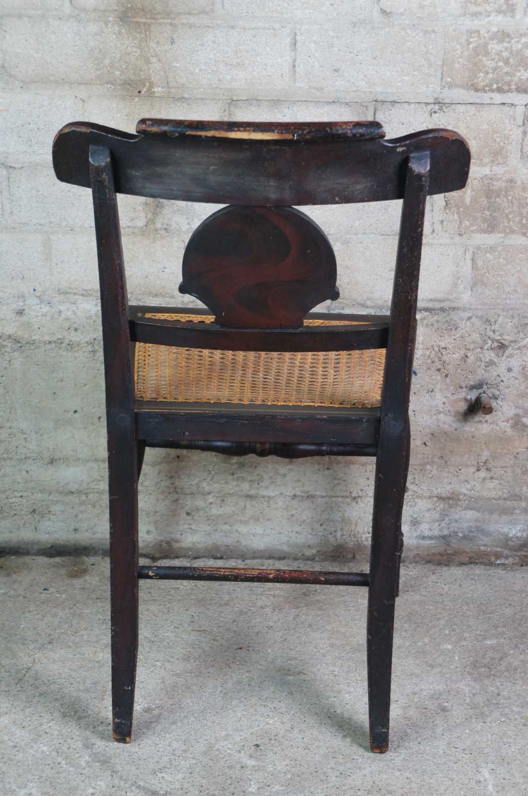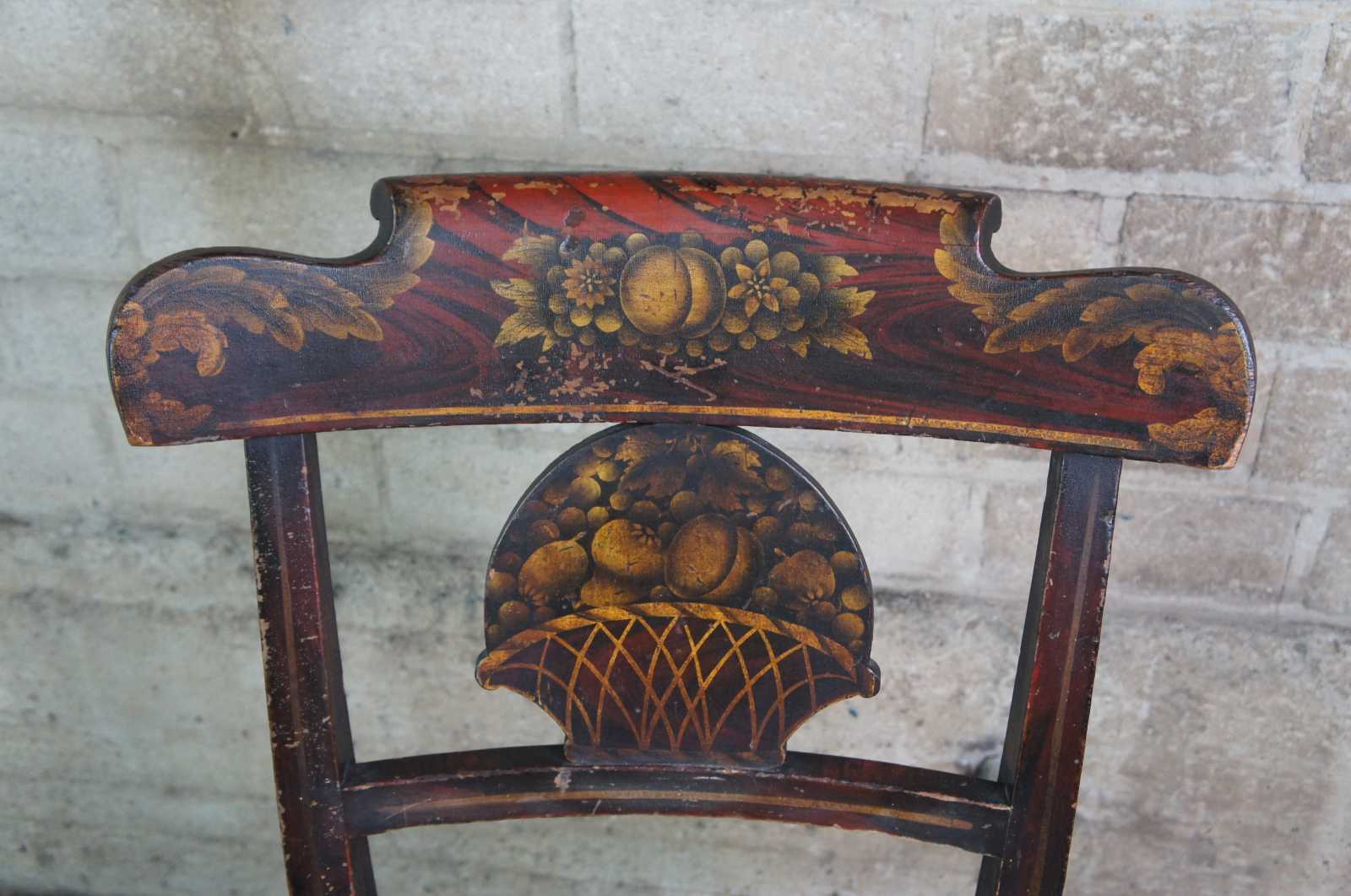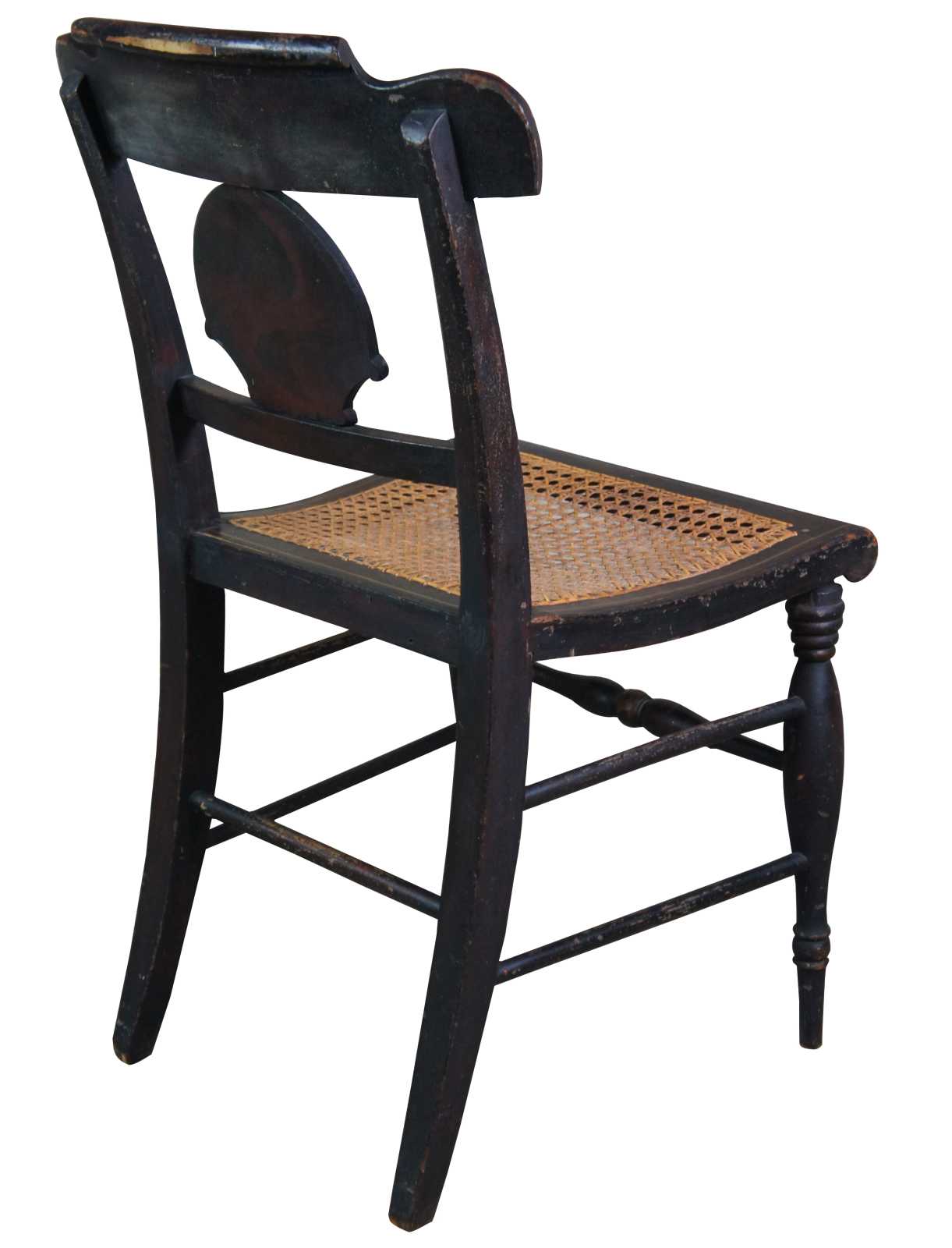Mid 19th century stenciled Hitchcock dining chair featuring a fruit basket shaped back splat and cane seat.