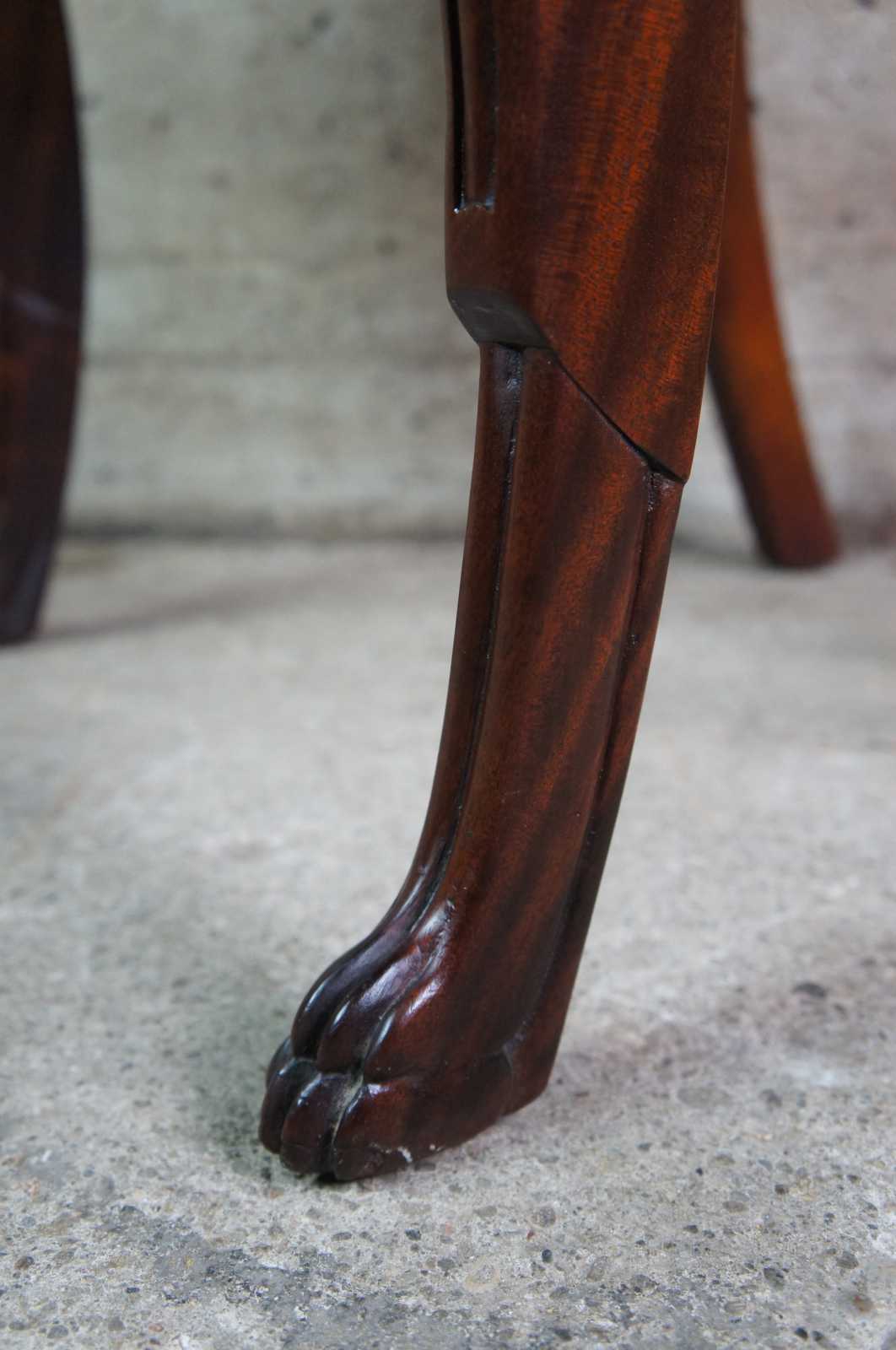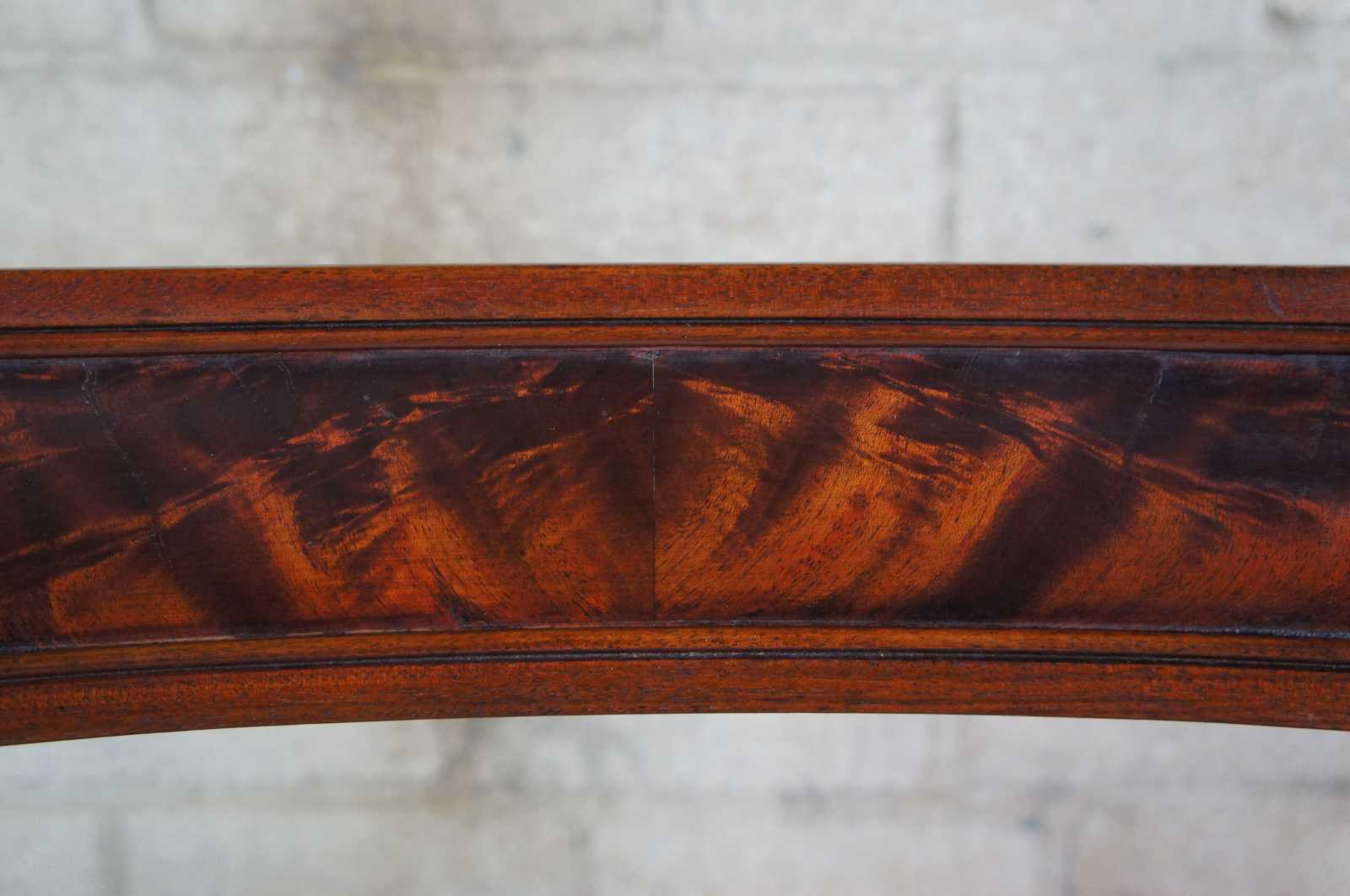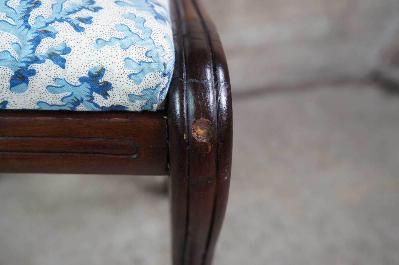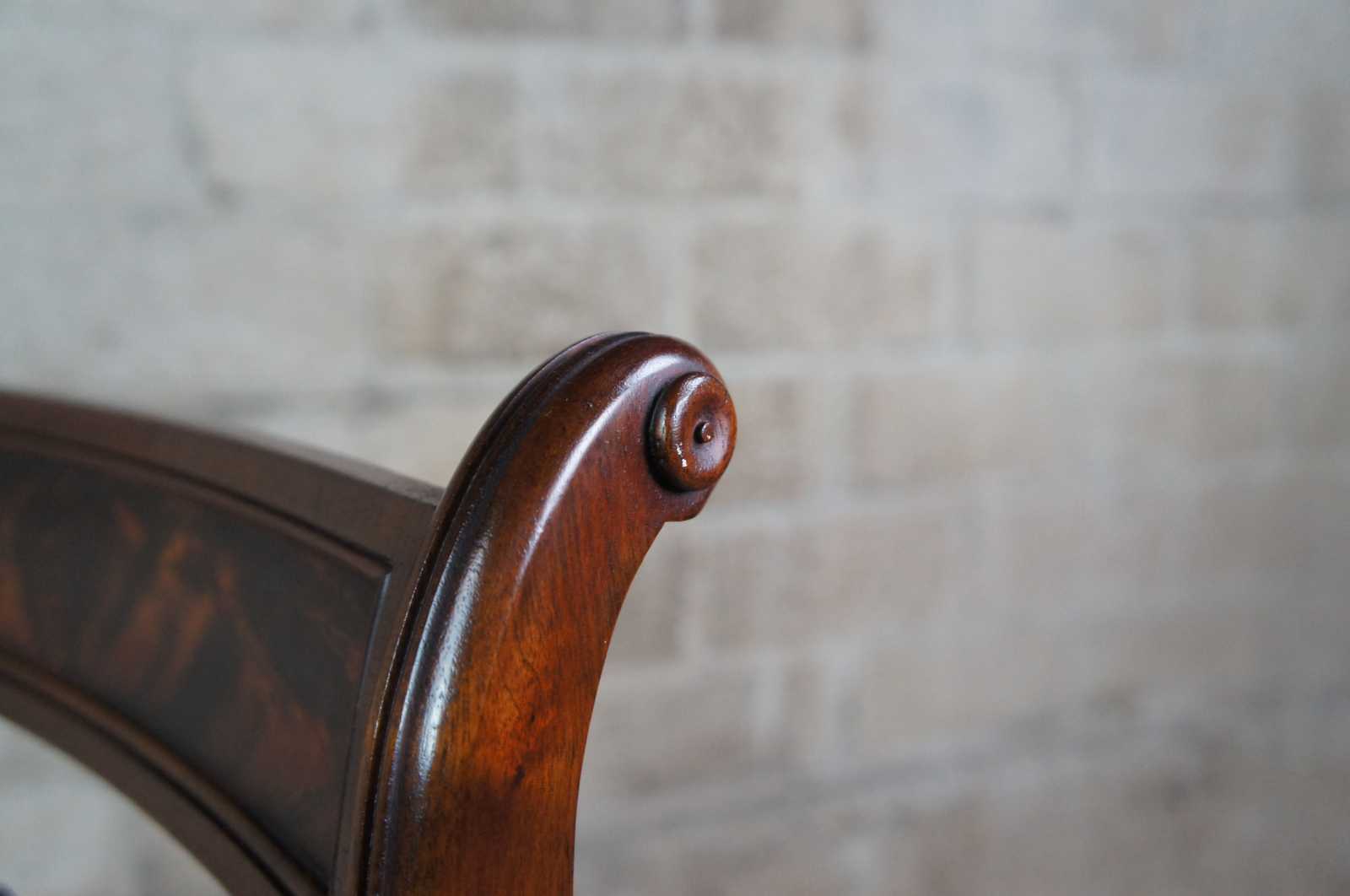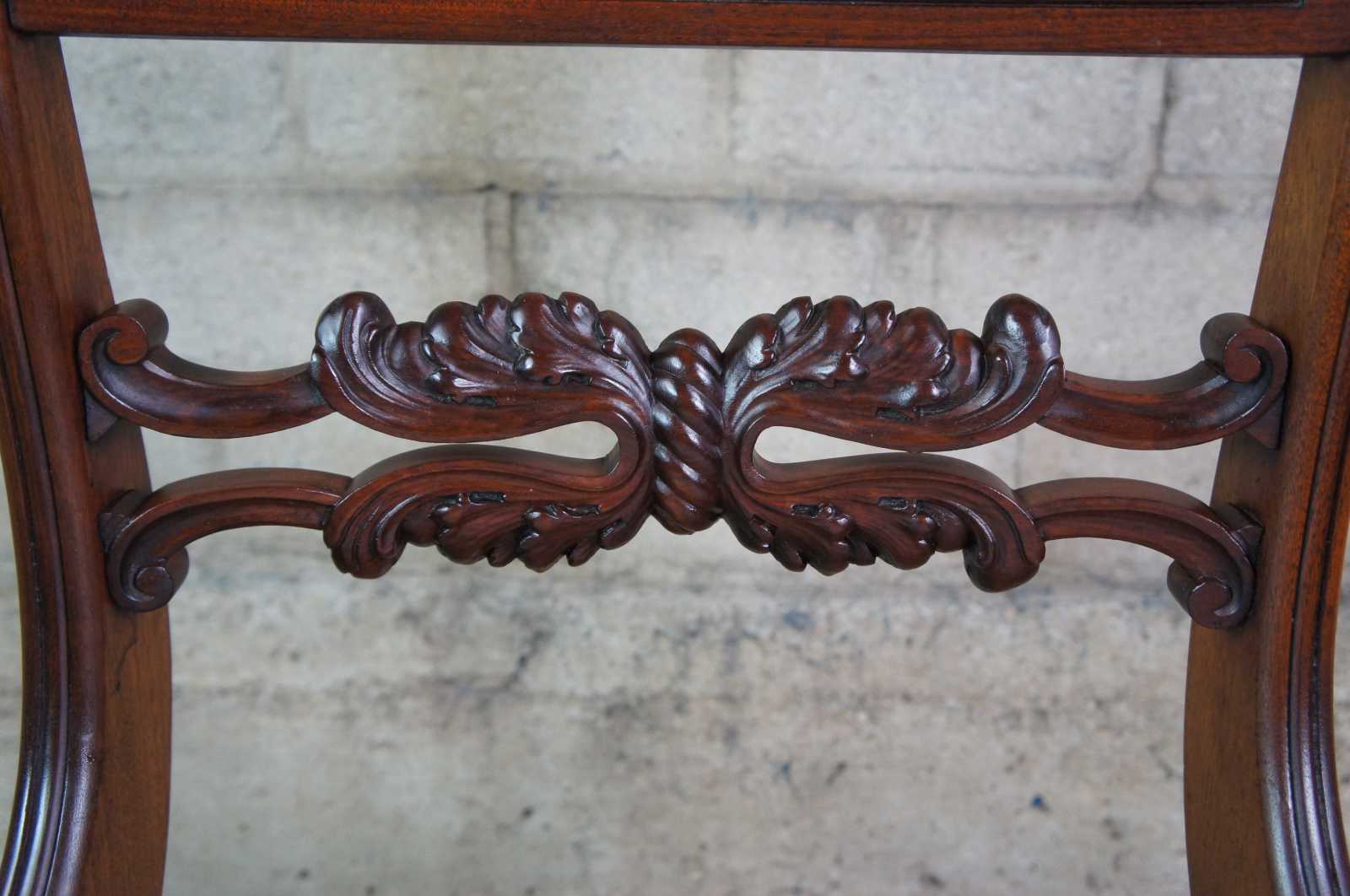 Antique Duncan Phyfe dining, parlor or vanity chair. Made of flamed mahogany featuring Klismos form with carved serpentine back support, fluted accents, and paw feet.