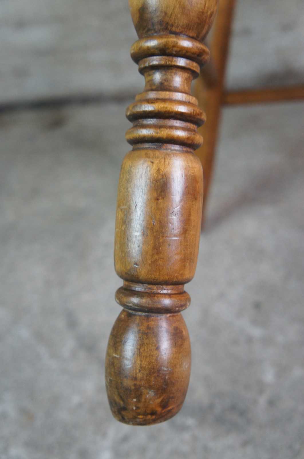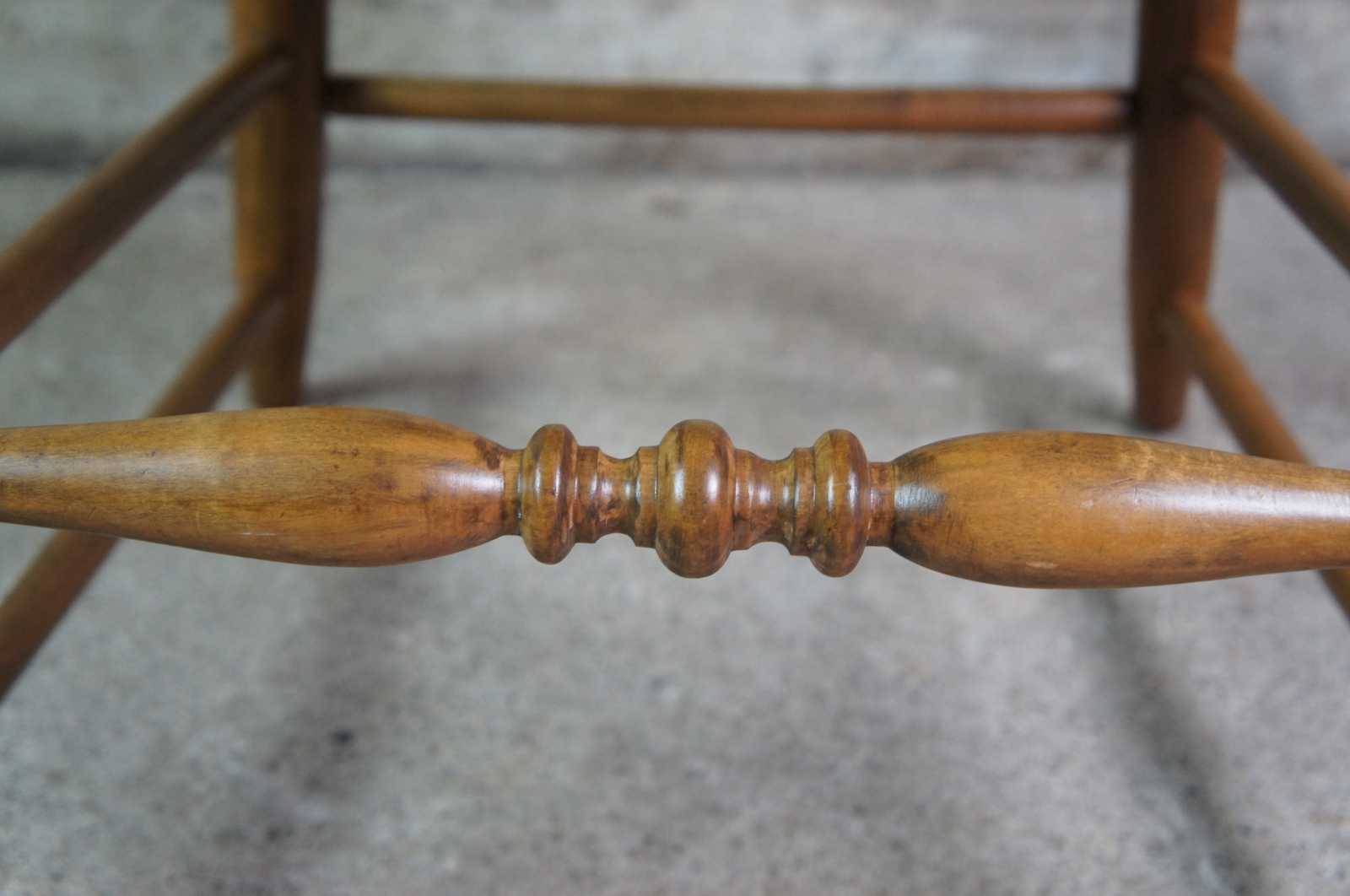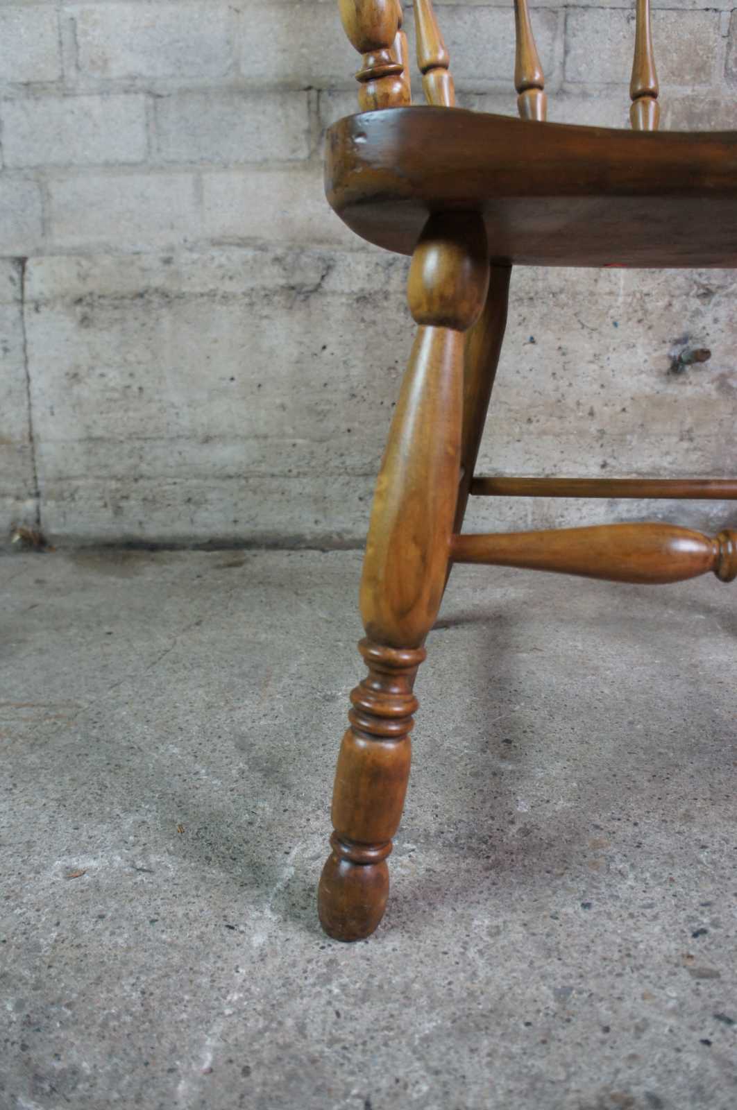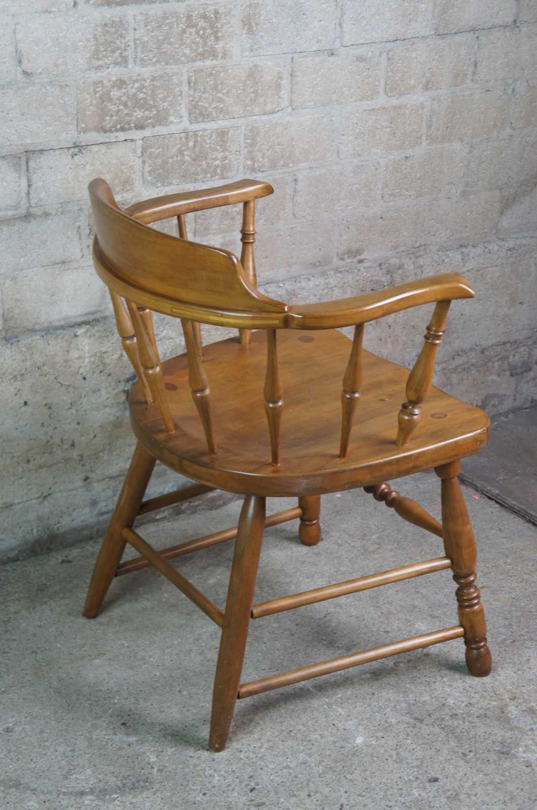 The Caboose Chair was first designed for the Union Pacific Railroad and was put into every caboose on the train. Specifically made to withstand abuse with its contoured saddle seat design, this is one of the strongest chairs made. These chairs are made by highly skilled craftsman with dedication and experience. These chairs also saw service in the old firehouse's and saloons of the day. This modern example is Made of maple featuring barrel form with turned posts and slats, circa 1960s.