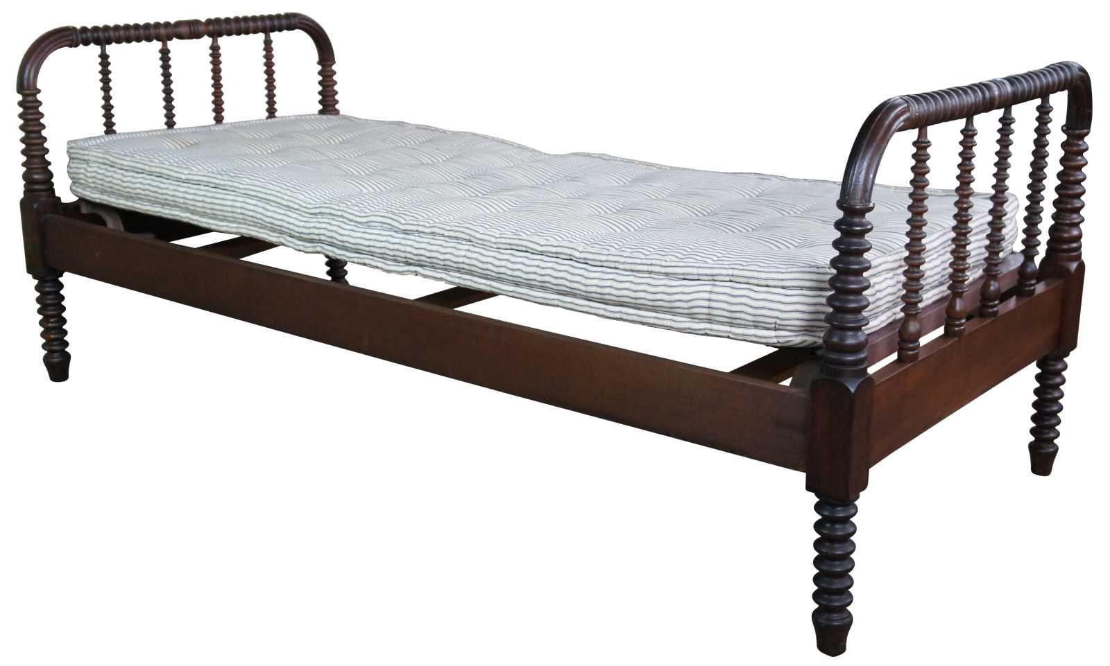 American country bed jenny lind bed. Made from walnut with spool turned posts and spindles.. Includes custom spings and mattress.