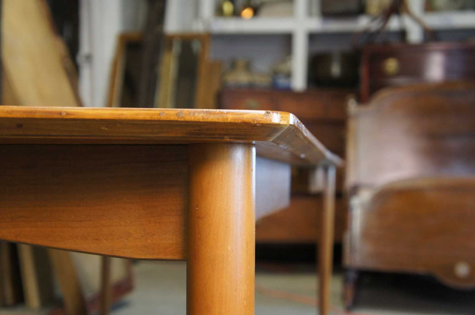 Good condition, wear and distressing commensurate with age and use, fading to table, edge wear / finish loss, scuffing, leaves have original finish.