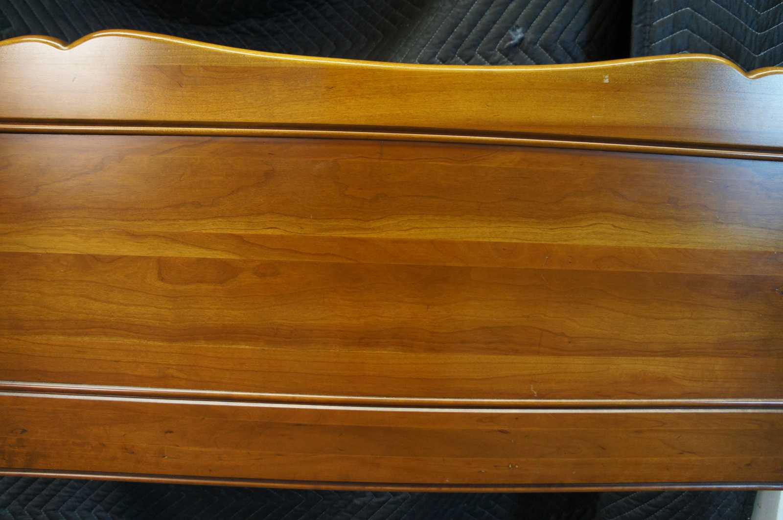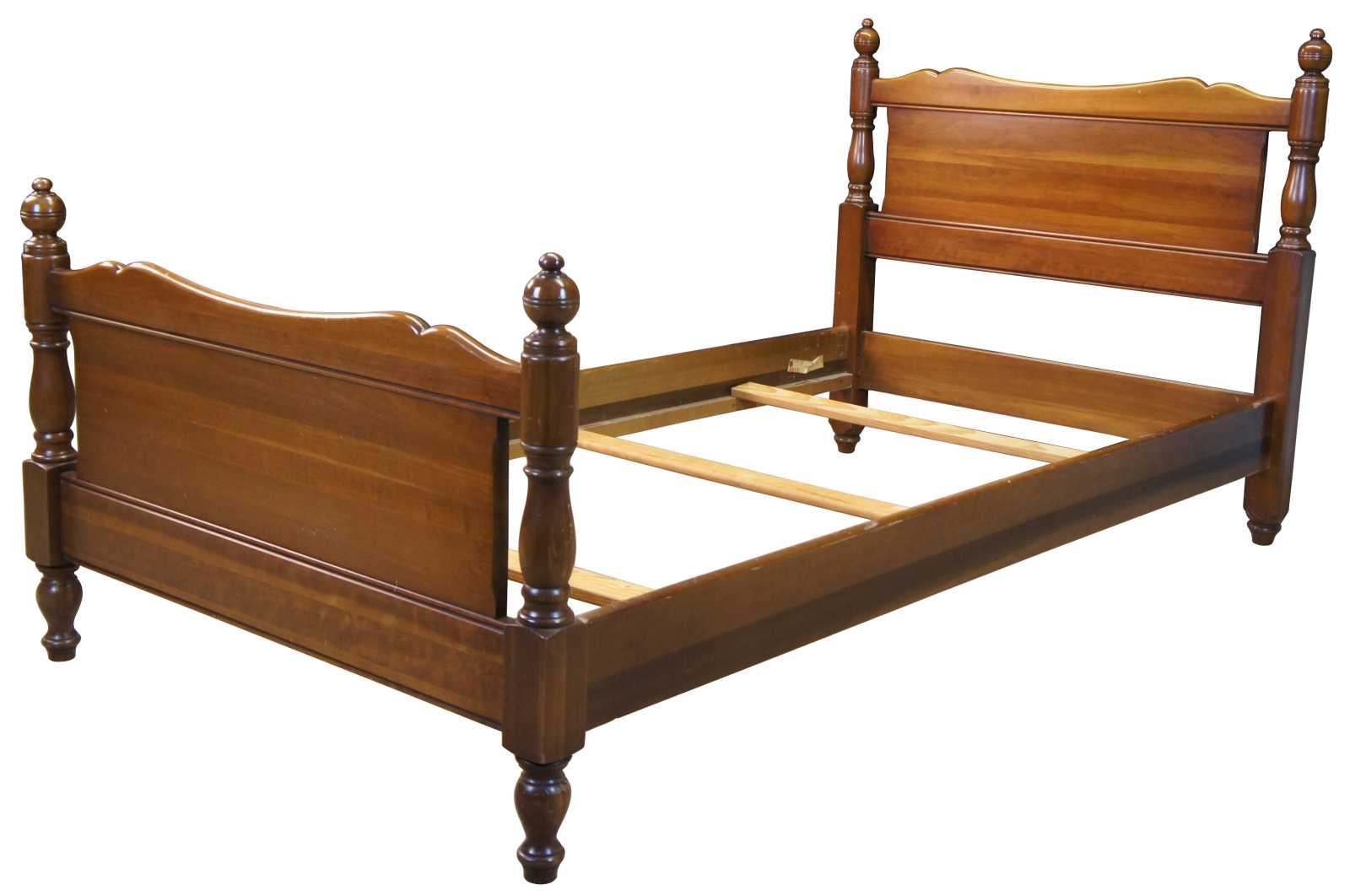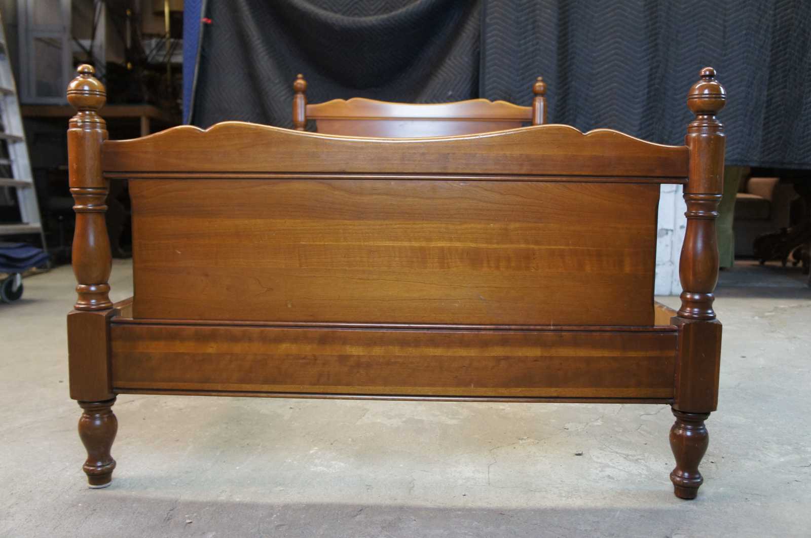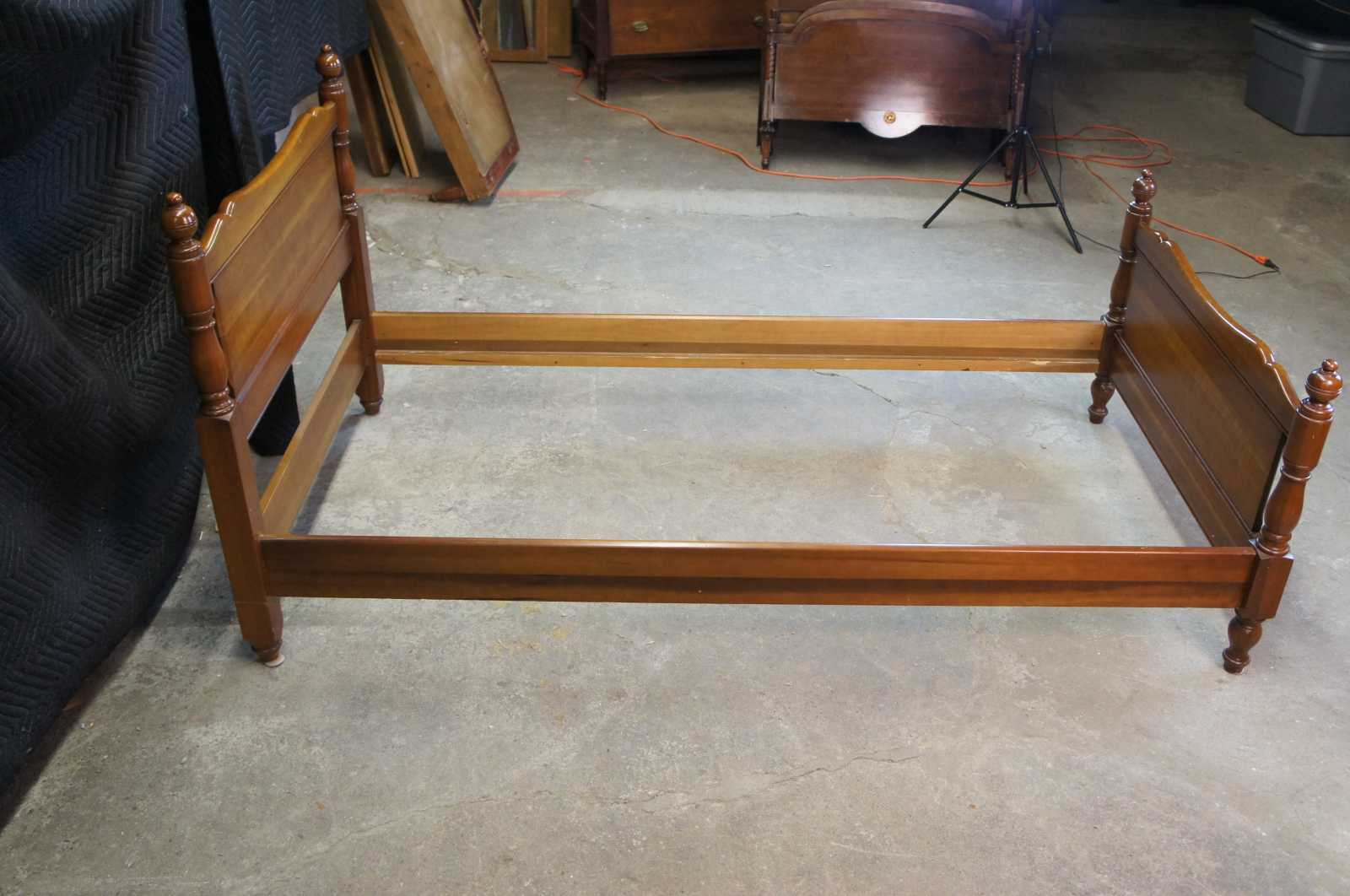 Pair of mid century Georgetown Galleries early American style solid cherry twin bed frames sold by Woodward & Lothrop department stores. Circa 1946 - 1954. Item 340-572.