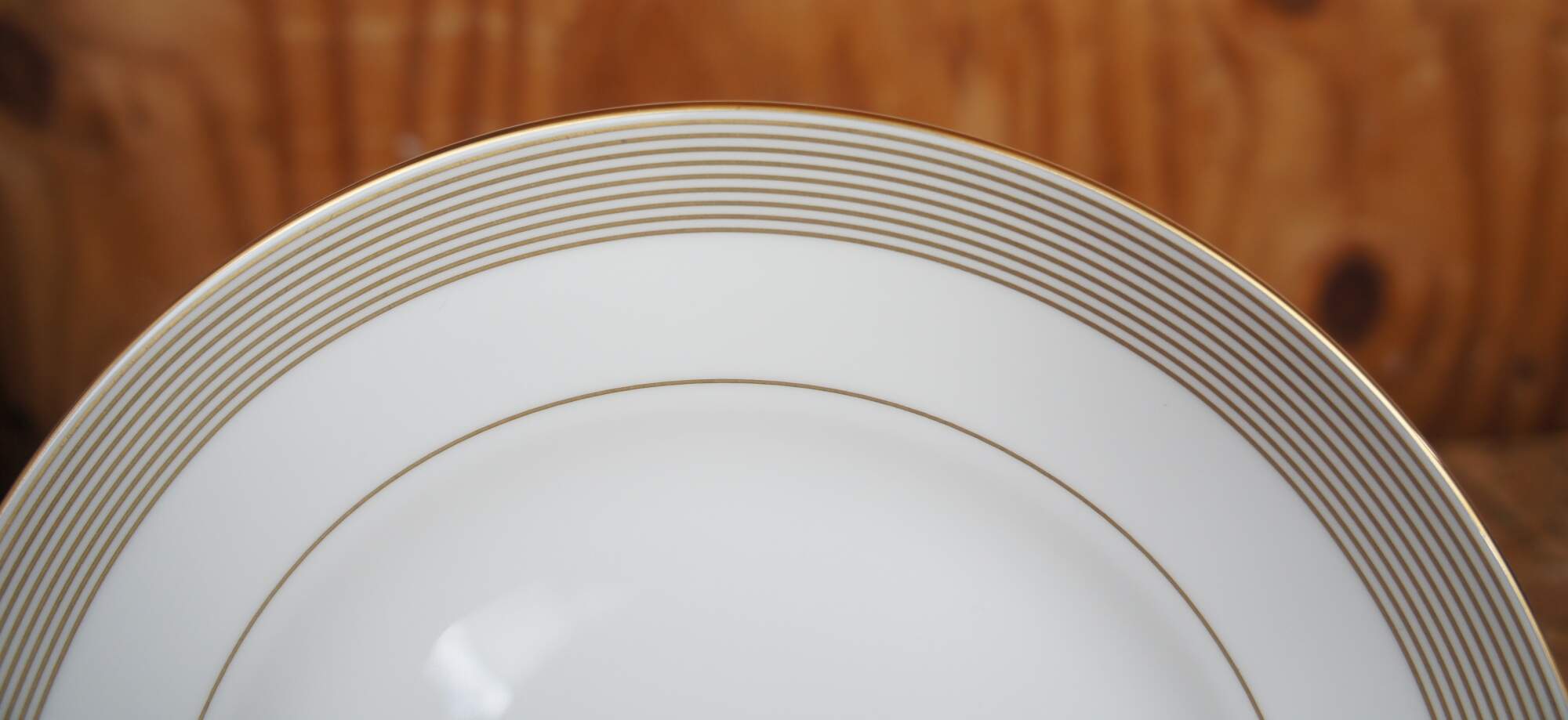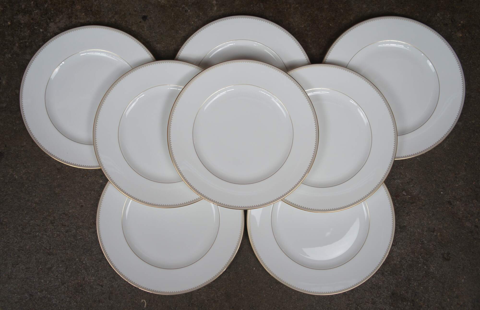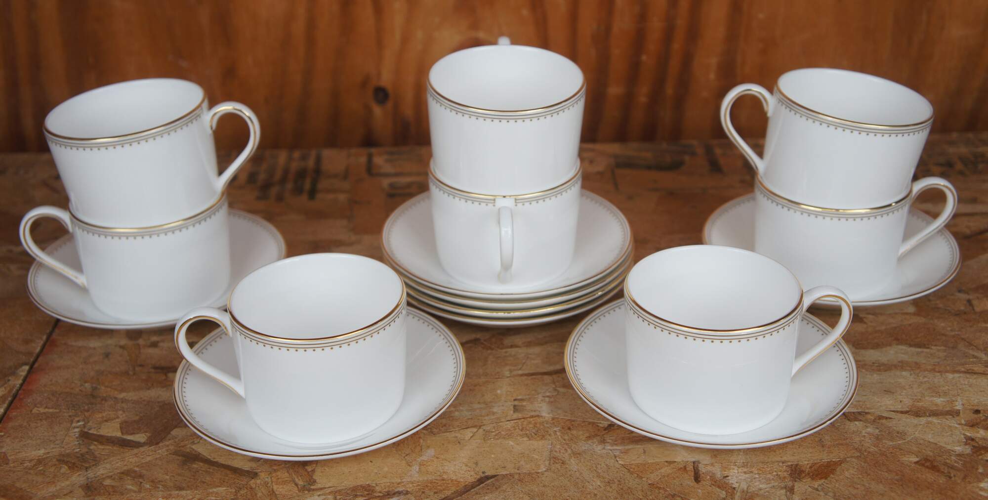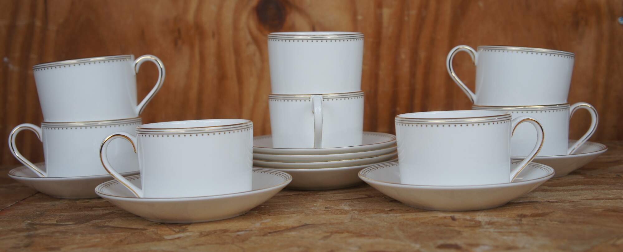 Beautiful like new 40 piece china set, ‘Golden Grosgrain’ pattern by Vera Wang from Wedgwood China. Set includes place setting for 8, tea/coffee cups, saucers, bread plates, salad plates and dinner plates.