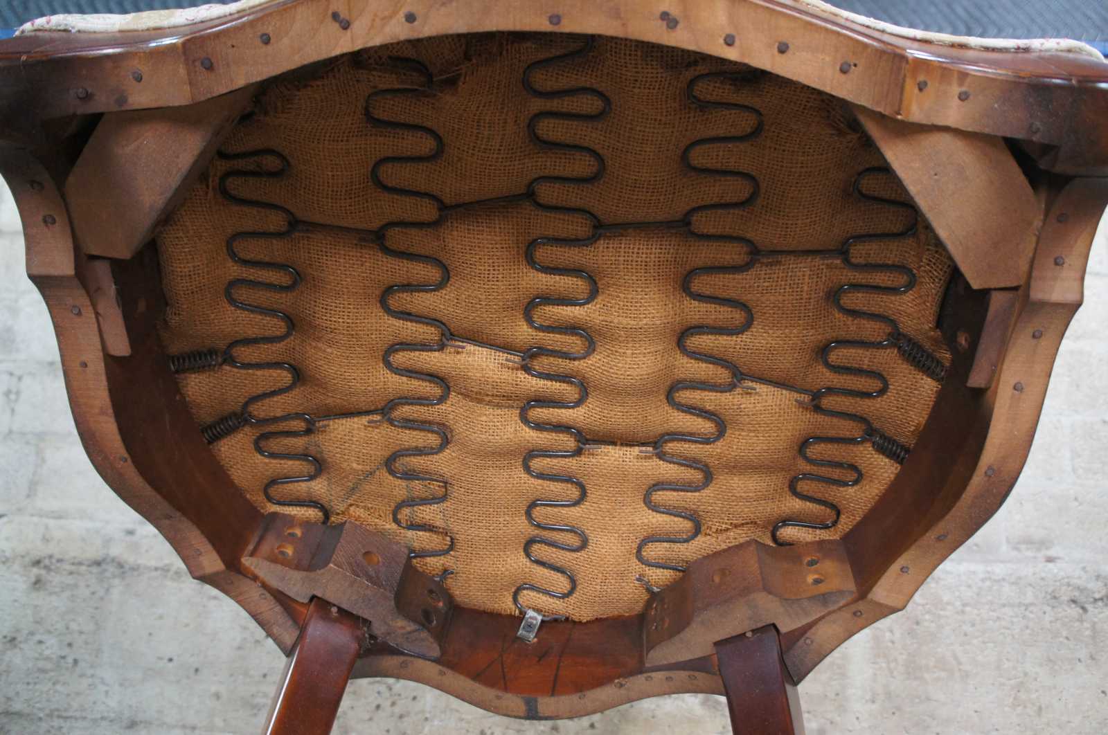 Six vintage Drexel cherry French Provincial dining chairs featuring an open Pretzel back with "S" scrolls, padded seats, carved aprons and cabriole legs.