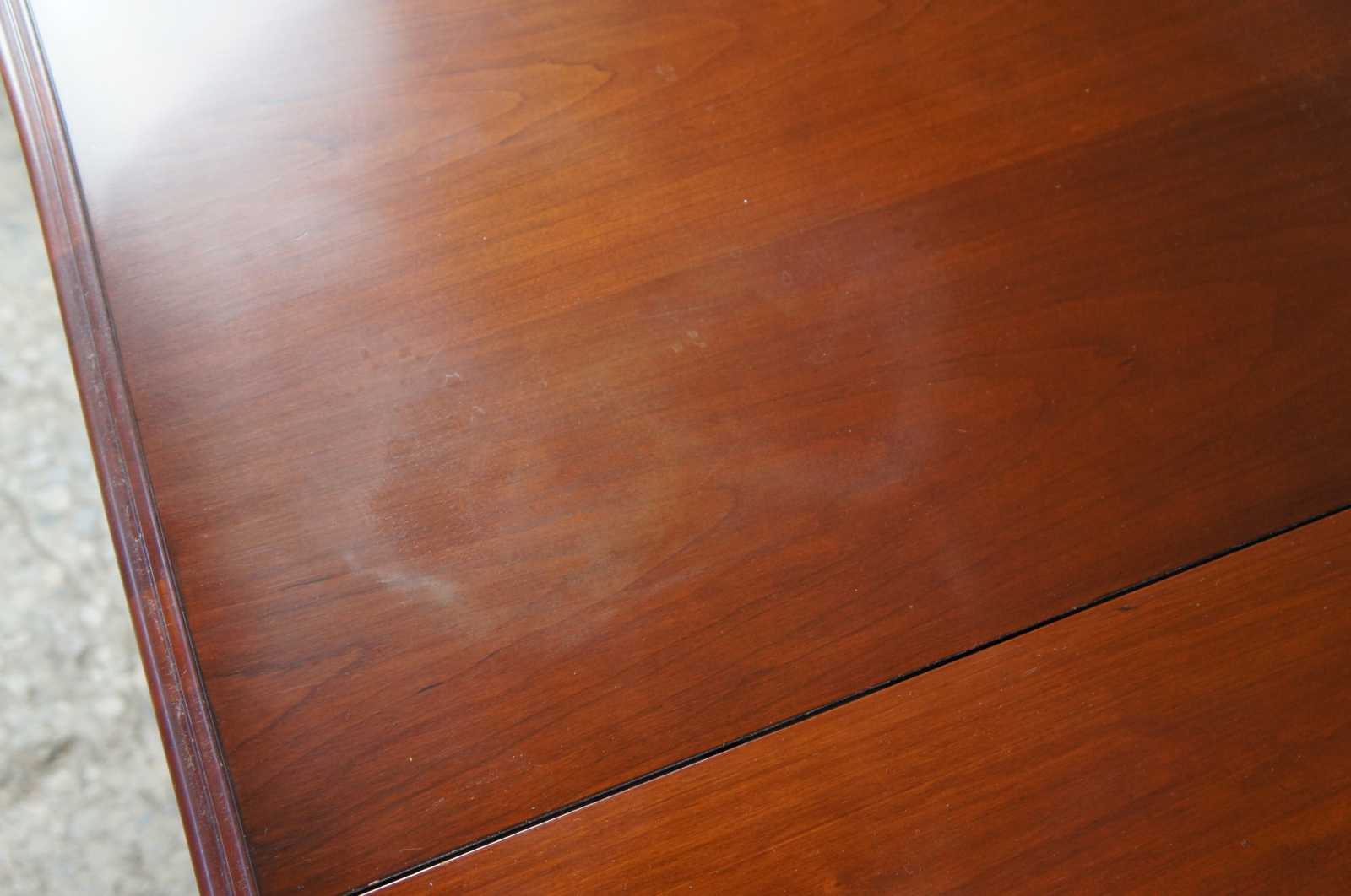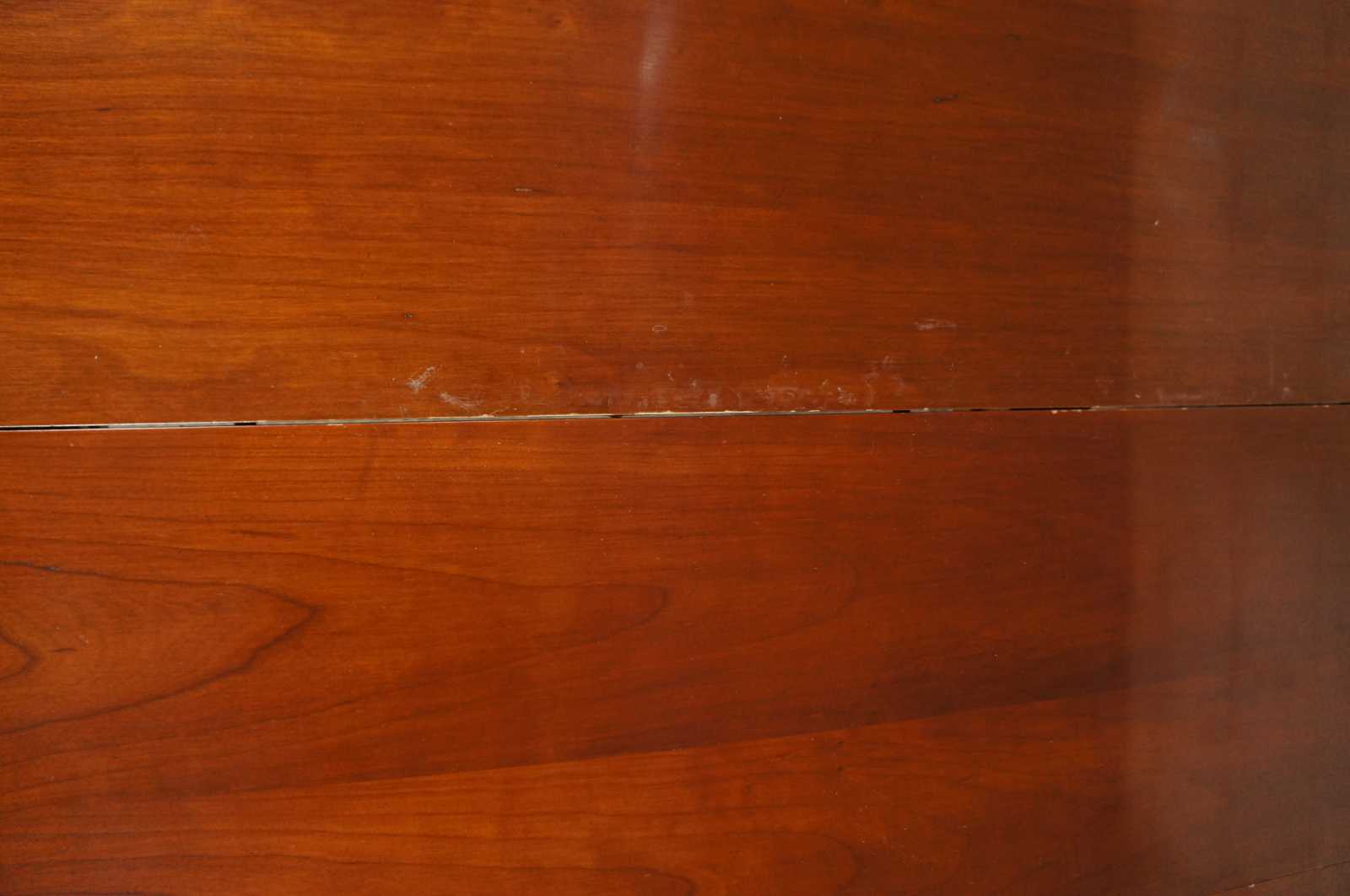 Fair condition, good overall, wear and distressing commensurate with age and use, gouges, marking, finish wear, heavy wear / clouding / spotting to top.