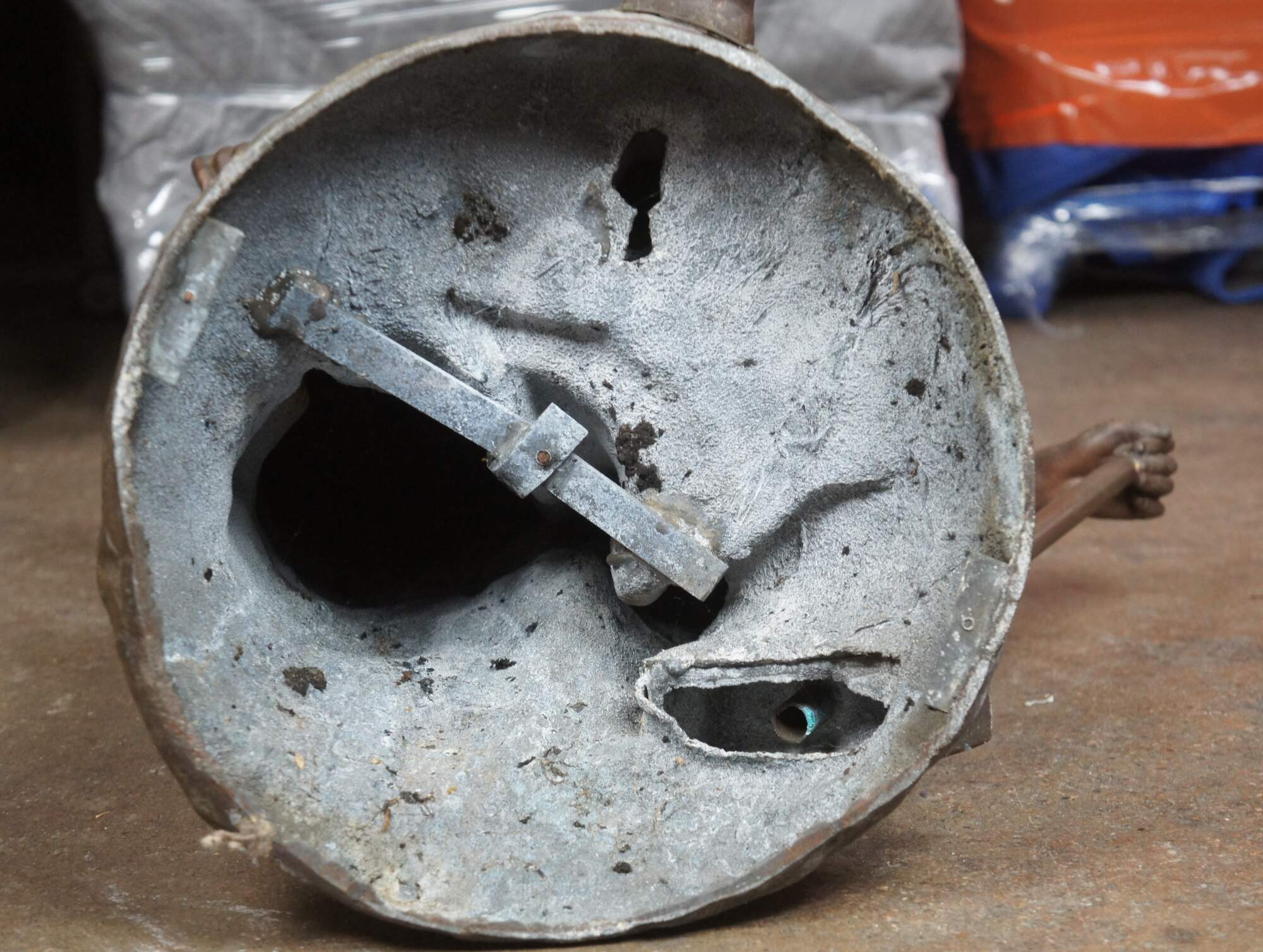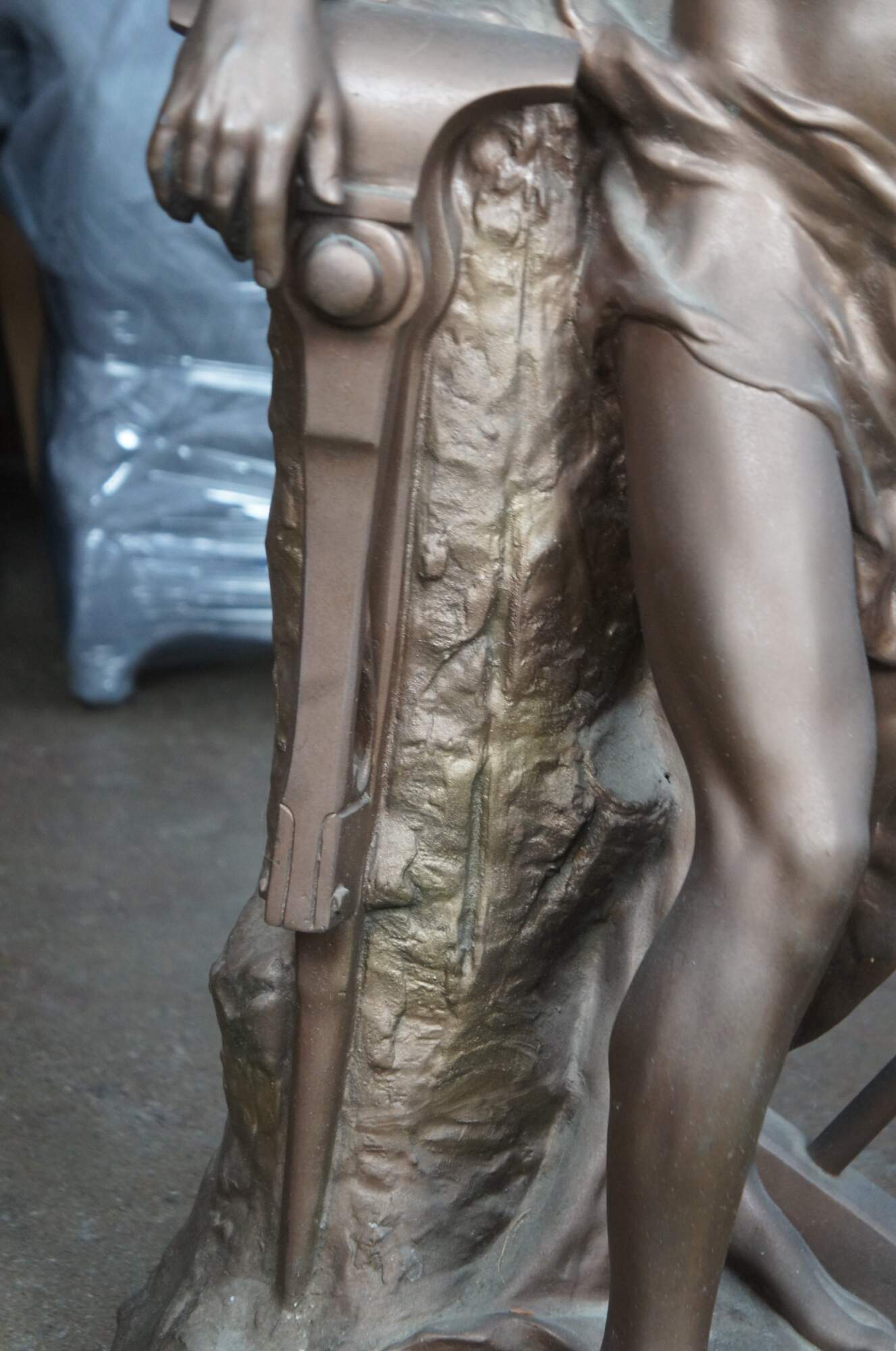 Antique French Bronze, circa 1920s. Features a French Blacksmith posing in the nude holding a hammer by his side. After Maurice Constant, French. Maurice Constant Favre was a French sculptor who was born in 1875.