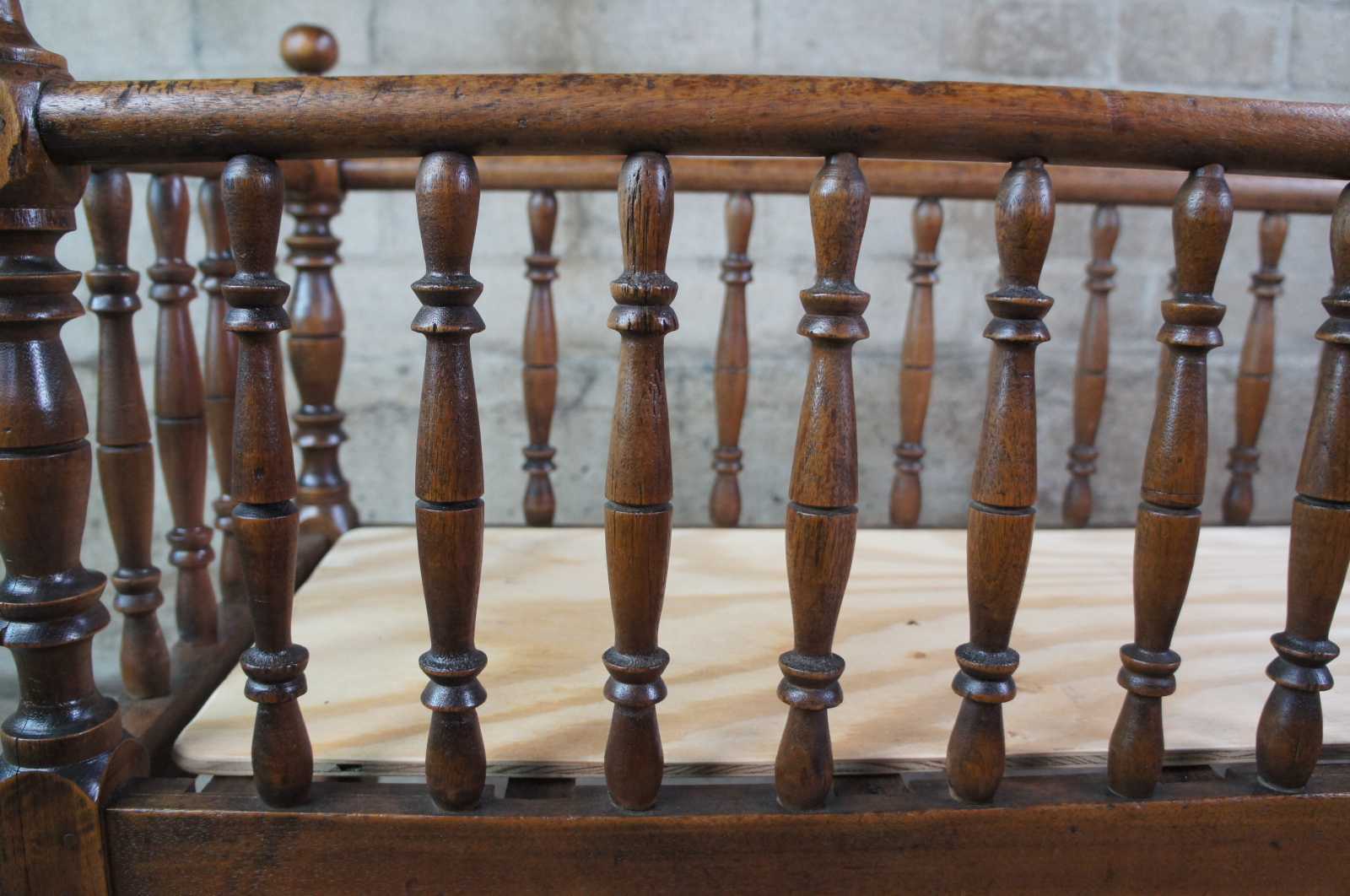 Antique hand turned splindle rocking cradle or bassinet. Made from walnut with a beuatiful shape and form.