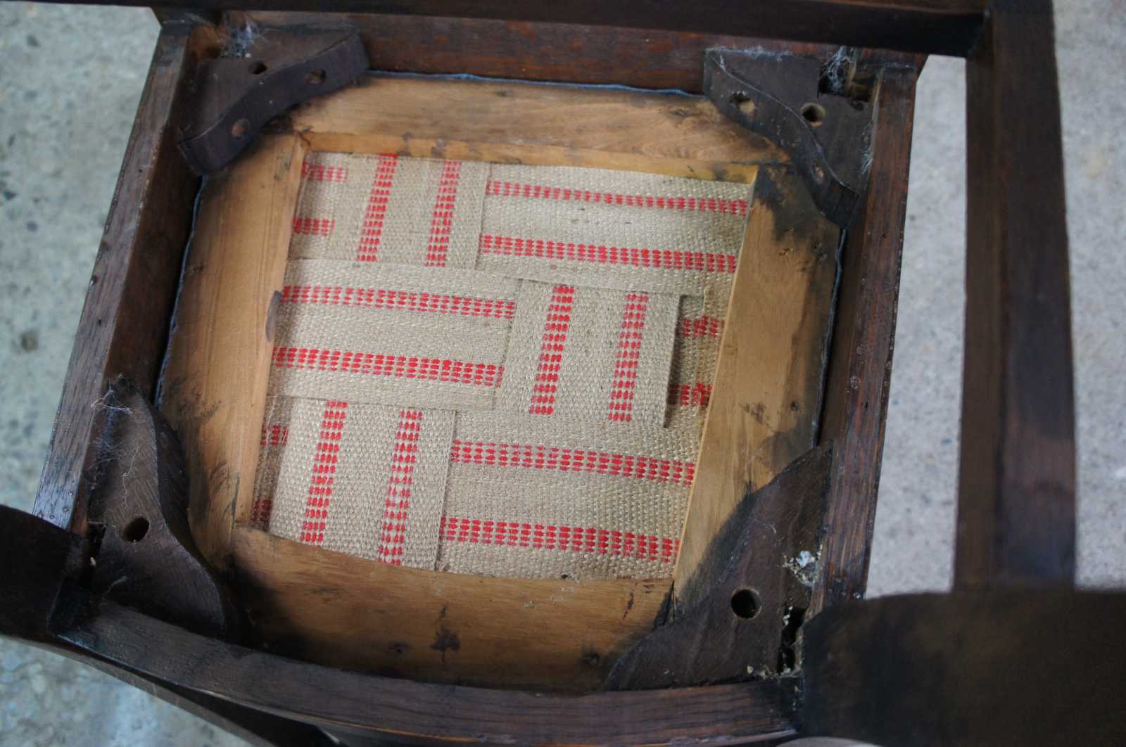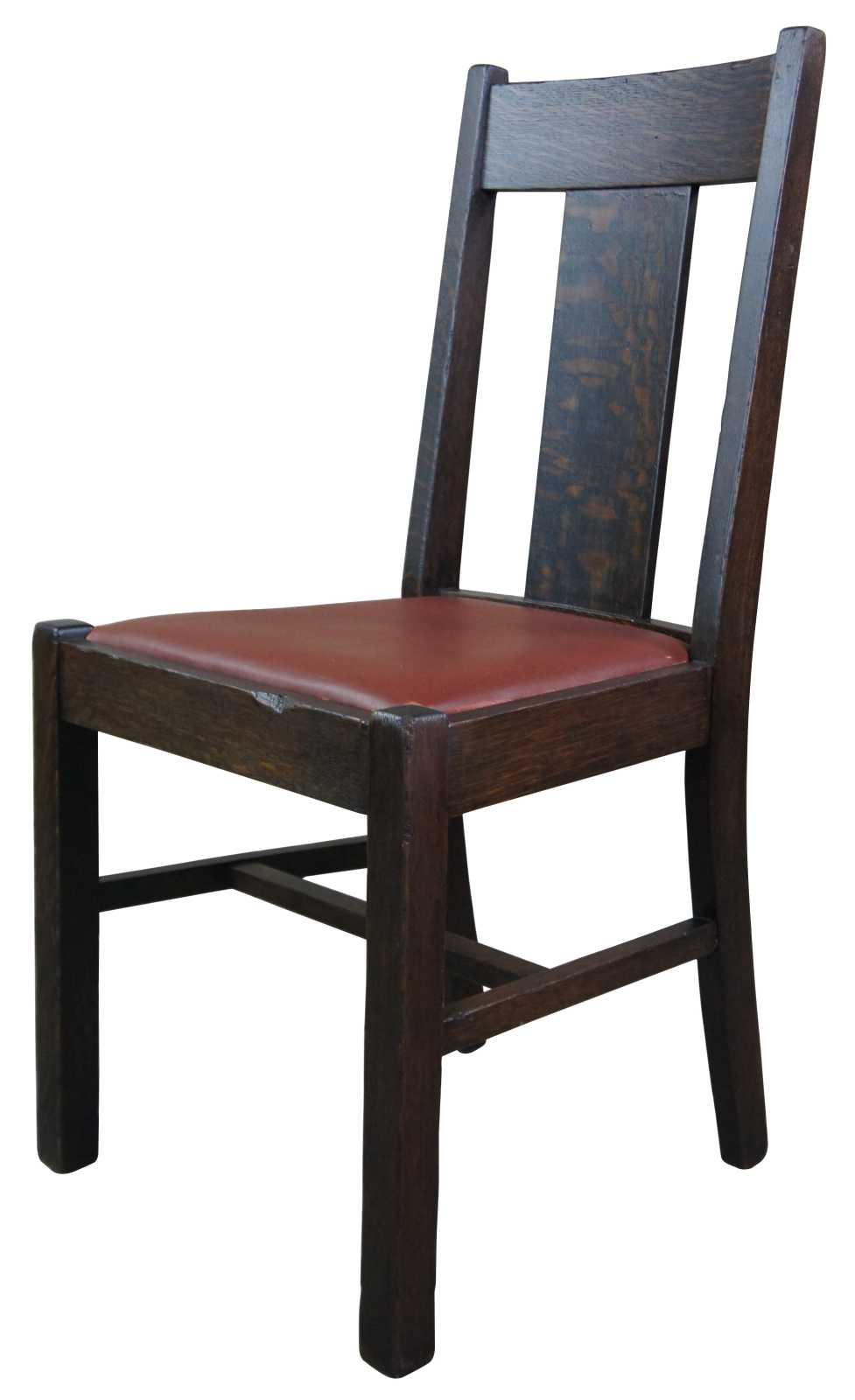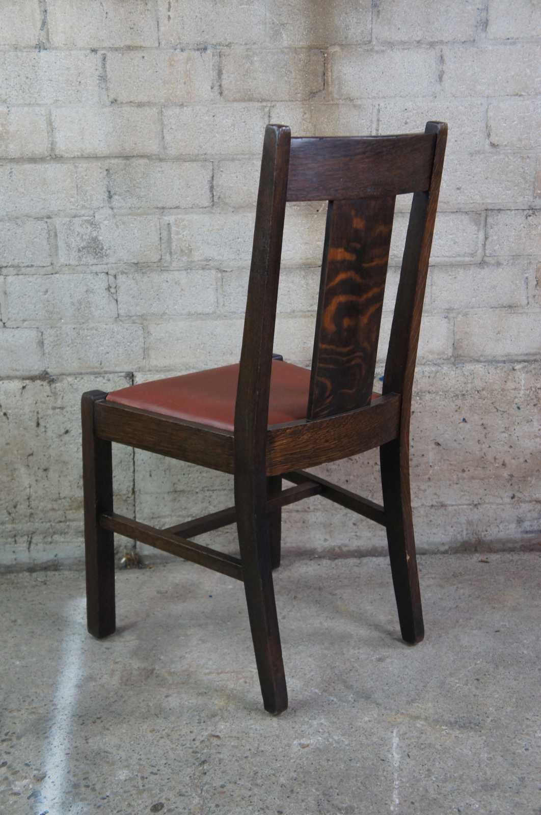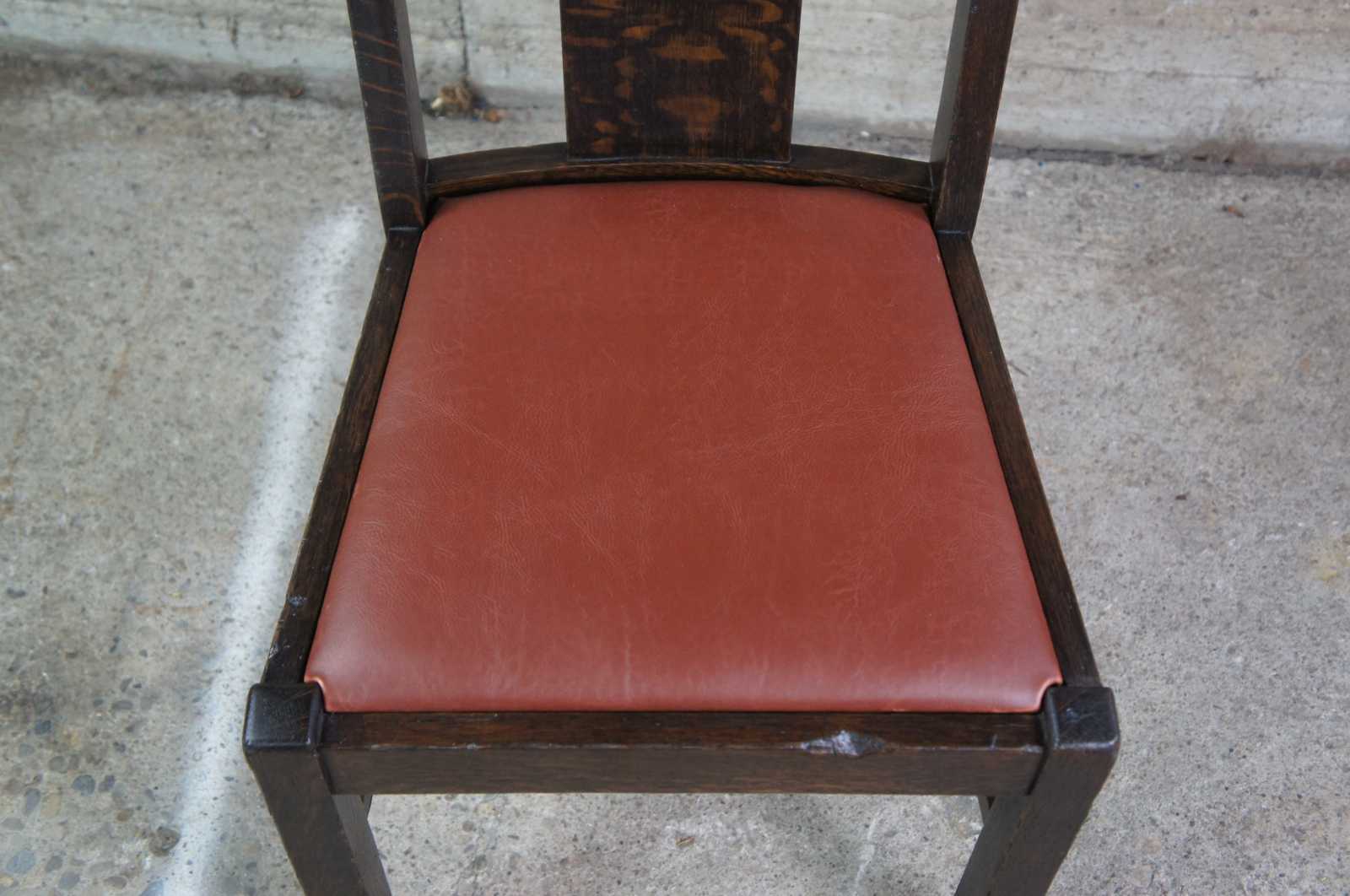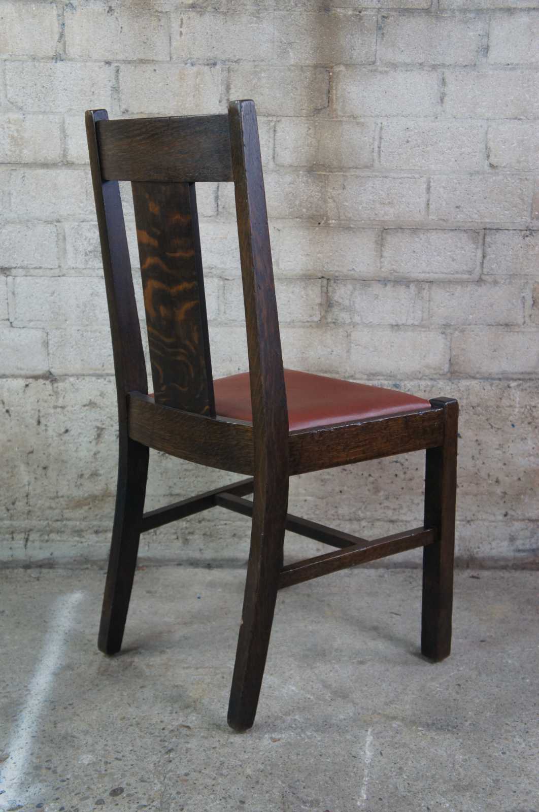 Antique arts and crafts oak library writing desk chair featuring vinyl seat.