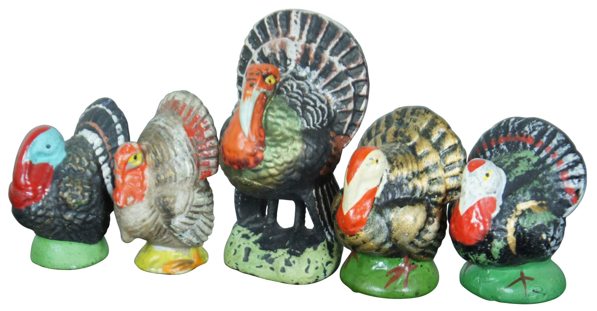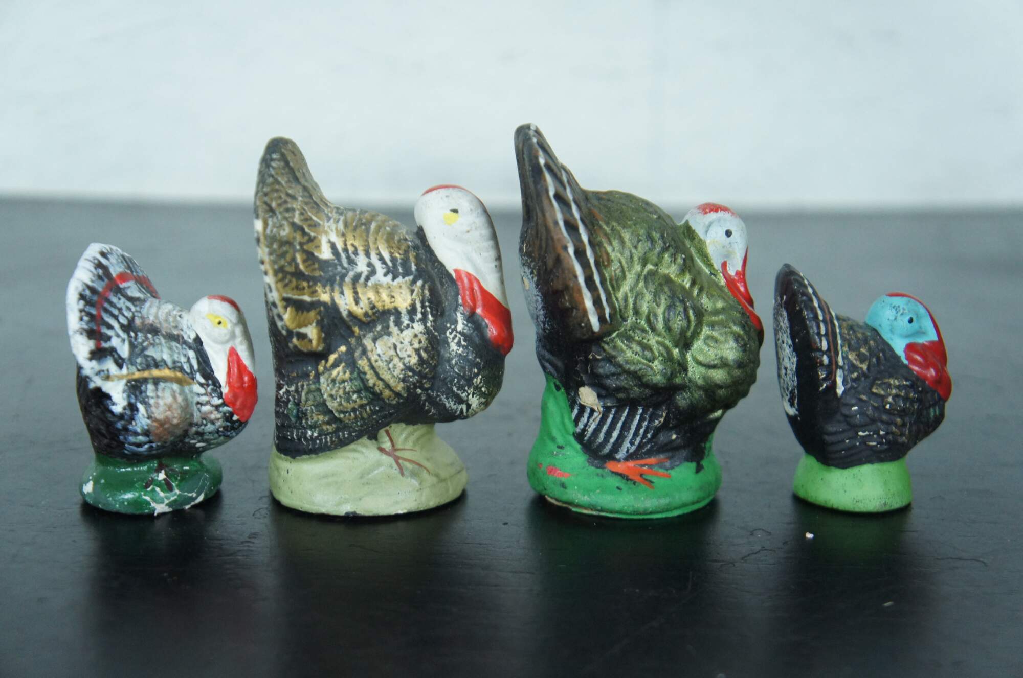 Lot of nine small antique/vintage Thanksgiving turkey shaped candy containers, seven composition and two ceramic; made in Japan.