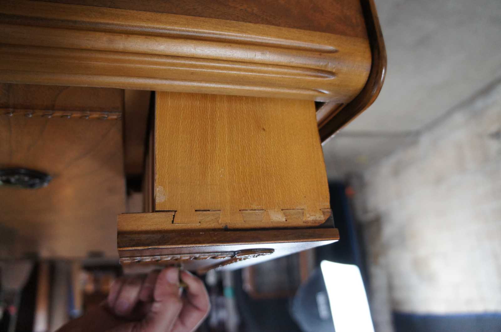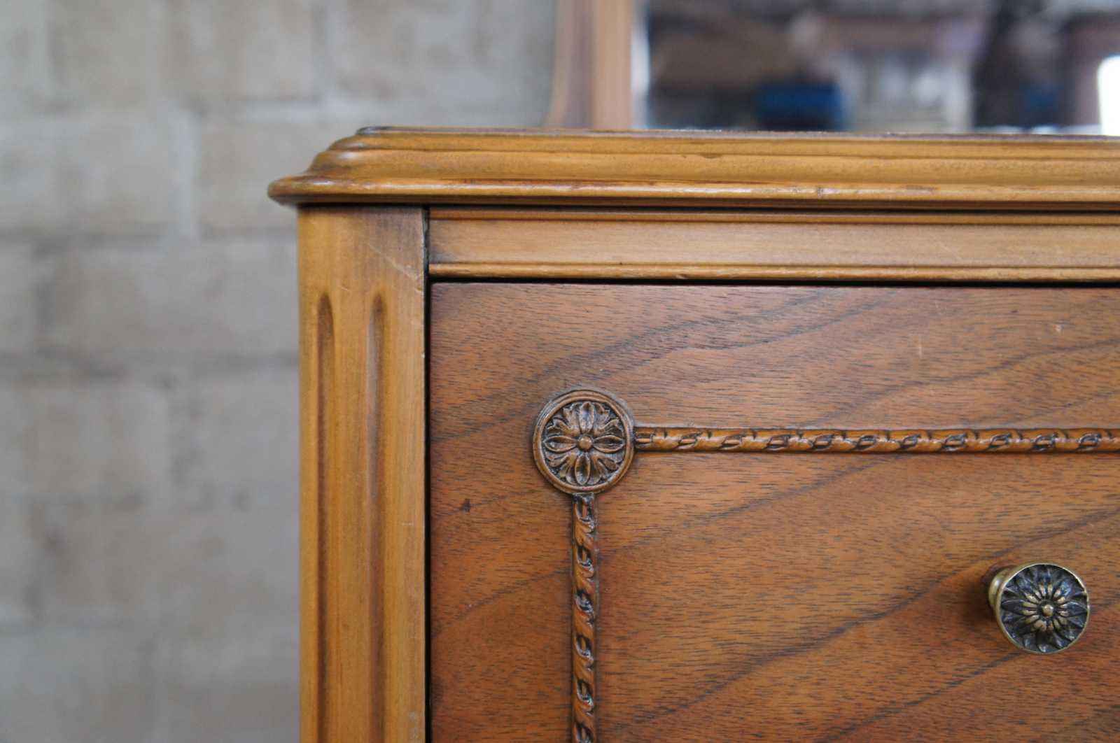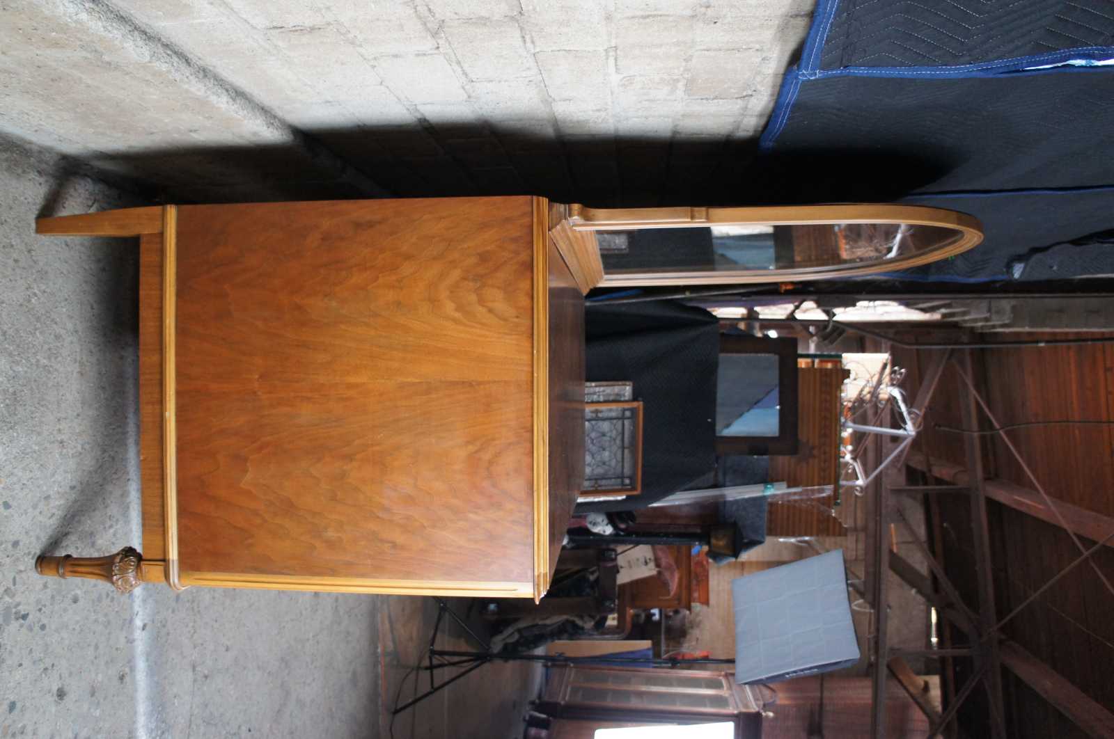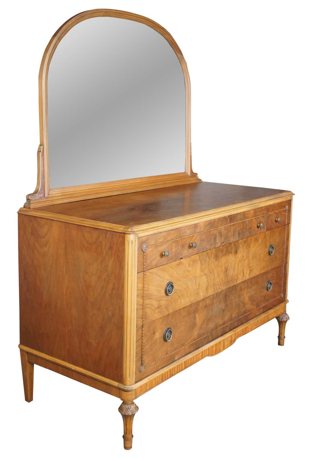 Antique Art Deco vanity dresser featuring a domed / arched mirror, five drawers and carved legs.