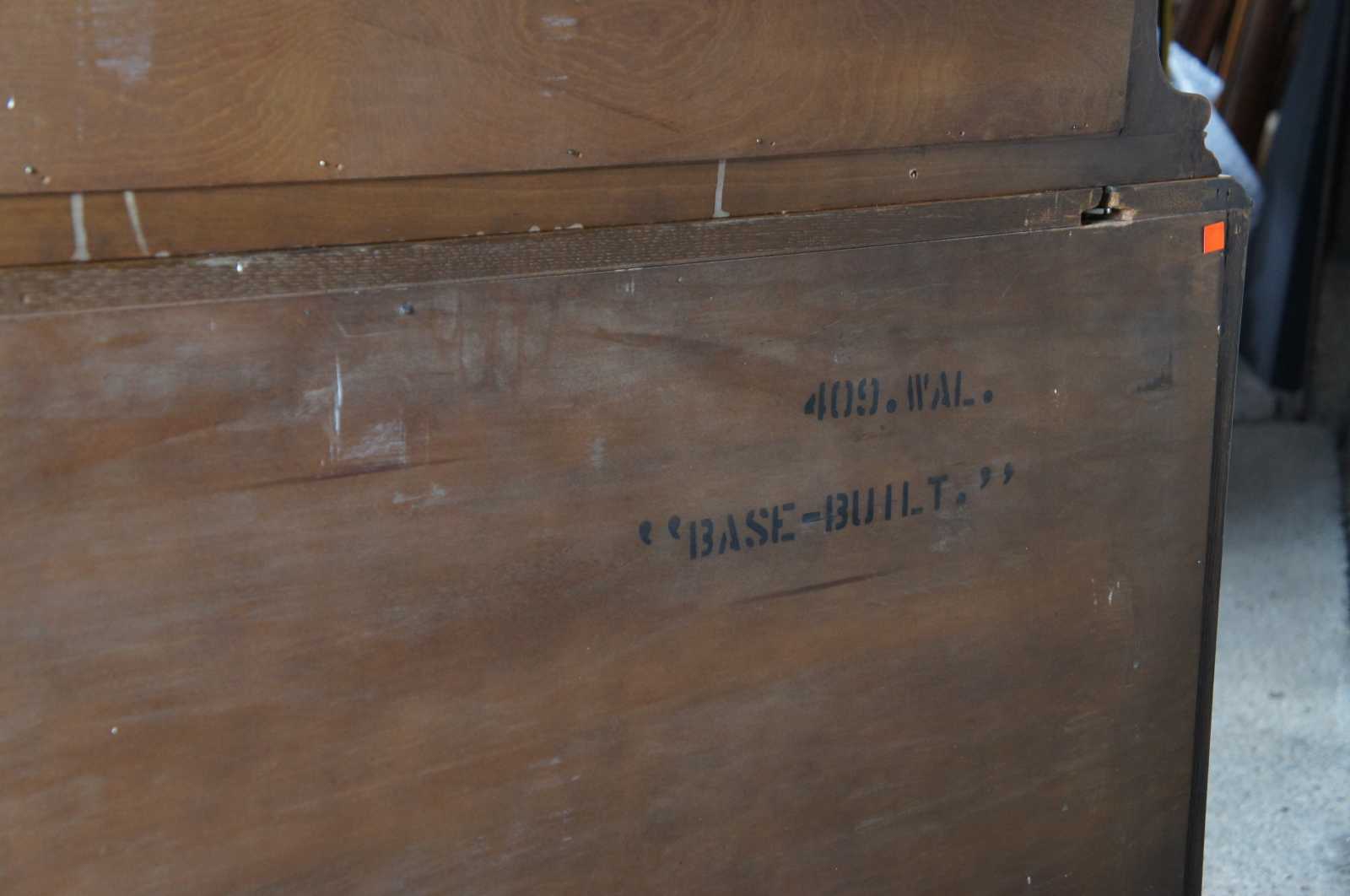 Good antique condition, wear and distressing commensurate with age and use, marking, fading, missing chunk of veneer on corner of drawer.  Repairable if interested.