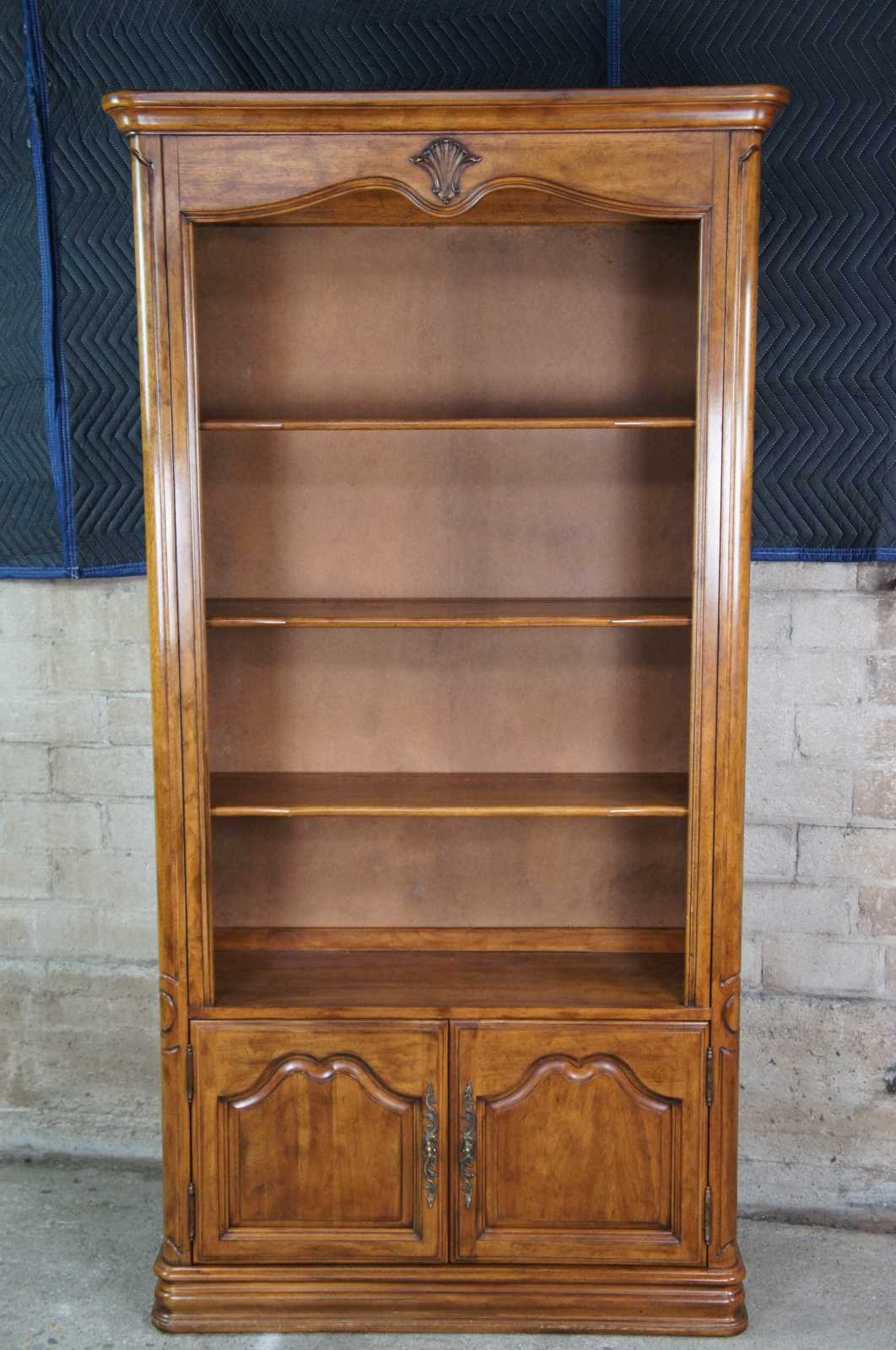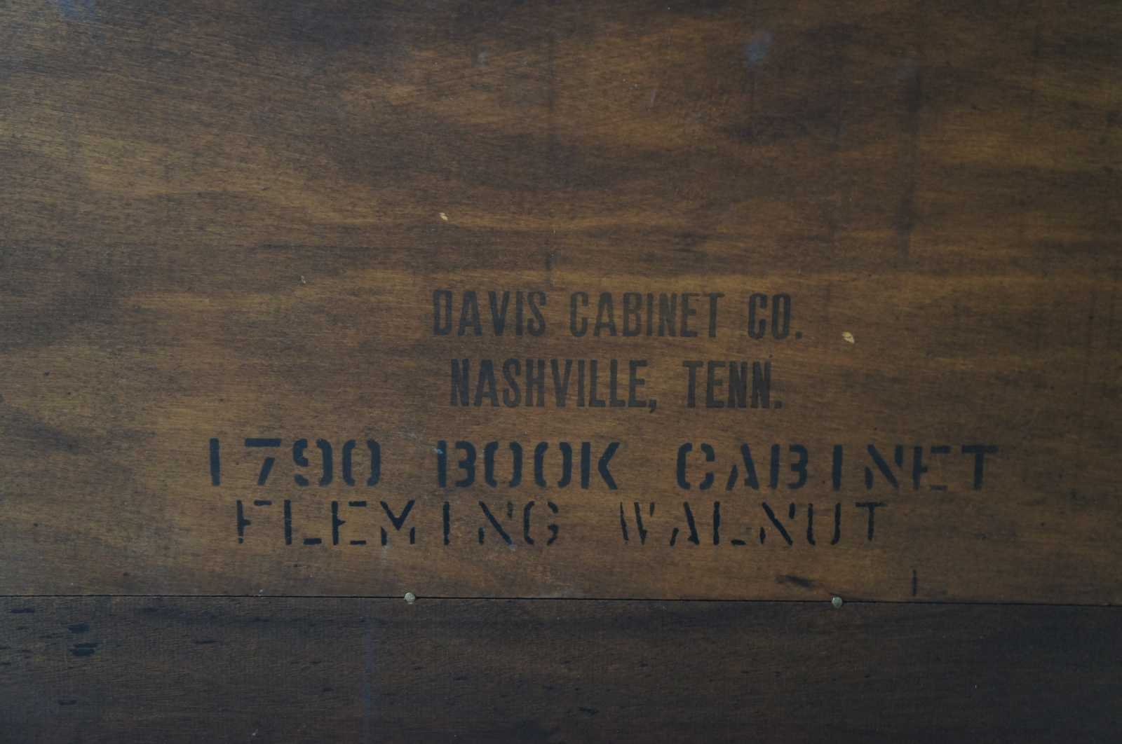 Pair of two vintage Davis Cabinet Company library book cabinets. Made of Fleming Walnut featuring rectangular form with an upper bookcase and lower cabinet. 1790.