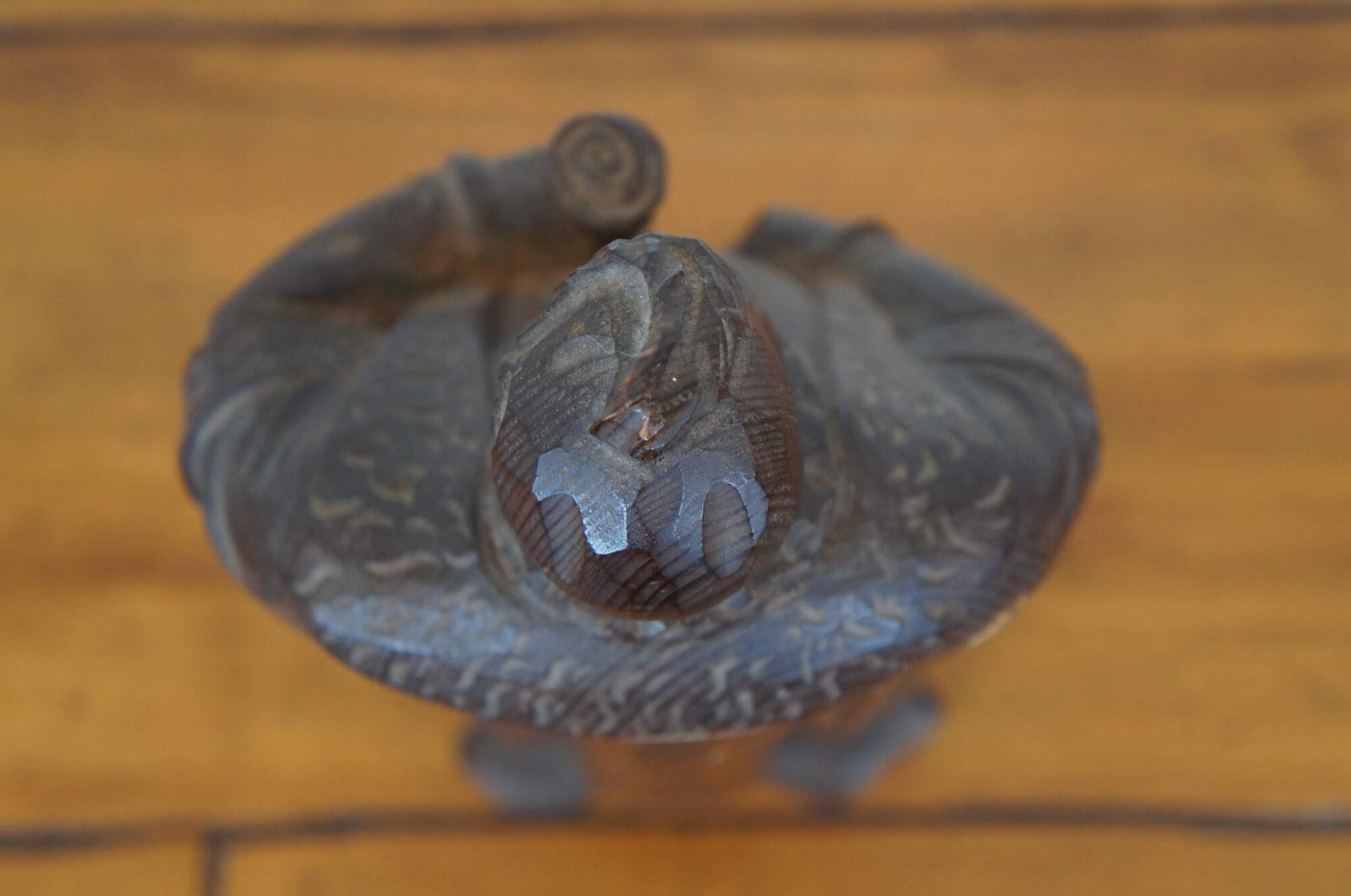 Antique folk art statue or sculpture featuring a Renaissance man wearing traditional attire holding a scroll.