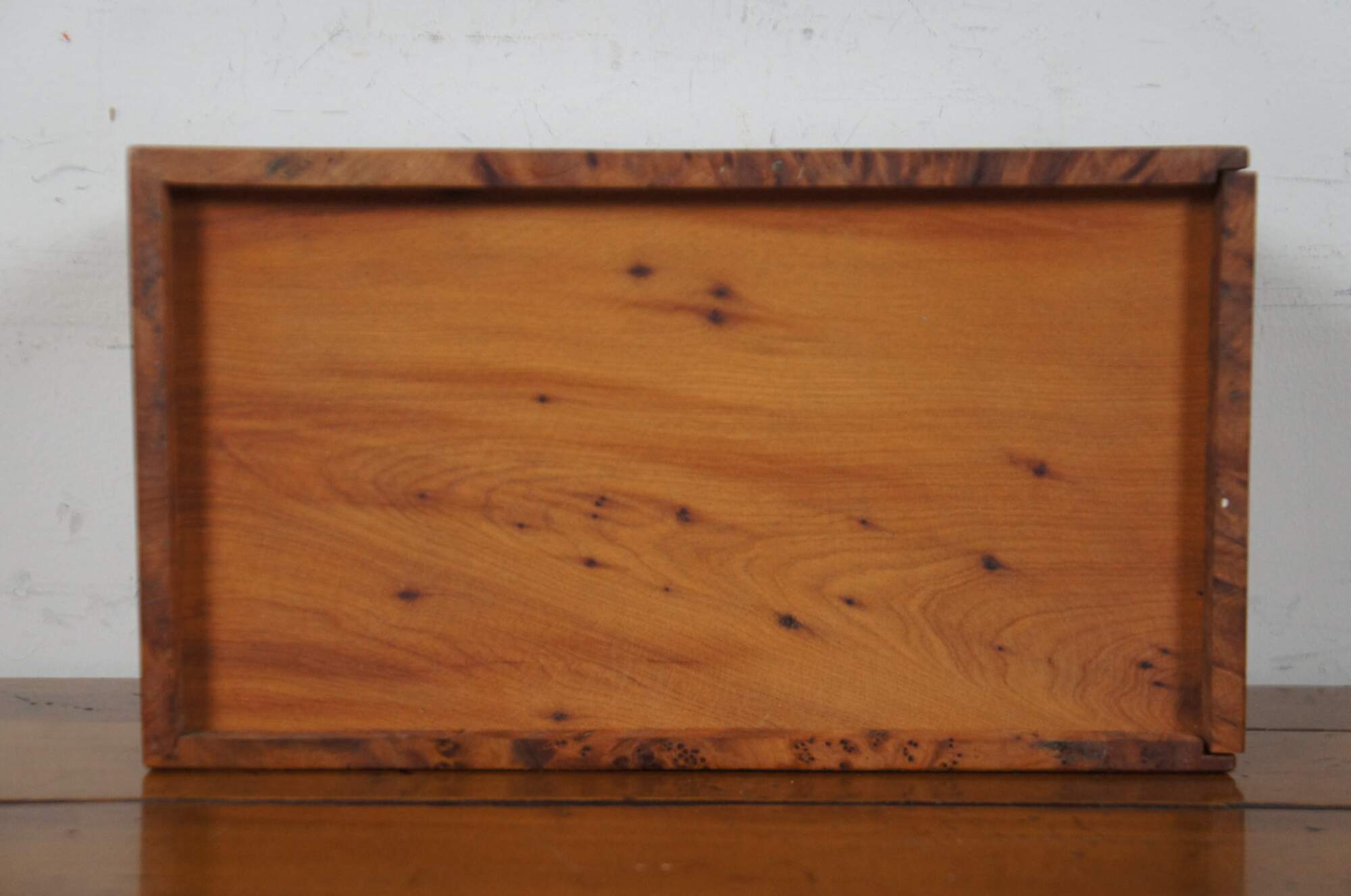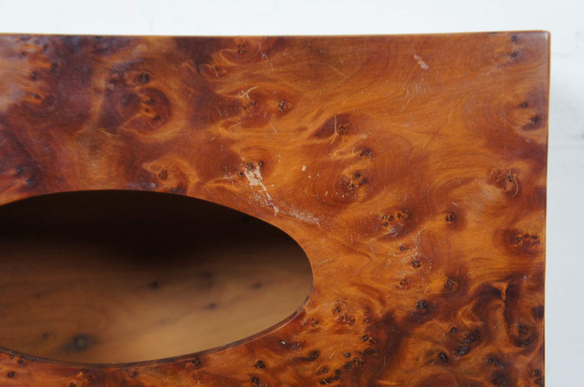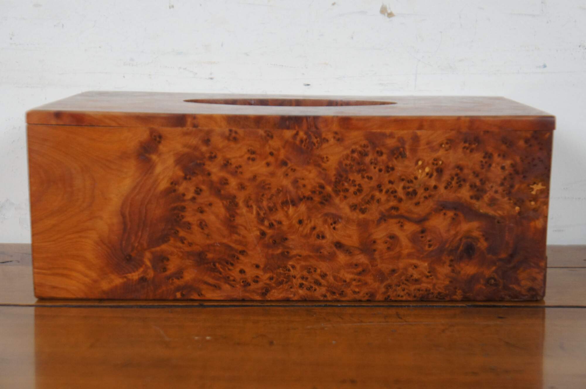 Vintage Birdseye Maple burl wood tissue box cover/holder with sliding bottom panel; fits a standard size rectangular box of facial tissue.