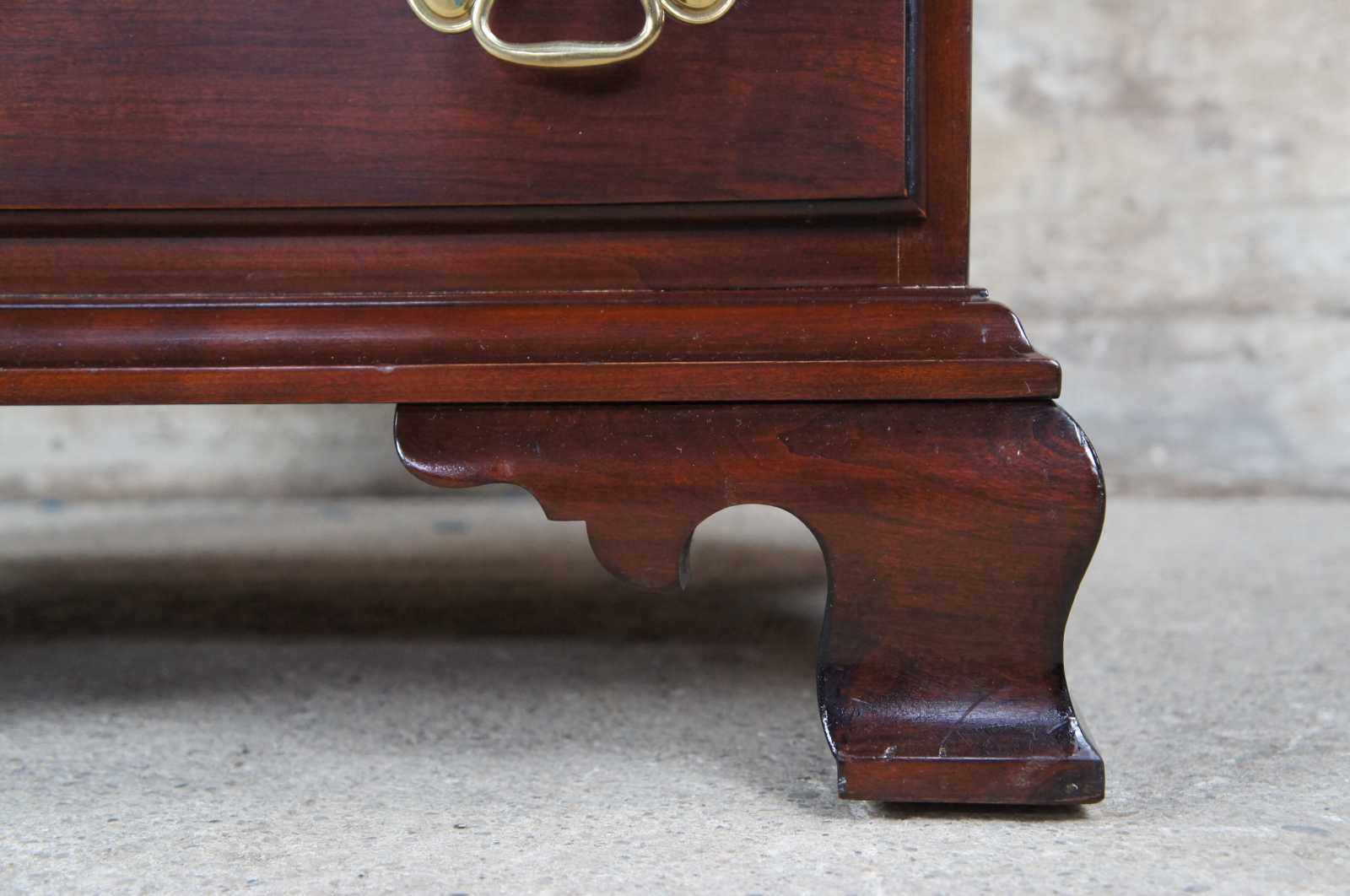 Two Vintage Statton Trutype Americana Old Towne nightstands or bedside tables, circa last quarter 20th century. Made of solid cherry featuring four drawers with brass hardware and bracket feet.