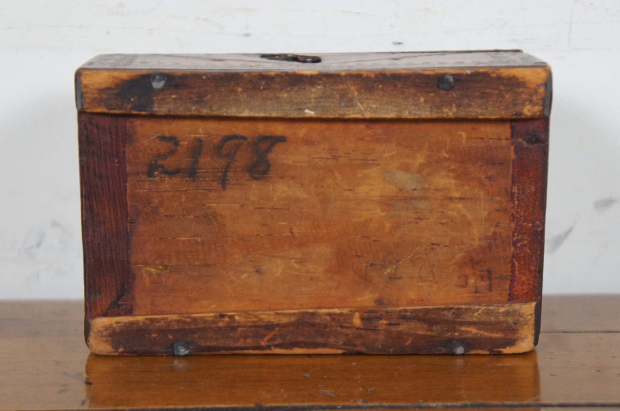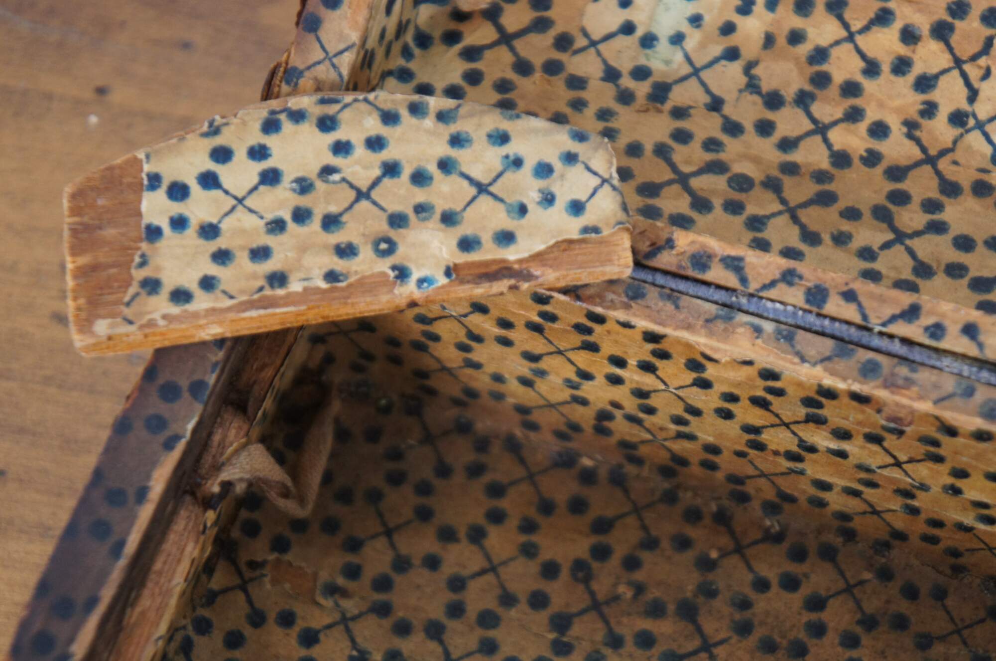 Fair condition - Moderate wear/staining throughout; surface broken over lock; broken piece of interior trim, no key.