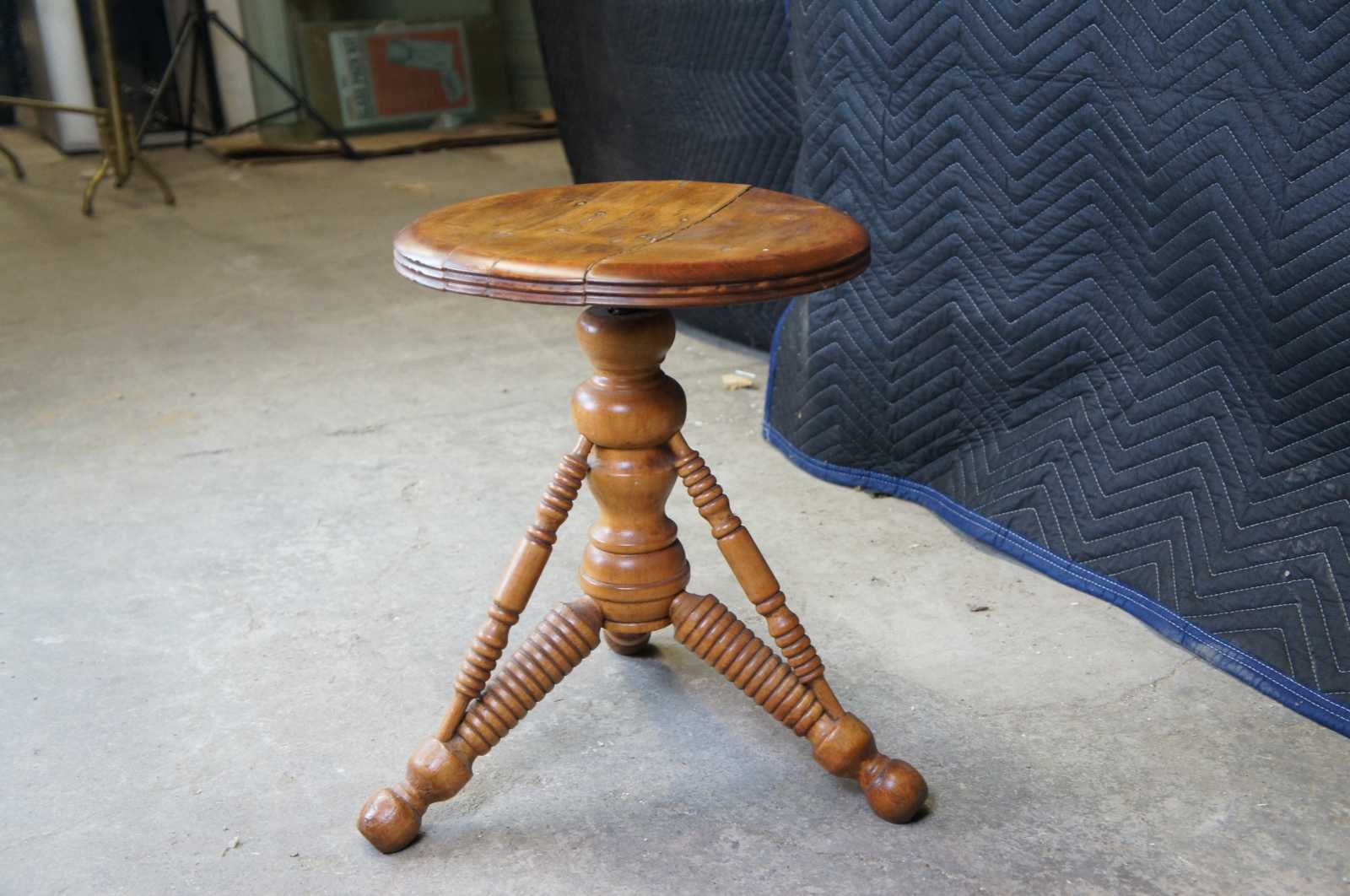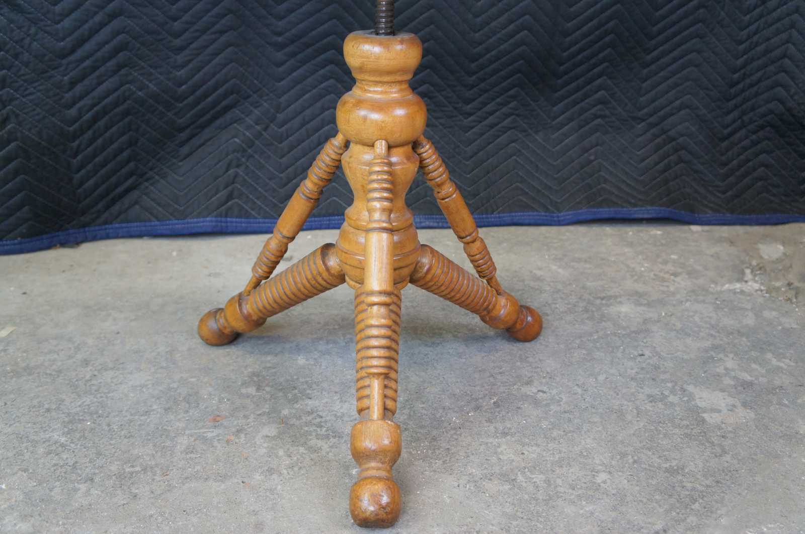 Tonk Victorian Modernist Piano, Organ or Vanity Stool. Circa last quarter of 19th cenutry. Made from birch with a geometric ribbed frame and adjustable seat.