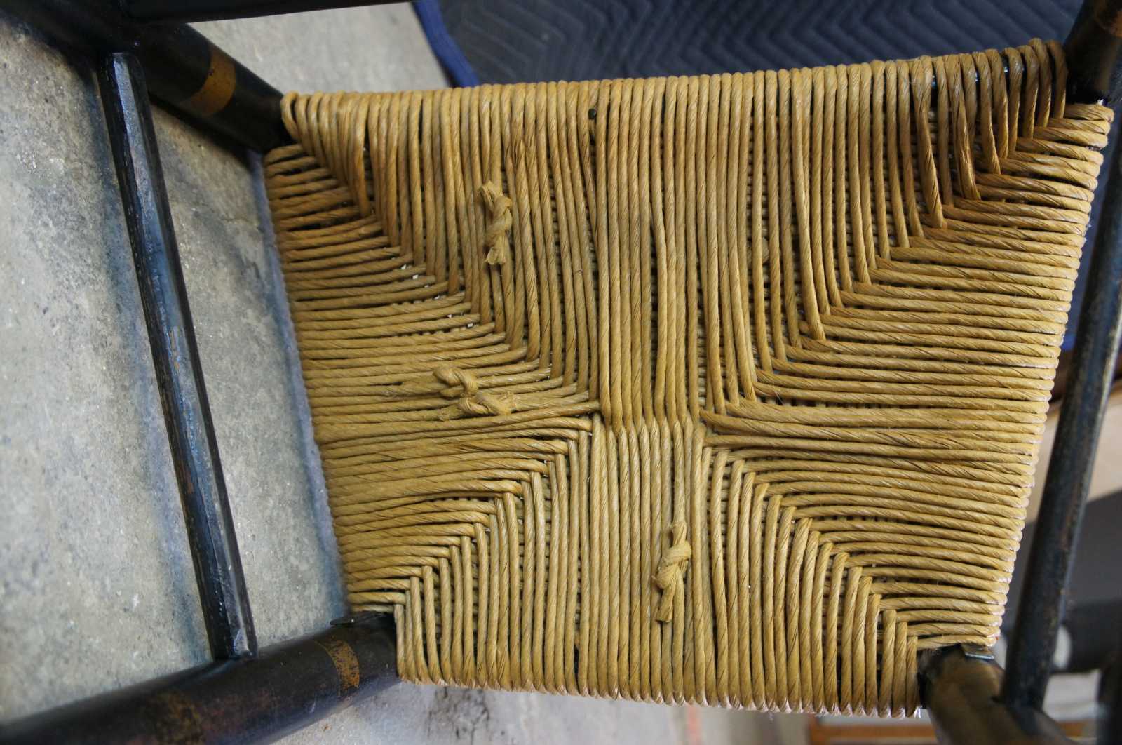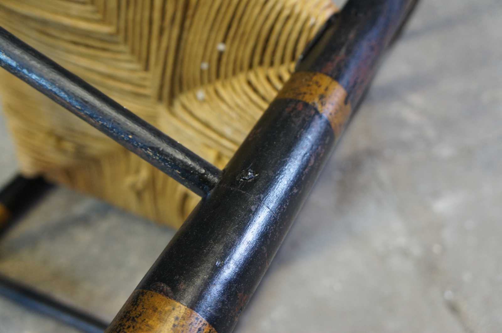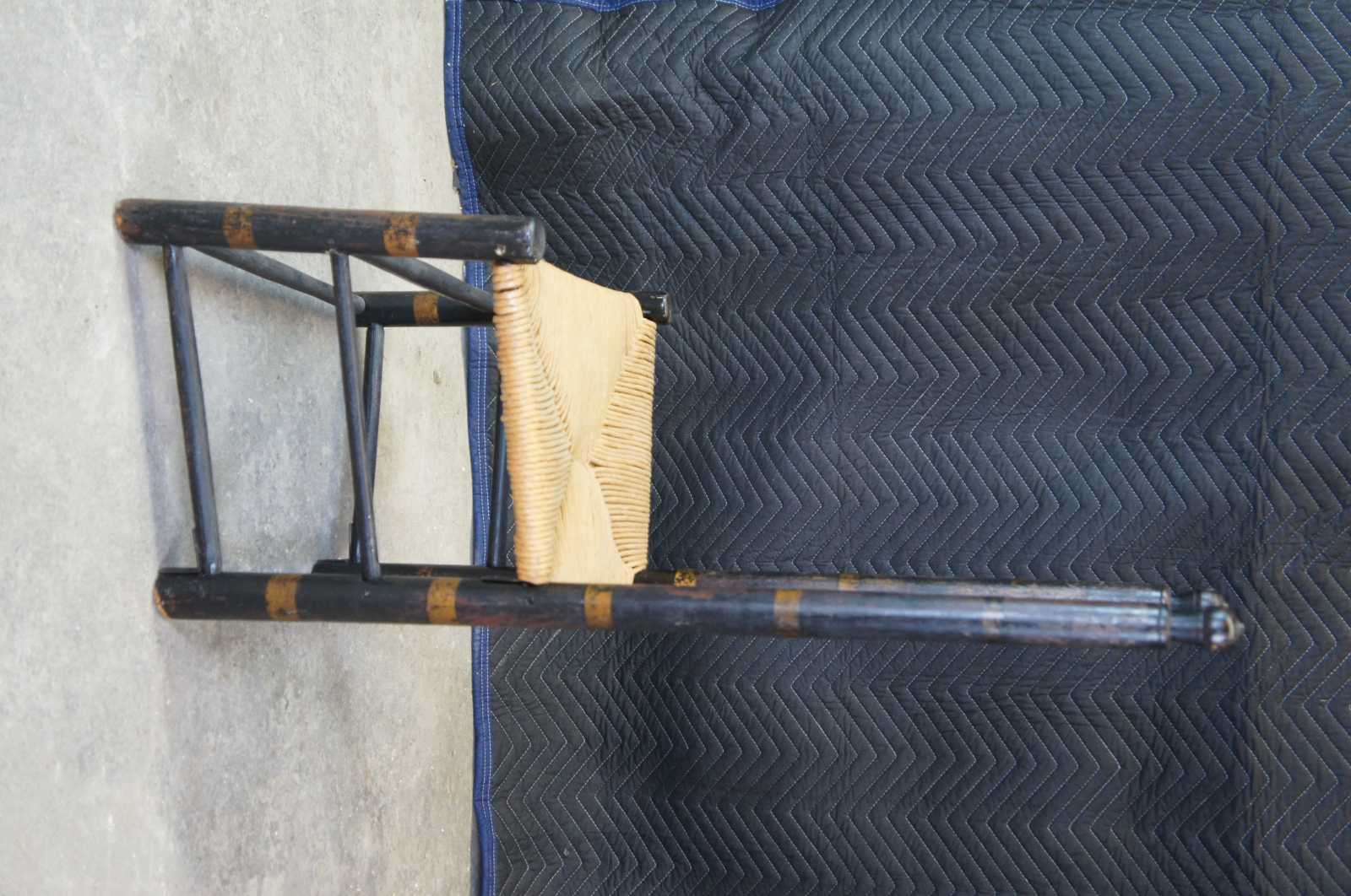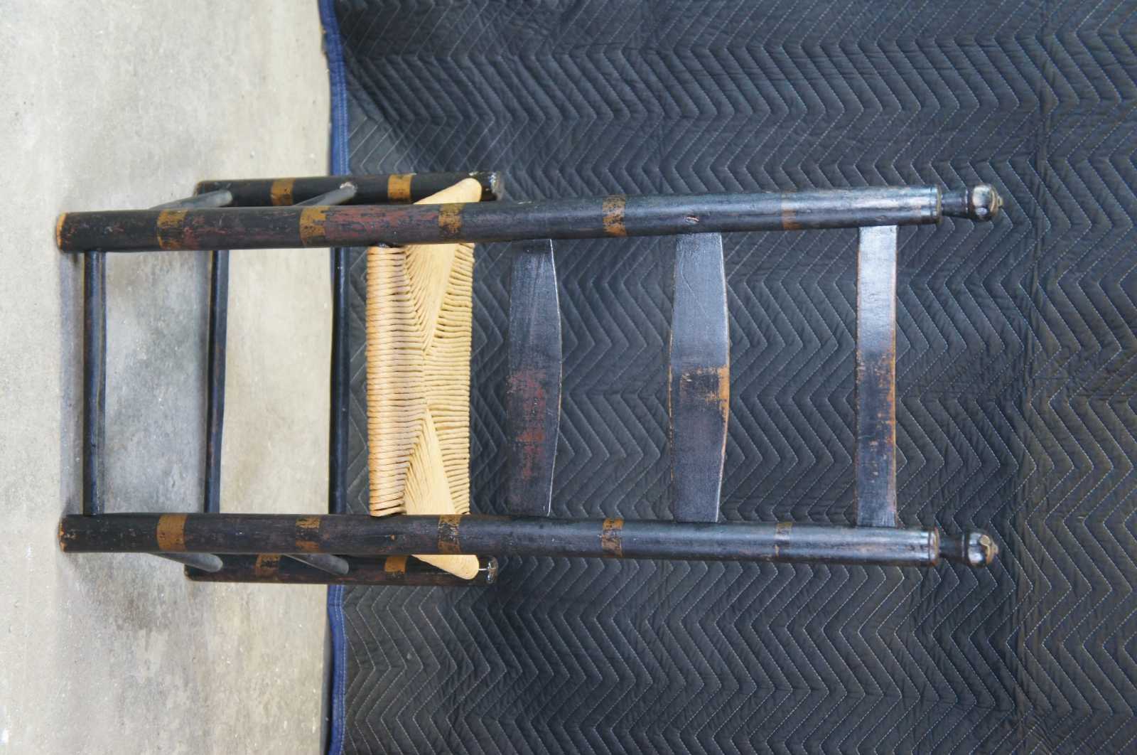 Antique mid 18th century Shaker chair featuring painted accents with ladderback and rush seat. Circa 1757, American.