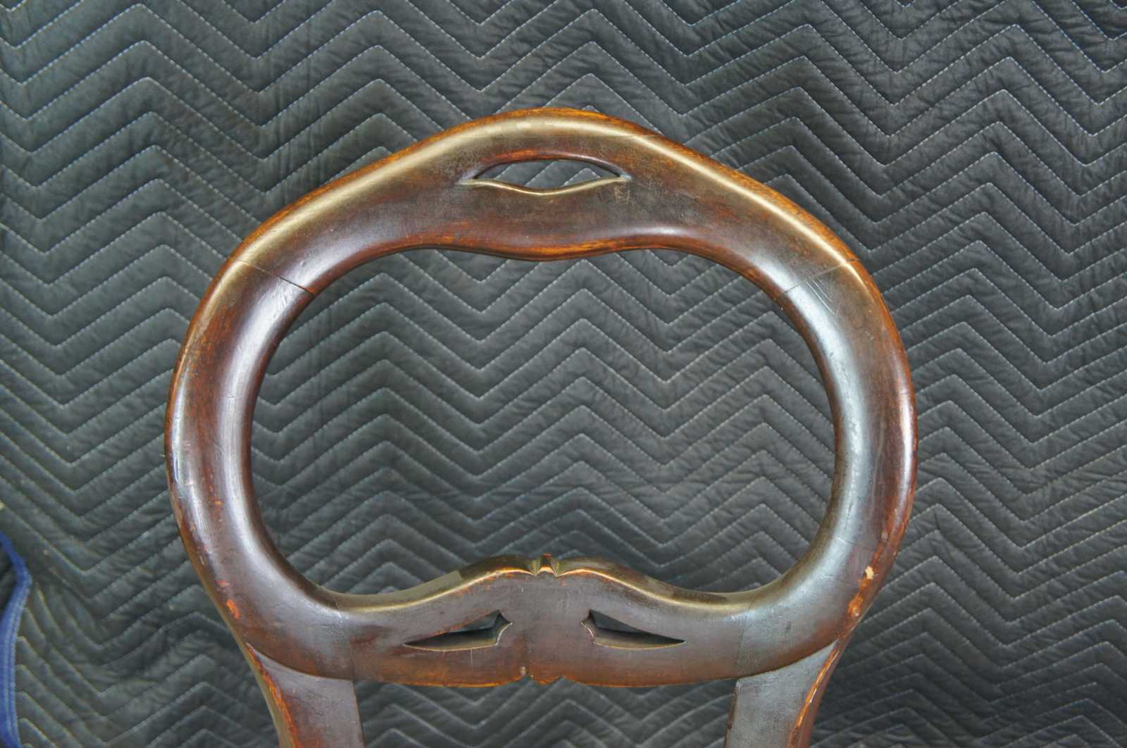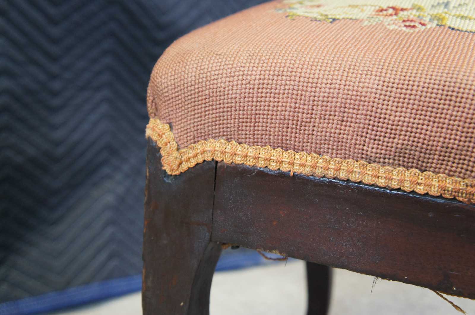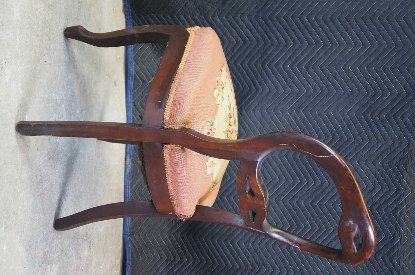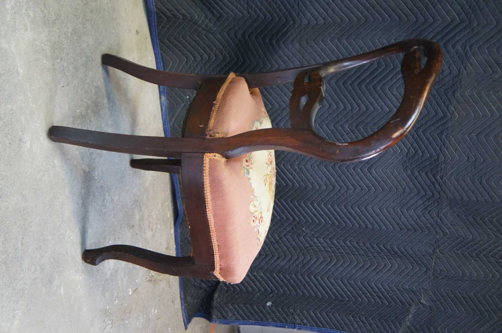 Antique Victorian mahogany chair featuring balloon back and needlepoint seat.